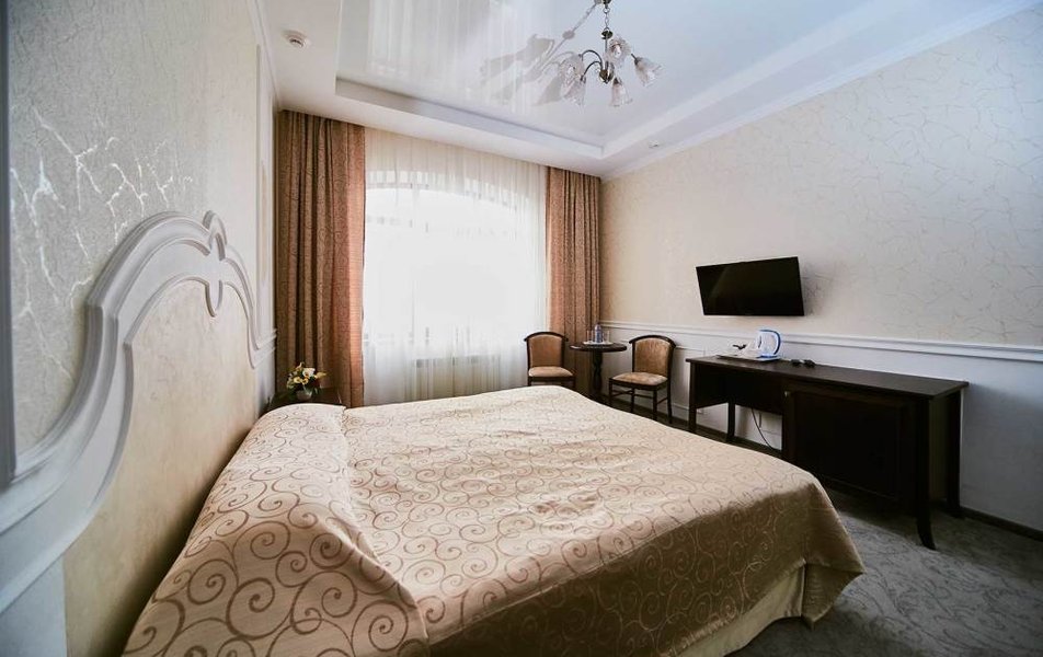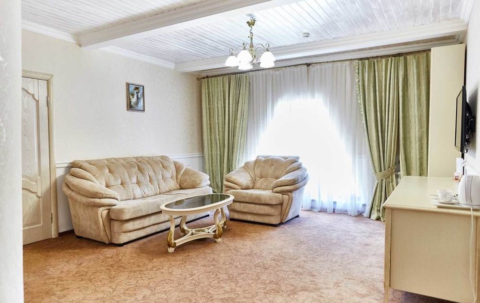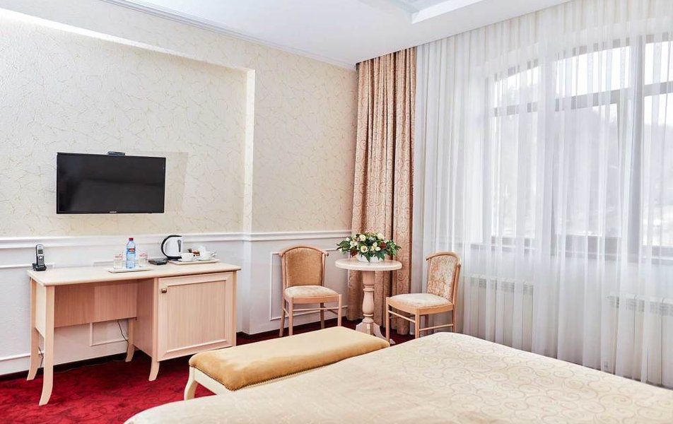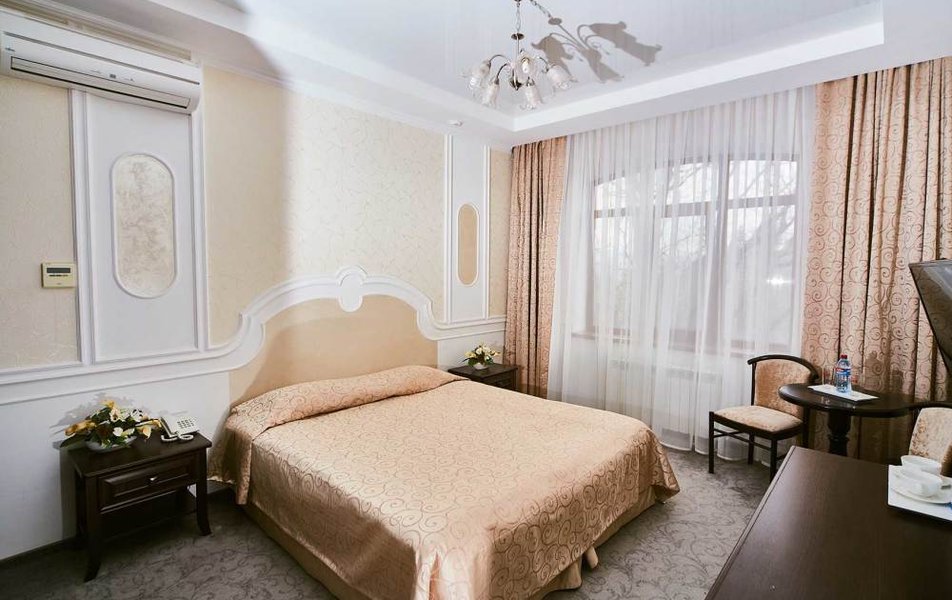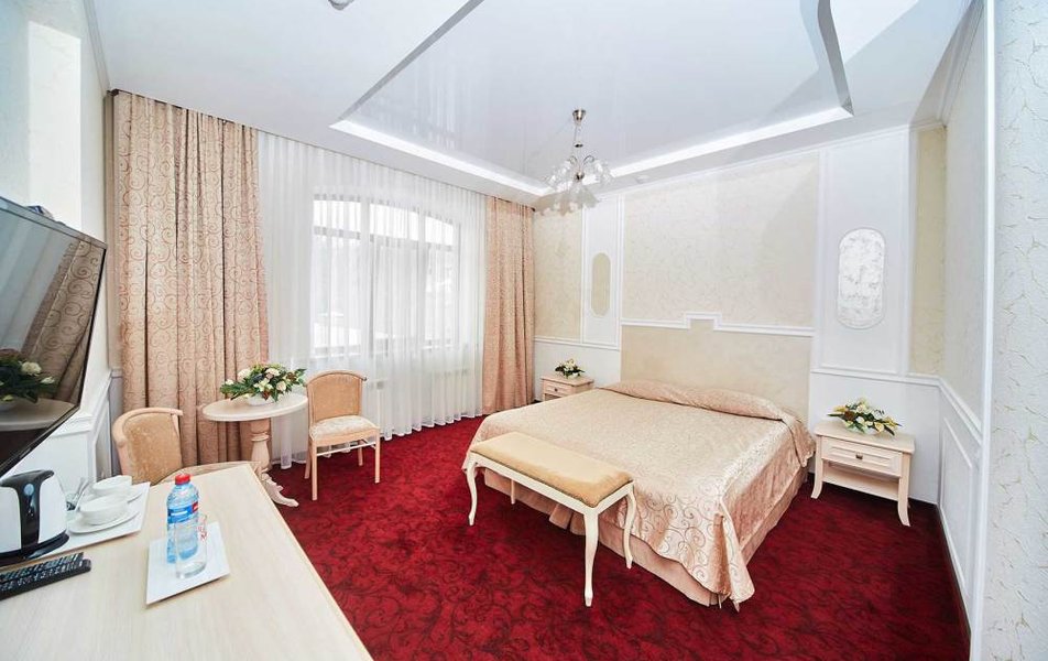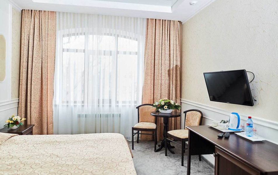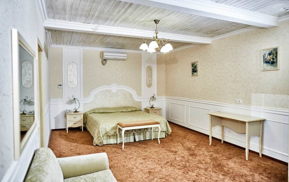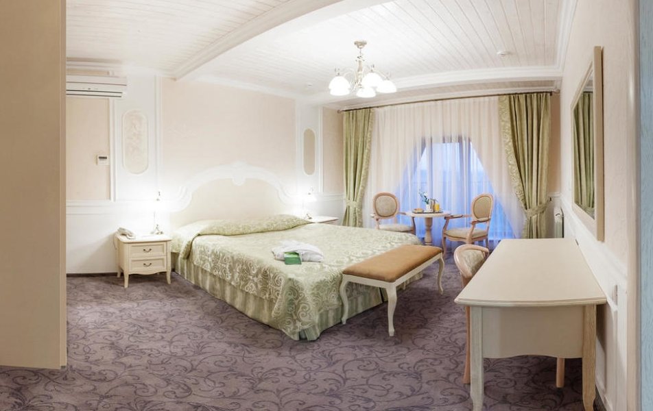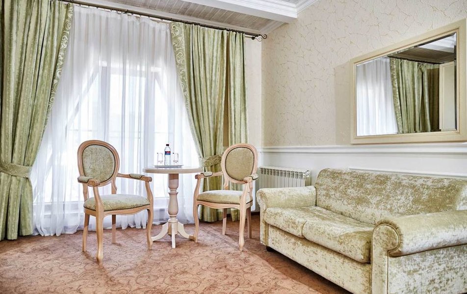 В отеле мы сейчас отдыхаем с друзьями. По соотношению цена-качество - прекрасный вариант. Номер сьют -удобный и комфортный для двоих, завтрак качественный и разнообразный. Бассейн требует декоративного ремонта, но его наличие уже большой плюс. В отеле есть ресторан, где можно пообедать и поужинать, готовят вкусно. Мы редко пользовались, так как много гуляли и путешествовали и ели в других местах. Единственный минус, который есть зимой, за минеральной водой приходится ходить далеко в Нарзанную галлерею, летом есть источник близко. Если приедем в Кисловодск ещё, выберем этот отель.