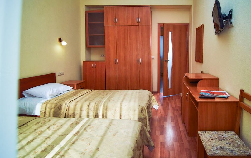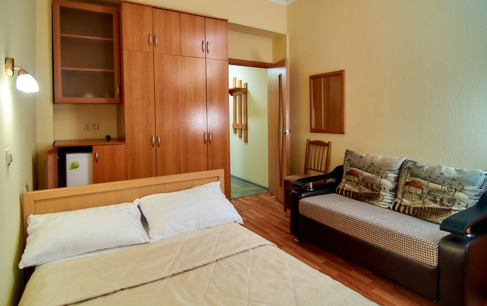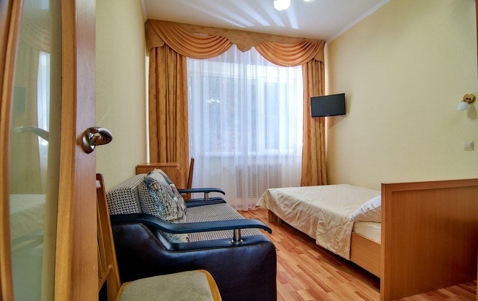 Стандартный 1-местный 1-комнатный Количество комнат: 1-комнатный Тип номера: Стандартный Вид из номера: на парк Кол-во основных мест: 1 Площадь (кв. м): 14 Мебель: вешалка, зеркало, кровать односпальная, прикроватная тумбочка, стол, стул, шкаф Оборудование: телевизор, холодильник Санузел: с ванной, туалетные принадлежности Сервис: Wi-Fi бесплатно, смена полотенец, смена постельного белья, уборка номера