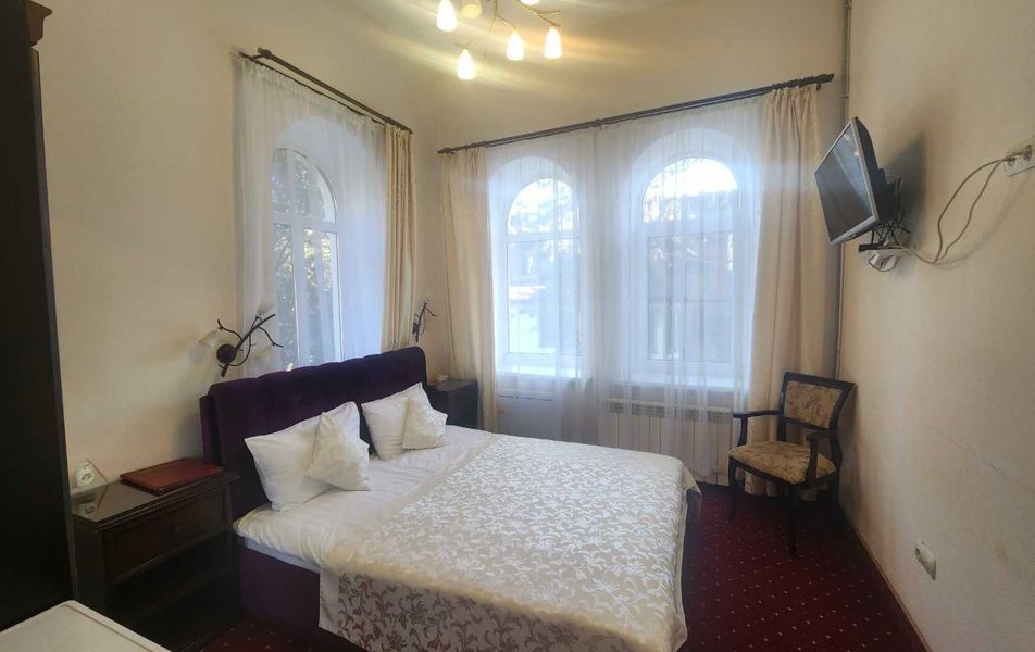 Останавливаюсь в пансионате второй раз. Очень удачная локация у отеля. Я ценю тишину и покой )) Спасибо охраннику за чуткое отношение. Он помог нам с мамой подняться и спуститься по лестнице с багажом. Душ в туалете не очень удобен, но можно пережить. Рекомендую!