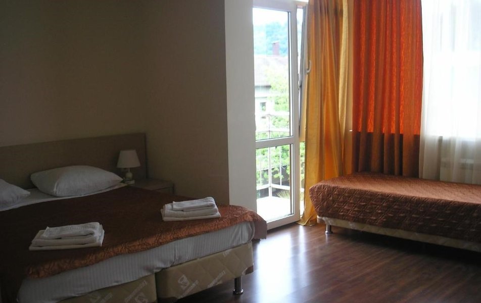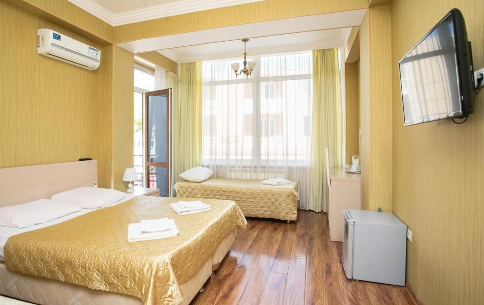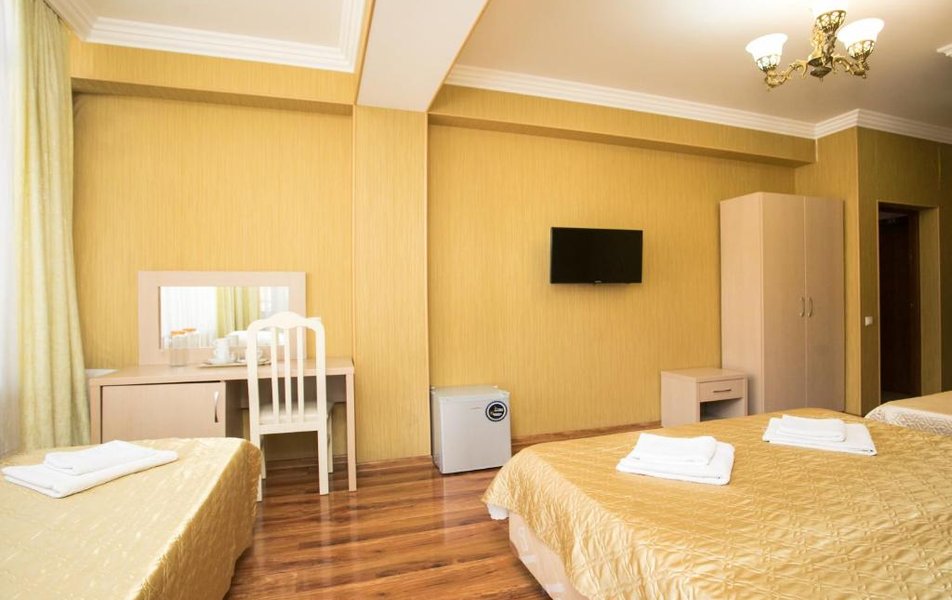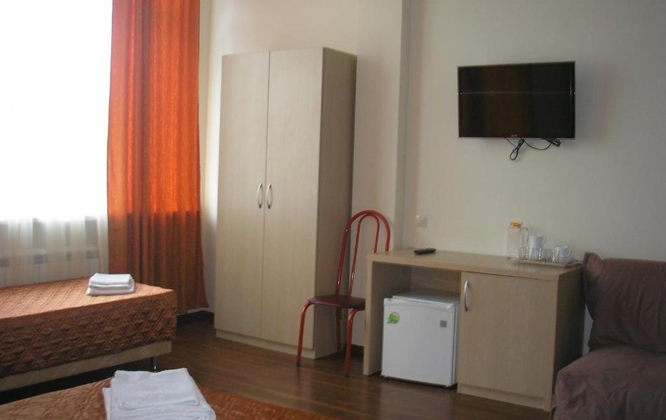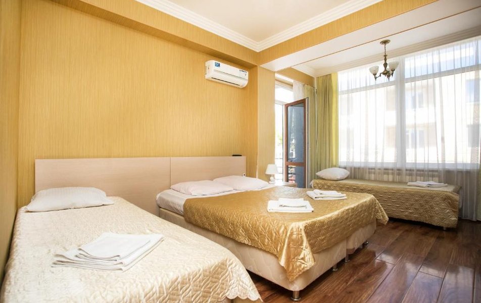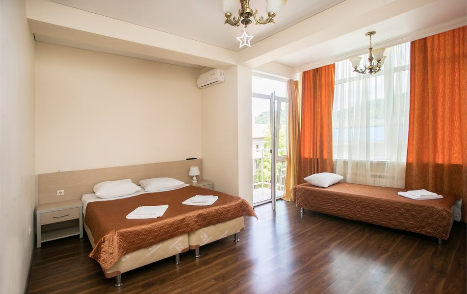Семейный 4-местный 1-комнатный Количество комнат: 1-комнатный Тип номера: Семейный Кол-во основных мест: 4 Площадь (кв. м): 20 Мебель: вешалка, зеркало, кресло-кровать, кровать двуспальная, кровать односпальная, прикроватные тумбочки, стол, стулья, шкаф Оборудование: кондиционер, мини-холодильник, набор посуды, телевизор Санузел: с душем Сервис: Wi-Fi бесплатно, смена полотенец, смена постельного белья, уборка номера