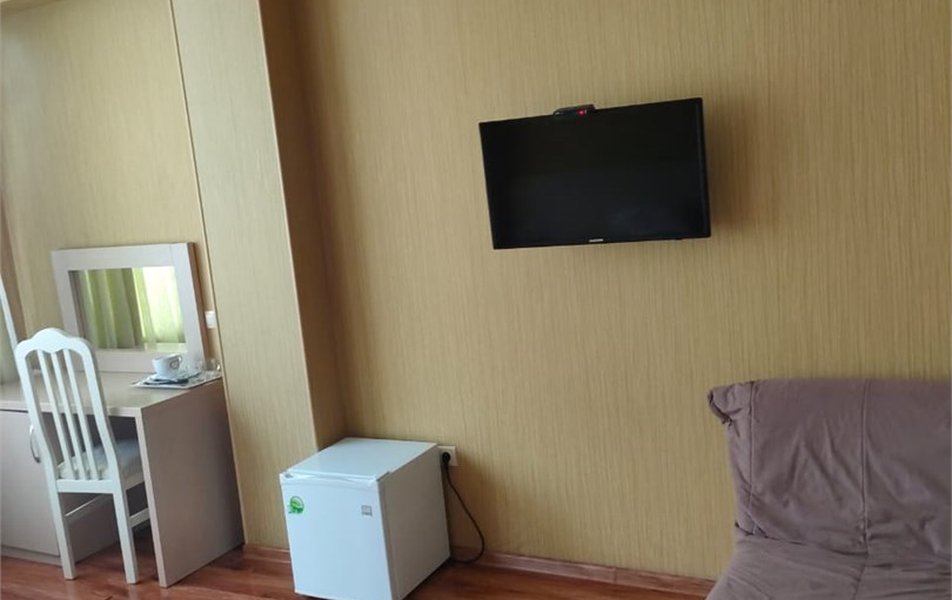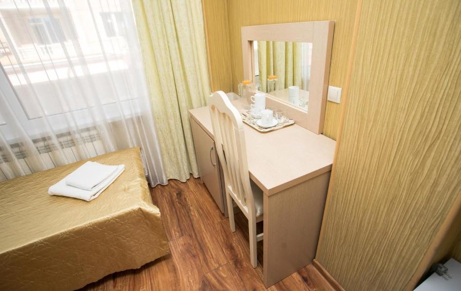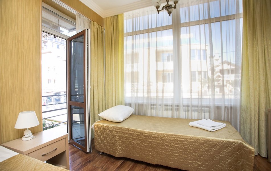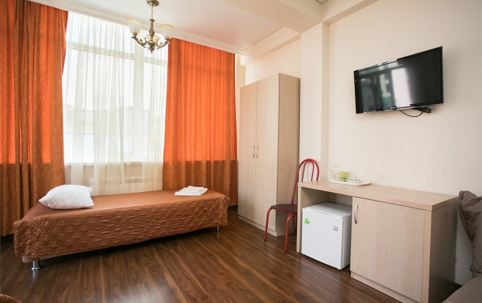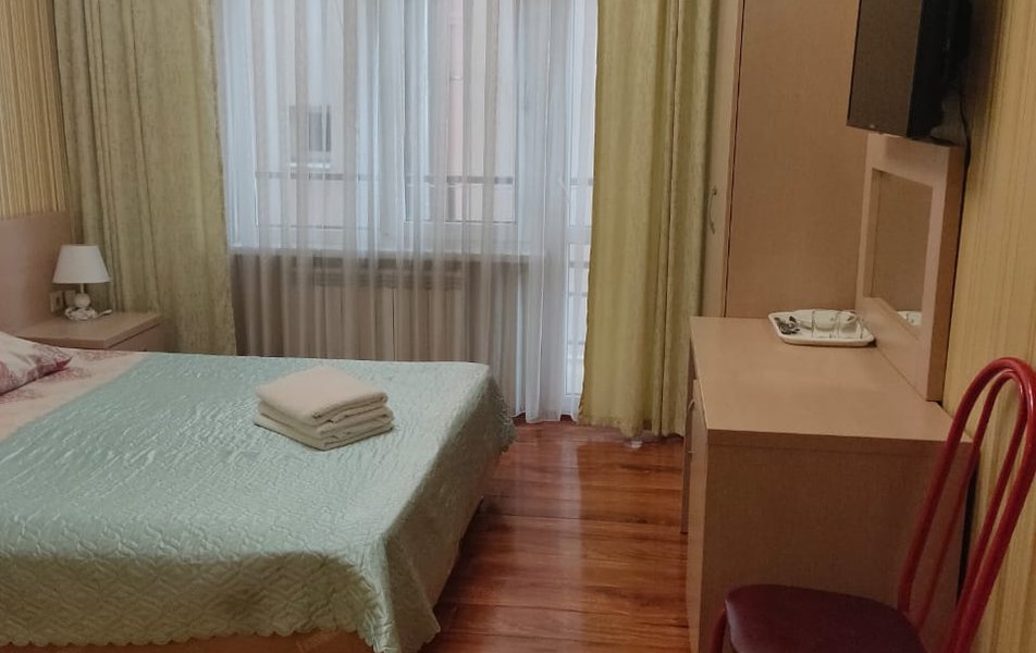 Стандартный 2-местный 1-комнатный Количество комнат: 1-комнатный Тип номера: Стандартный Кол-во основных мест: 2 Площадь (кв. м): 15 Мебель: вешалка, зеркало, кровати односпальные /одна двуспальная кровать, прикроватные тумбочки, стол, стулья, шкаф Оборудование: кондиционер, мини-холодильник, набор посуды, телевизор ЖК Санузел: с душем Сервис: Wi-Fi бесплатно, смена полотенец, смена постельного белья, уборка номера