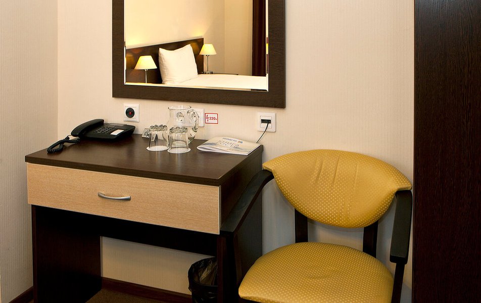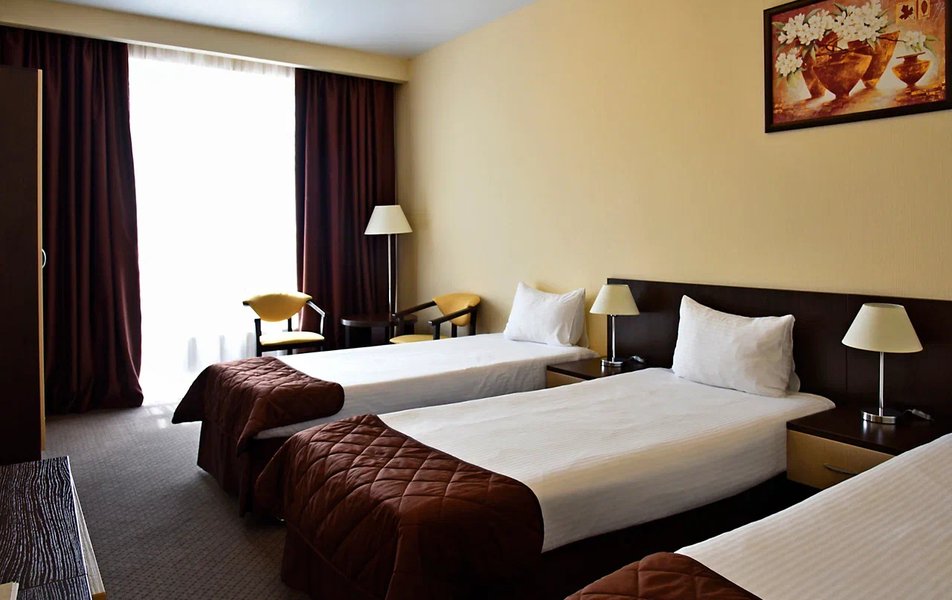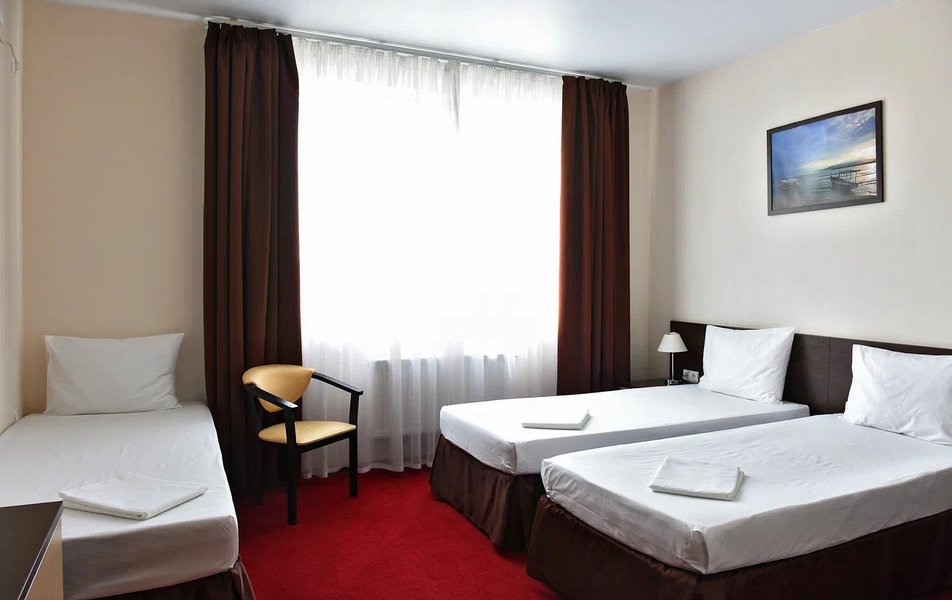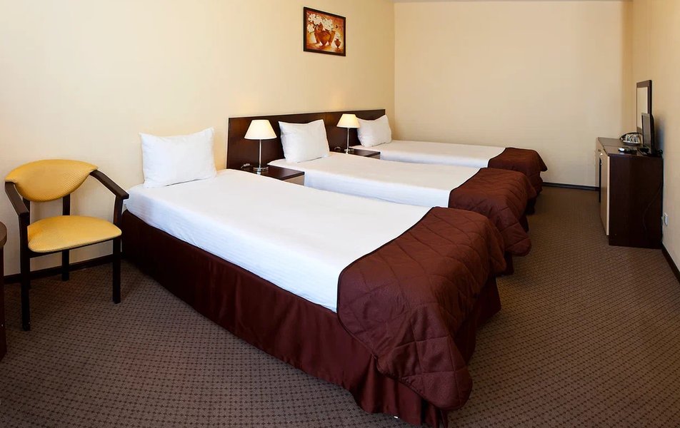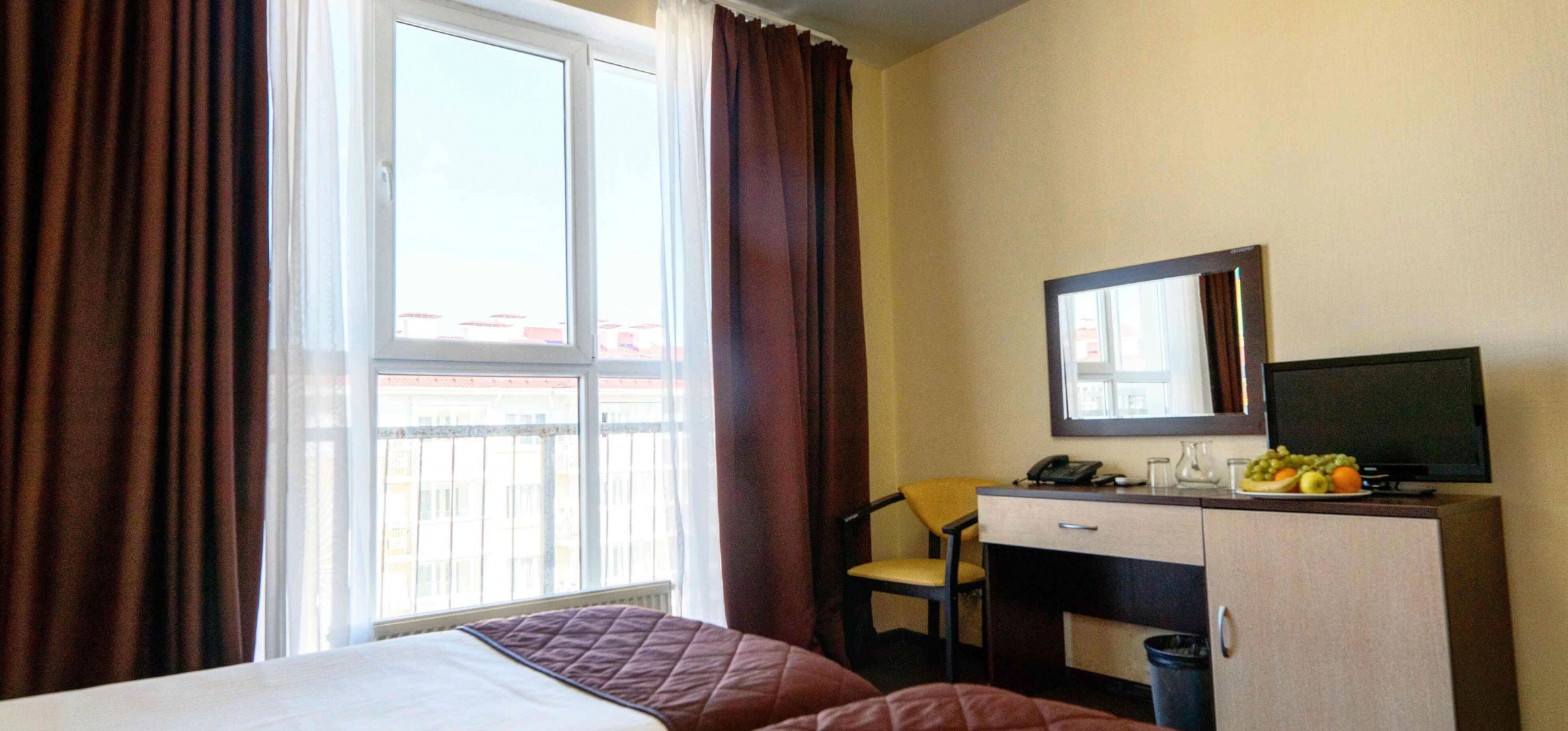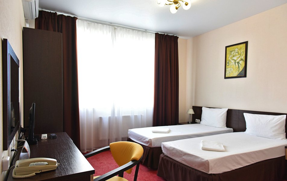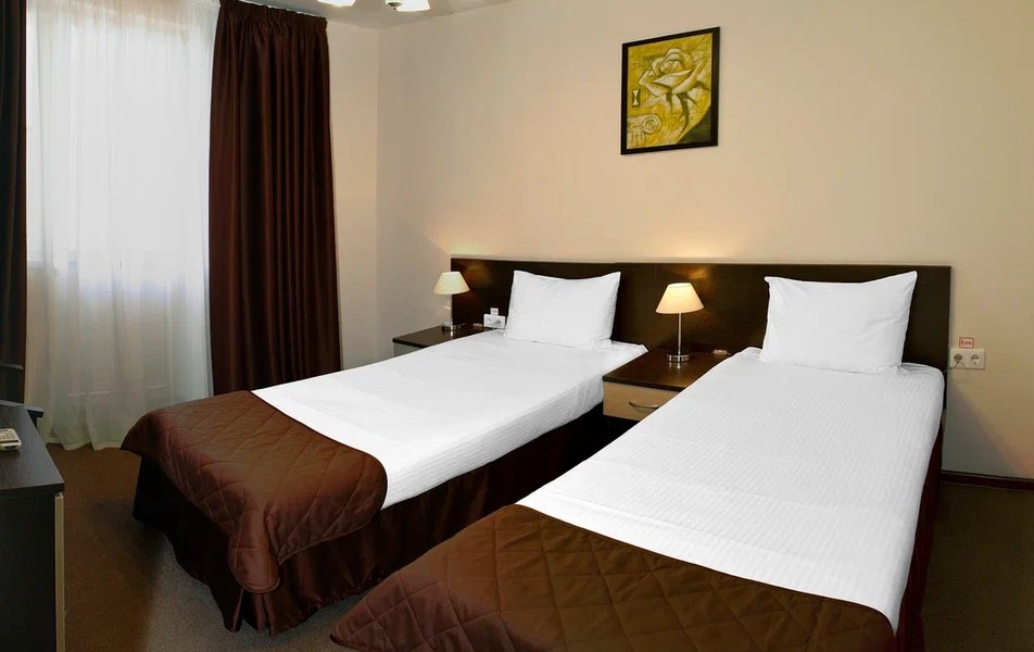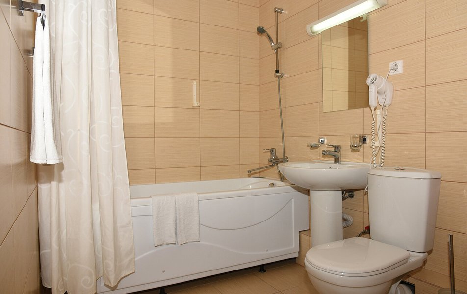Бюджетный номер оснащен 2 односпальными кроватями, балконом (в части номеров), телевизором, телефоном, мини-баром, кондиционером, беспроводным интернетом. Санузел с ванной/душем, феном, туалетные принадлежности.