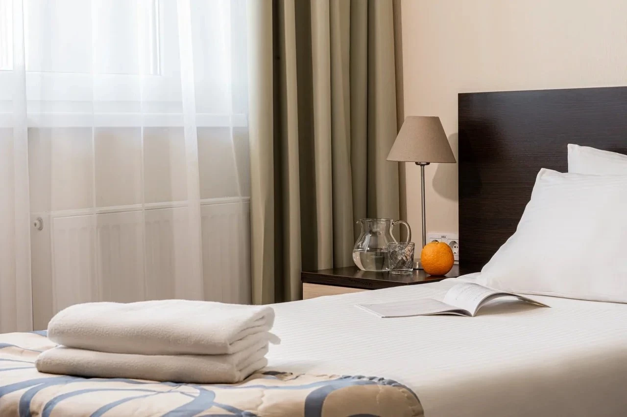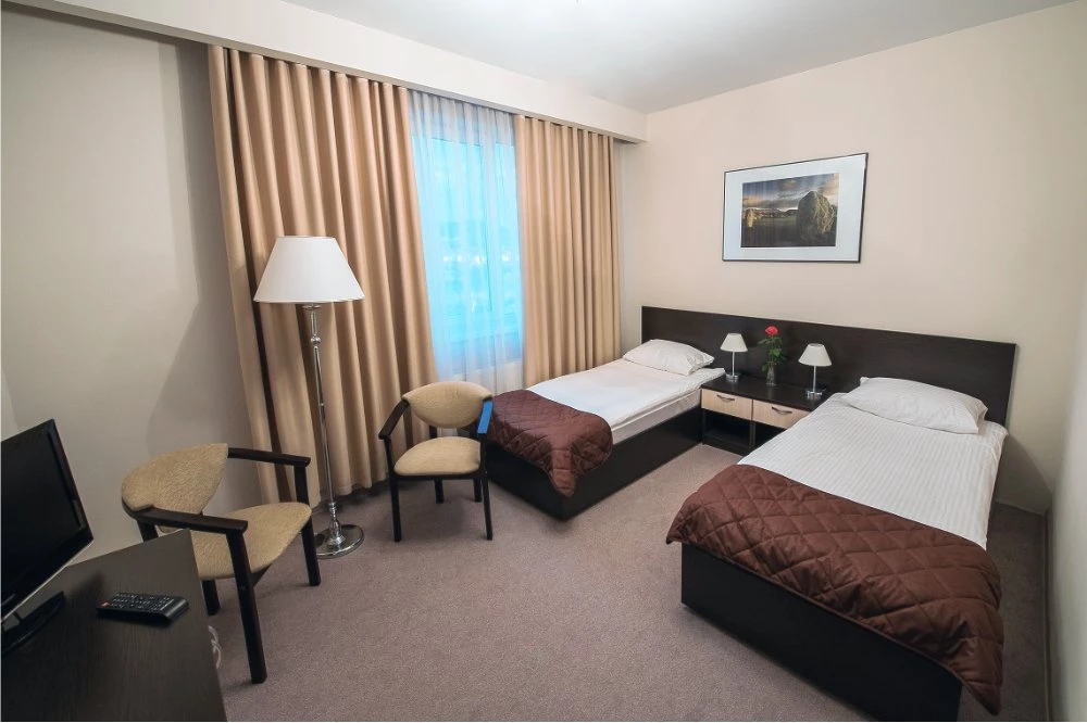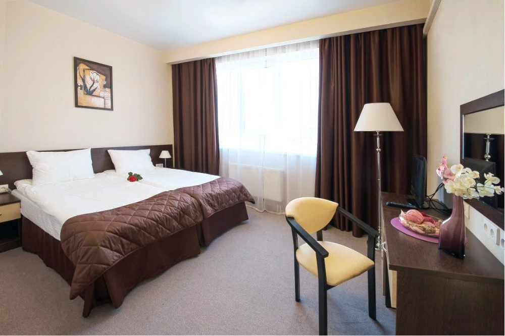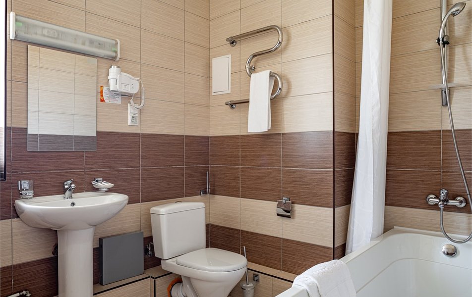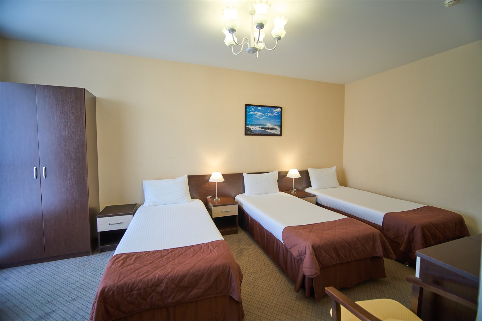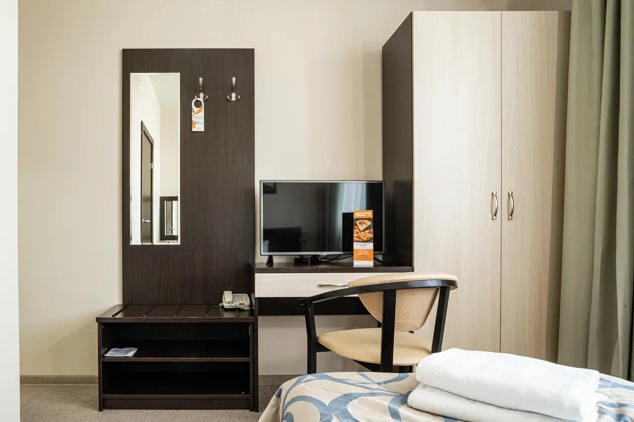Бюджетный номер оснащен 2 односпальными кроватями, балконом (в части номеров), телевизором, телефоном, мини-баром, кондиционером, беспроводным интернетом. Санузел с ванной/душем, феном, туалетные принадлежности.