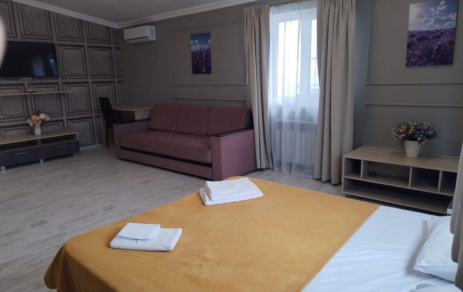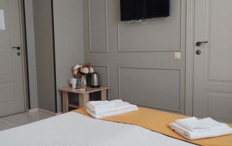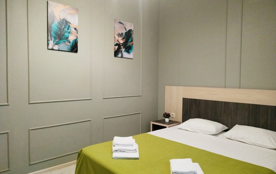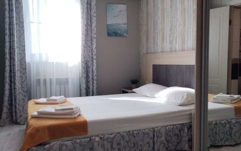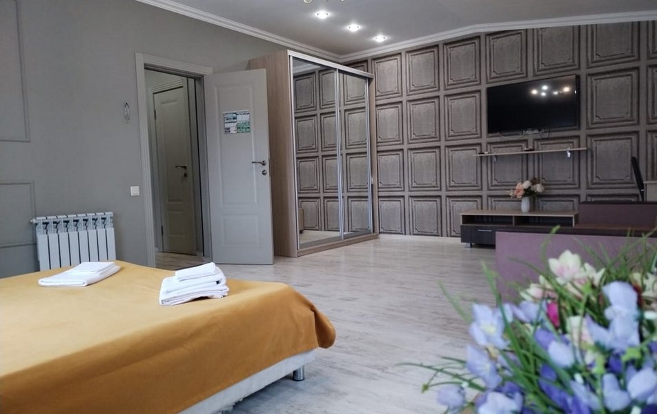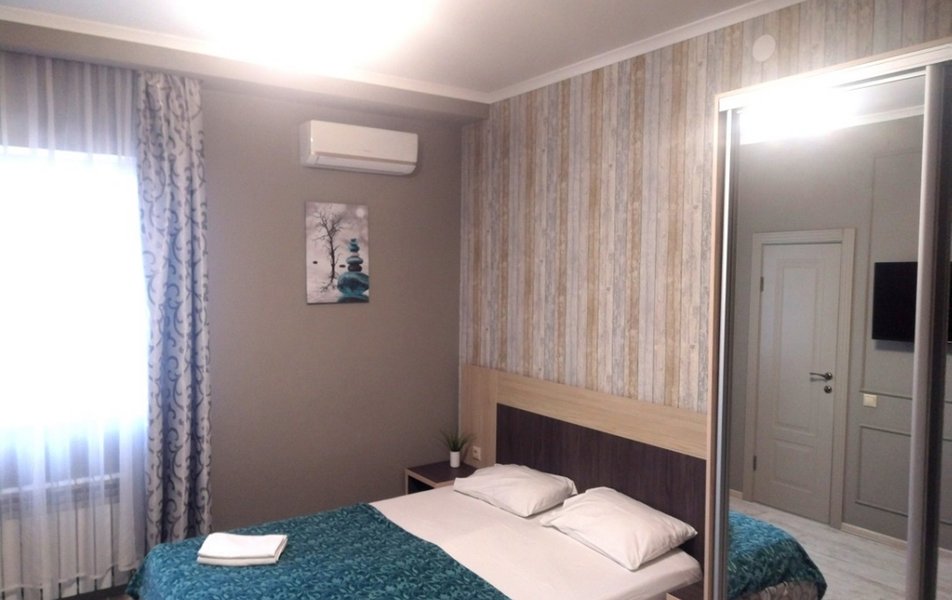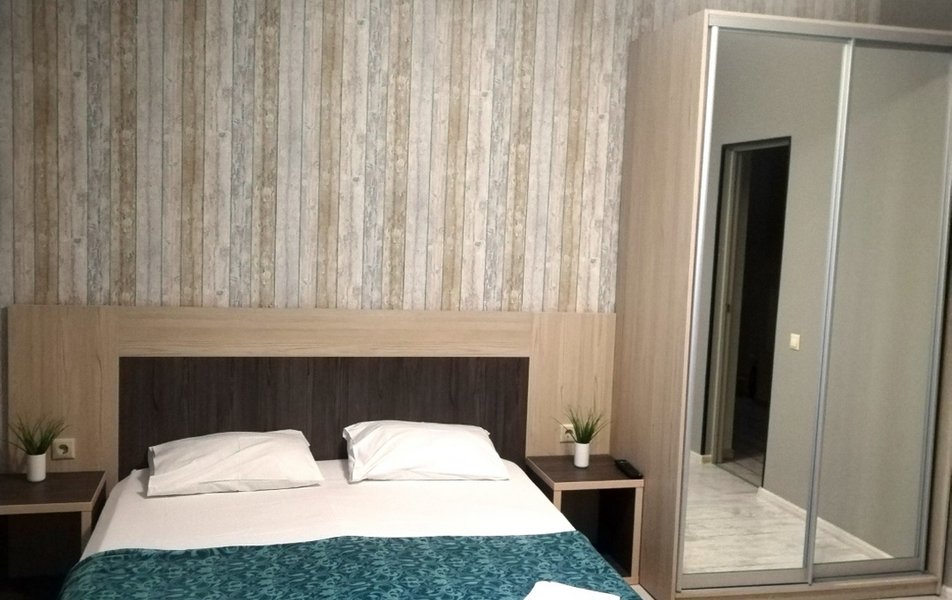 Апартаменты 4-местный 2-комнатный (с кухней) Количество комнат: 2-комнатный Тип номера: Апартаменты Кол-во основных мест: 4 Площадь (кв. м): 50 Мебель: вешалка, диван раскладной, зеркало, комод, кровать двуспальная, прикроватные тумбочки, стол, стулья, шкаф Оборудование: духовой шкаф, кондиционер, микроволновая печь, набор посуды, плита электрическая, стиральная машина, телевизор ЖК, холодильник, электрочайник Санузел: с ванной, с душем, туалетные принадлежности, фен Сервис: Wi-Fi бесплатно