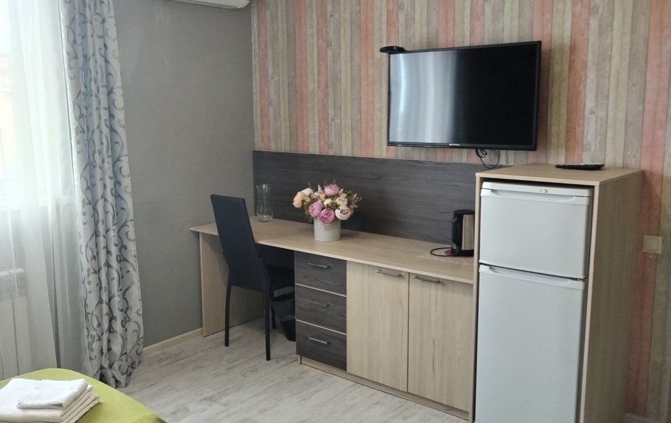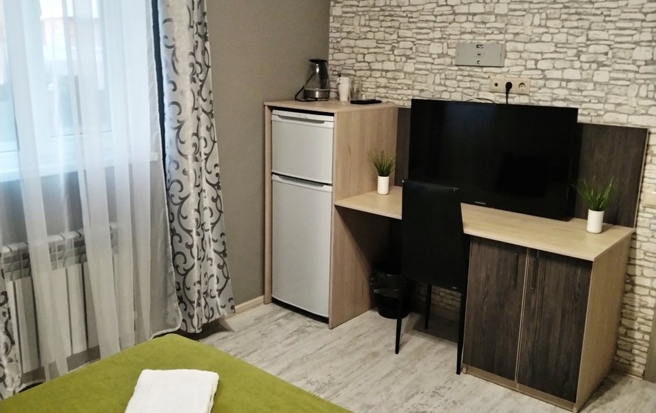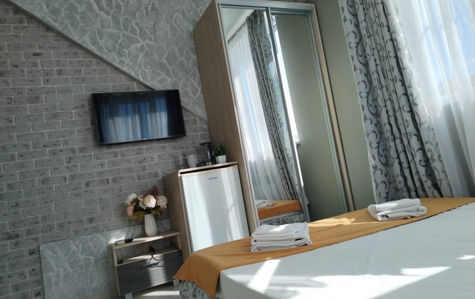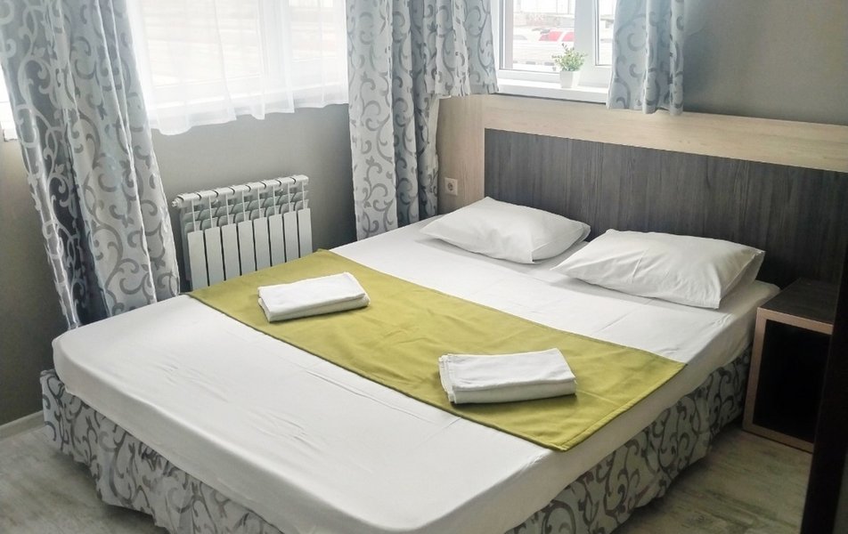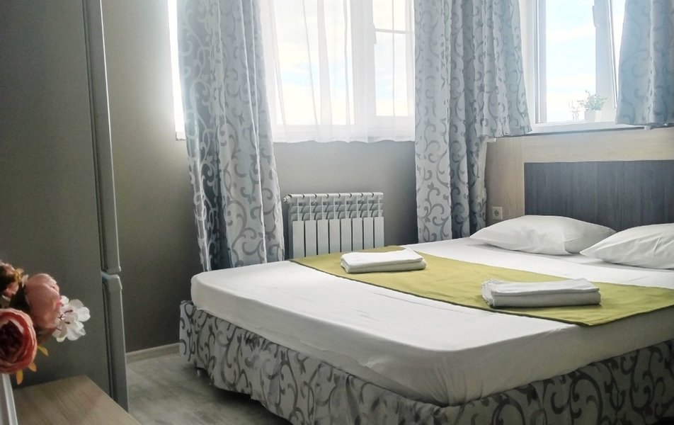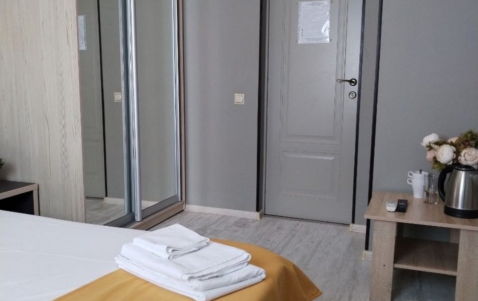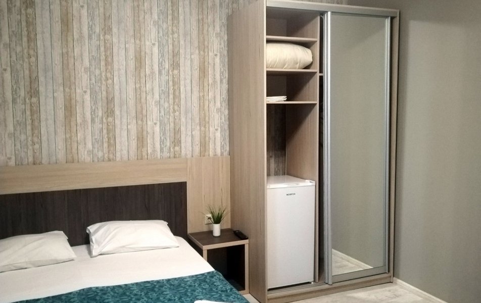 Стандартный 2-местный 1-комнатный Количество комнат: 1-комнатный Тип номера: Стандартный Дополнительное место: раскладушка Кол-во доп. мест: 1 Кол-во основных мест: 2 Площадь (кв. м): 18 Мебель: зеркало, кровать двуспальная, прикроватные тумбочки, тумба, шкаф Оборудование: кондиционер, телевизор, холодильник, электрочайник Санузел: с душем, туалетные принадлежности, фен Сервис: Wi-Fi бесплатно