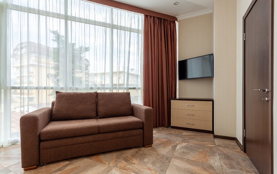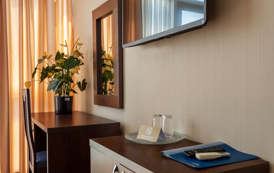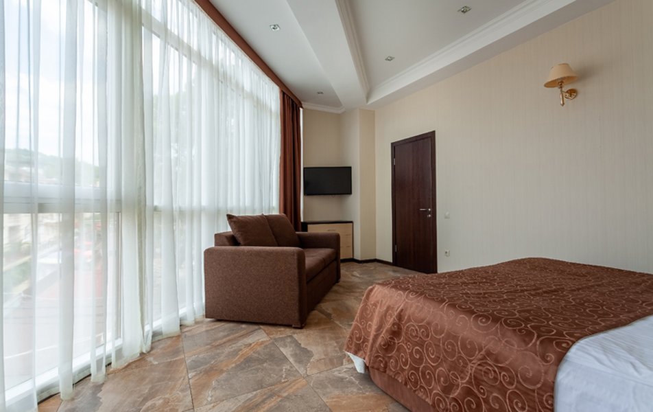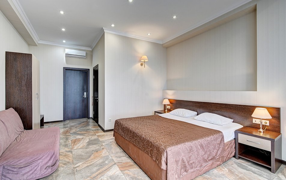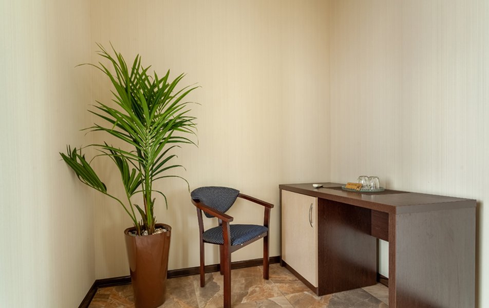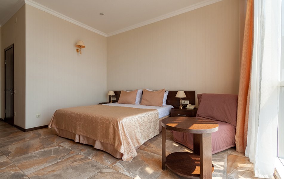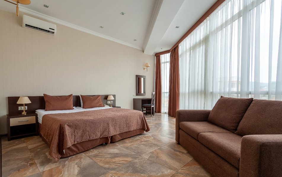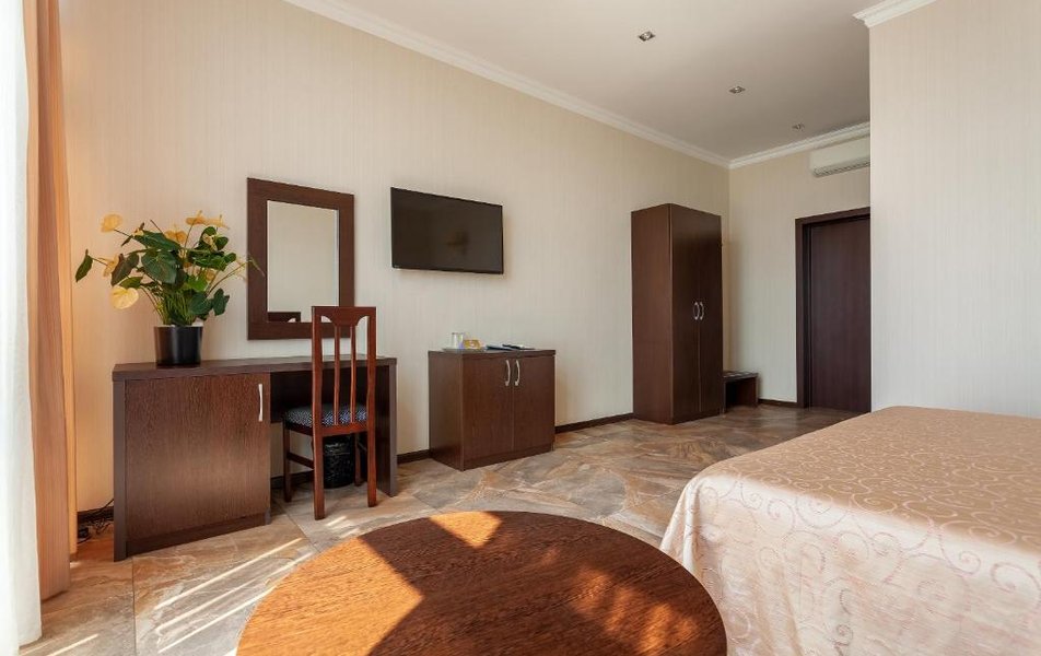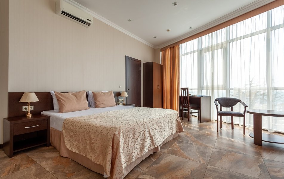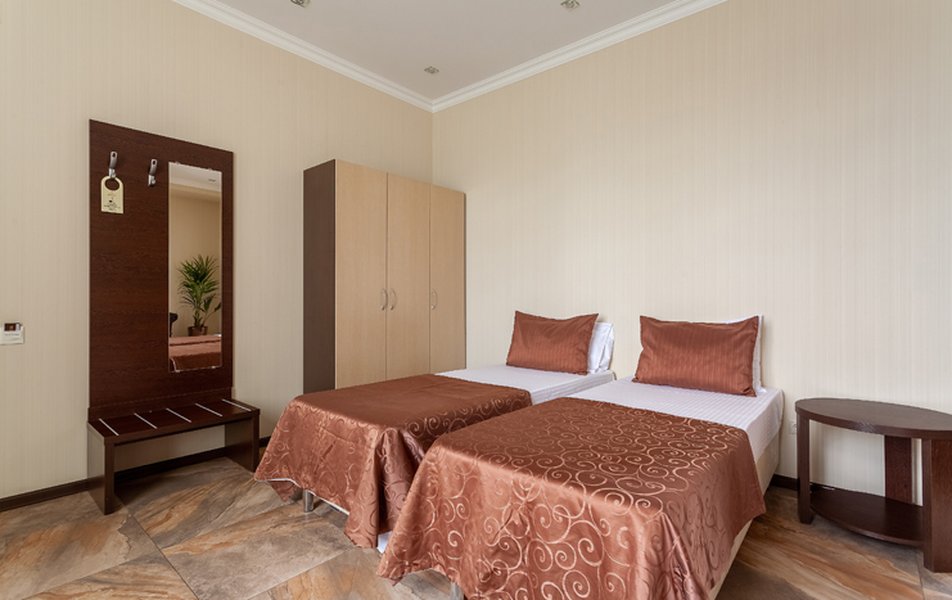 Номер неплохой, трёхместный, есть холодильник (работает плохо), огромные окна на город и чутка море. Пульт работает плохо, нет крышки на пульте, где батарейки, мебель пошарпаная местами, когда заехали телевизор не работал, сказали администратору, он ответил, что сделают утром, но муж всё сделал сам минут за 10, телефон в номере не работает, предупредили так же администратора, нам сказали, что заявку отправили, но ничего не изменилось, в номере нет тапок, полы холодные, муж сказал администратору, но она его игнорировала и сидела в телефоне, муж начал говорить на повышенных тонах, так как неприятно, когда отношение просто наплевательское, на нас вызвали охрану, просто супер, мы обязаны выполнять требования отеля, а работники нет. Вывод, отель неплохой, не смотря на недочёты в мебель, технику, элементарные нужды, но отношение администратора (девушки) имя не знаем, просто отвратительное, худшее, больше бы сюда не вернулись. По уборке вопросов нет. Номер был трёхместный.