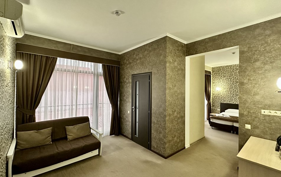 Отдыхали в начале сентября, в апартаментах. Бронировали за три месяца. Отдых планировали с маленьким ребенком, потому теплый бассейн, вода и др.удобства были главным критерием в выборе отеля. По итогу из плюсов: 1. Относительно близкое расположение к морю. 2. Девушка администратор, которая пошла на встречу, и заселила нас раньше. Из минусов: 1. Бассейн оказался ледяным! На ресепшен ответили что пока что так, ждут какие то детали. НО теплый бассейн был главным критерием при выборе отеля, на сайте заявлено что он подогреваемый. По итогу в жару с ребенком сидели дома, искупаться в ледяном бассейне даже для взрослого испытание. К тому же, плитка в самом бассейне везде отваливается, что очень опасно. Повсюду валяются маленькие острые плиточки о которых порезался взрослый человек, аккуратно заходя в воду, не говоря уже о детях. 2. Огромное количество комаров в номере и на территории отеля. Ребенок был искусан сильно каждый день. 3. В апартаментах присутствует джакузи на улице. По итогу это просто ванна. Опять же, ничего не работает, весь смысл в пузырьках, а они сломаны. 4. Система подачи завтраков очень неудобная. Нужно каждый день отмечать в листочках блюда, бронировать время подачи завтрака. И всегда удобное для вас время окажется занято. Отель хотел сэкономить, а получилась какая то фигня.лучше организовать шведский стол, чем так . 5. Ремонт оставляет желать лучшего. Старые двери, которые клеены-переклеены, все болтается, душ в ванной течет, старая сантехника. Очень грязный пол. Под кроватями и диваном слой пыли и грязи, мусора,который не убирали наверное с самого открытия. К слову, уборка в номере состоит только в выносе мусора и замены полотенец раз в три дня. Туалет тоже грязный, не домывают. В общем и целом, второй раз в этот отель не ногой, и другим не посоветую. Никакой компенсации не предложили и даже не извинились за всё поломки и недочеты. Дерут немалые деньги, а уровень обслуживания и проживания оставляет желать лучшего.