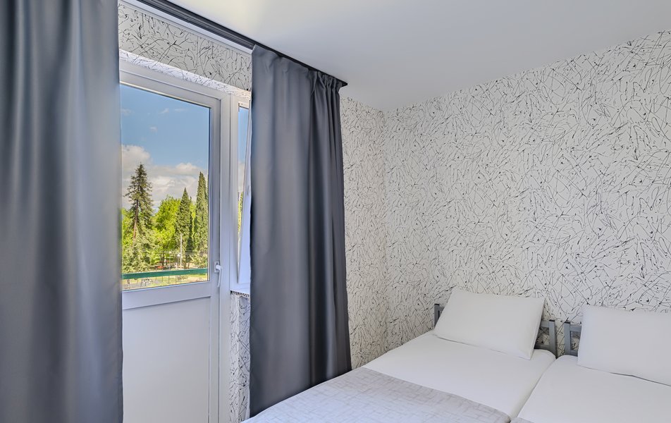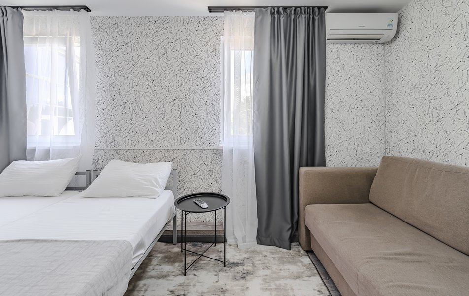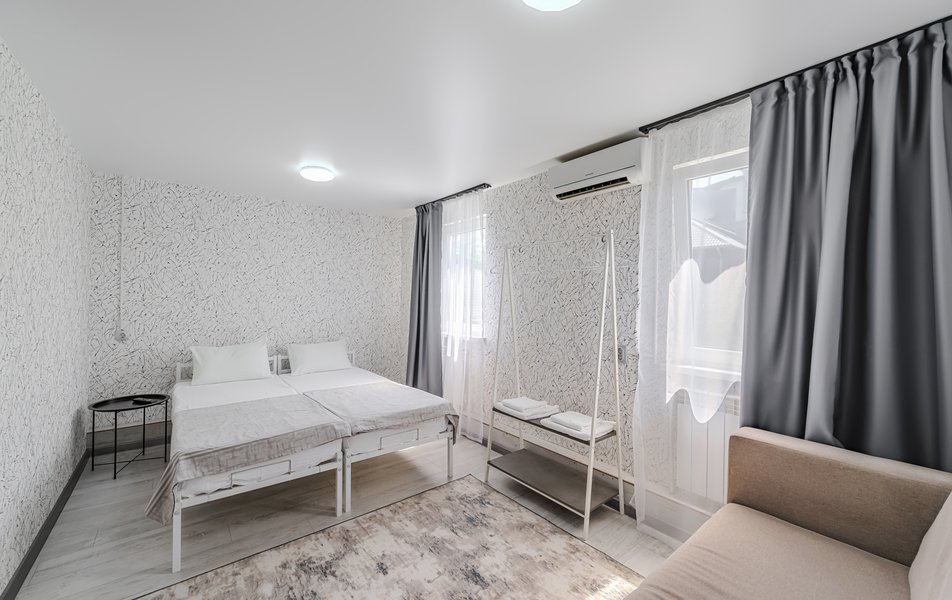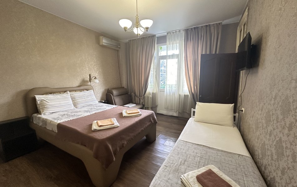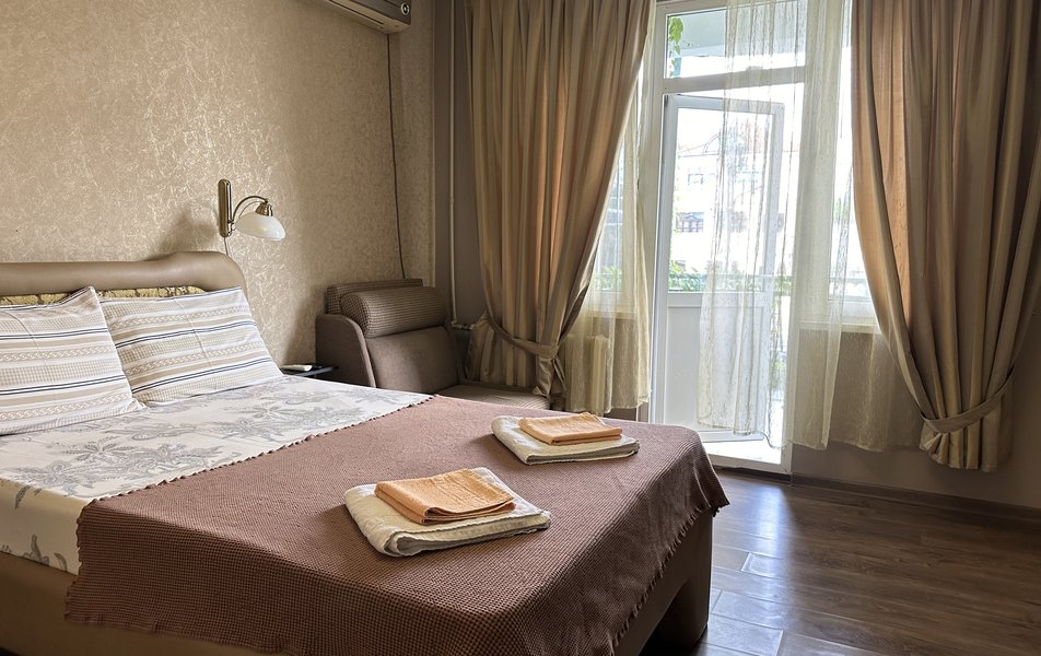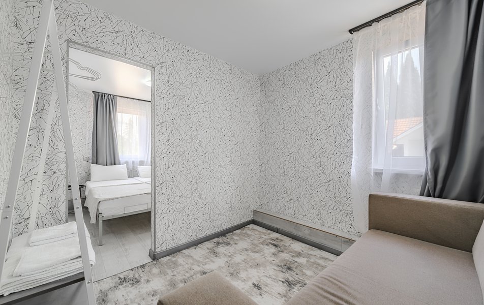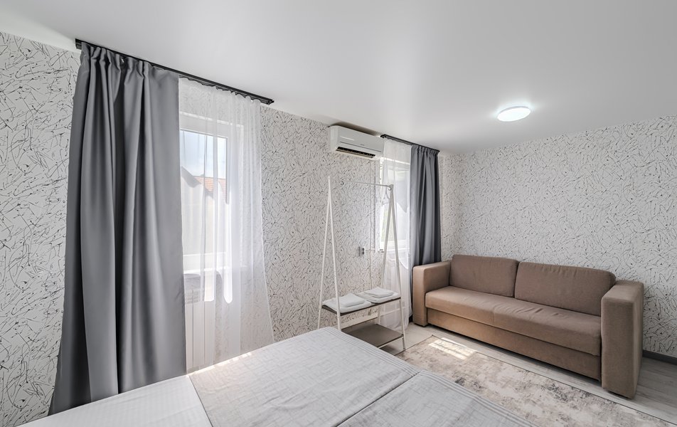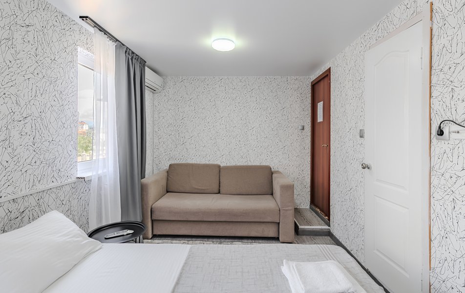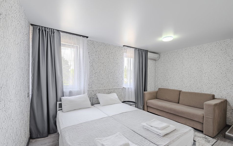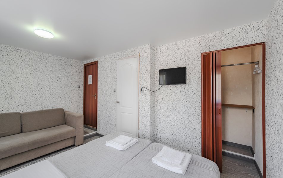 Комфорт 2-местный Количество комнат: 1-комнатный Тип номера: Комфорт Дополнительное место: раскладной диван Кол-во доп. мест: 2 Кол-во основных мест: 2 Мебель: диван раскладной, кровати односпальные /одна двуспальная кровать, стол, стул Оборудование: кондиционер, телевизор Санузел: с душем, туалетные принадлежности, фен Сервис: Wi-Fi бесплатно, уборка номера: 1 раз в 5 дней