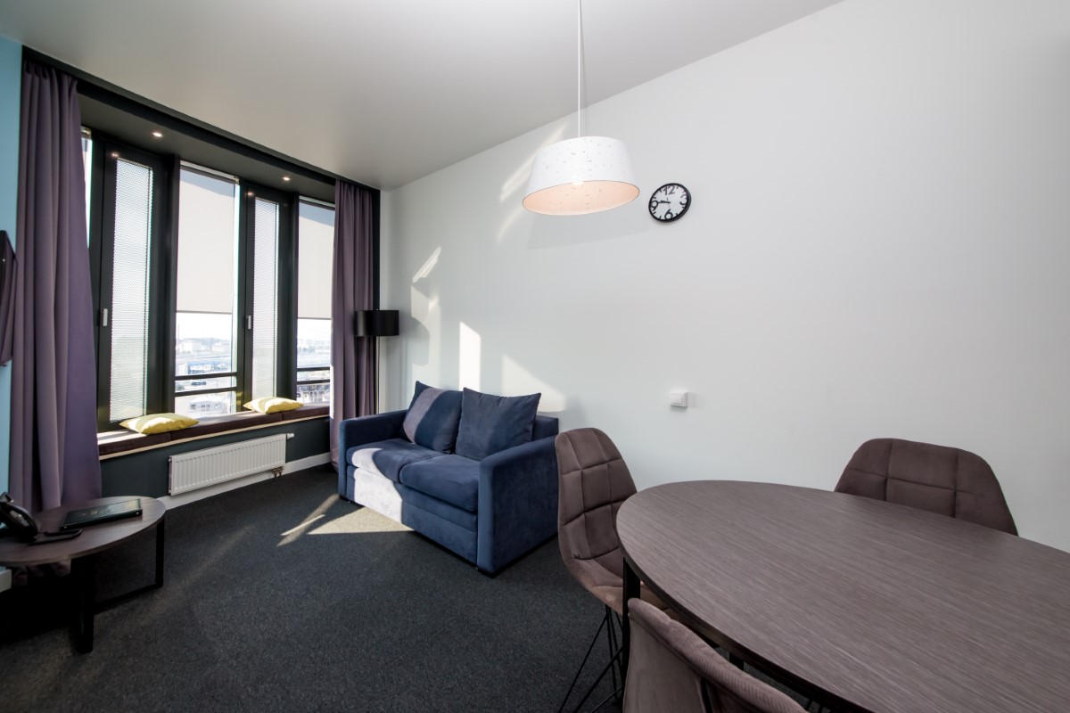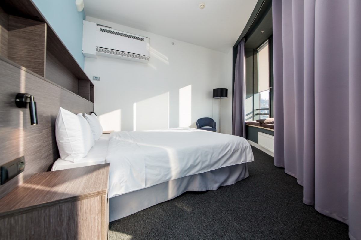 У нас с мужем был номер студия, оплаченный компанией мужа. Сам номер стильный. И на этом плюсы пожалуй заканчиваются. Звукоизоляция в гостинице отсутствует полностью. Слышно как в соседнем номере по полу ходят, и шваркают микроволновкой, я уже не говорю обо всех остальных звуках человеческой жизнедеятельности.Полотенцесушитель в номере не работал. Вместо косметических средств бадья с жидким мылом одна для всего. Теперь про питание. Завтраки в этом отеле- худшее что я видела за свою жизнь. Уважаемое руководство! Вы построили вроде бы новую современную гостиницу, а уровень предлагаемого питания хуже чем в совке было. Жирные невкусные кебабы на завтрак- это феерия вашего фиаско! Вся еда стоит на столе без подогрева, мгновенно остывает. То, что более менее можно положить в рот- разбирается в 1 секунду, и дальше никто не спешит нести добавку. То есть нужно быстро бегать за едой))))) это смех и грех!))) Ходили на завтраки выпить кофе, и съесть кусок тортика, и то, потому что уже было оплачено. Все остальное просто не съедобно. Ни одного ресторана а ля карт в огромной гостинице нет- это тоже фиаско. До моря далеко. Но нам и не надо было, мы на конференцию приехали. Короче, ищите 3-ку поприличнее, тут пока ничего не умеют.