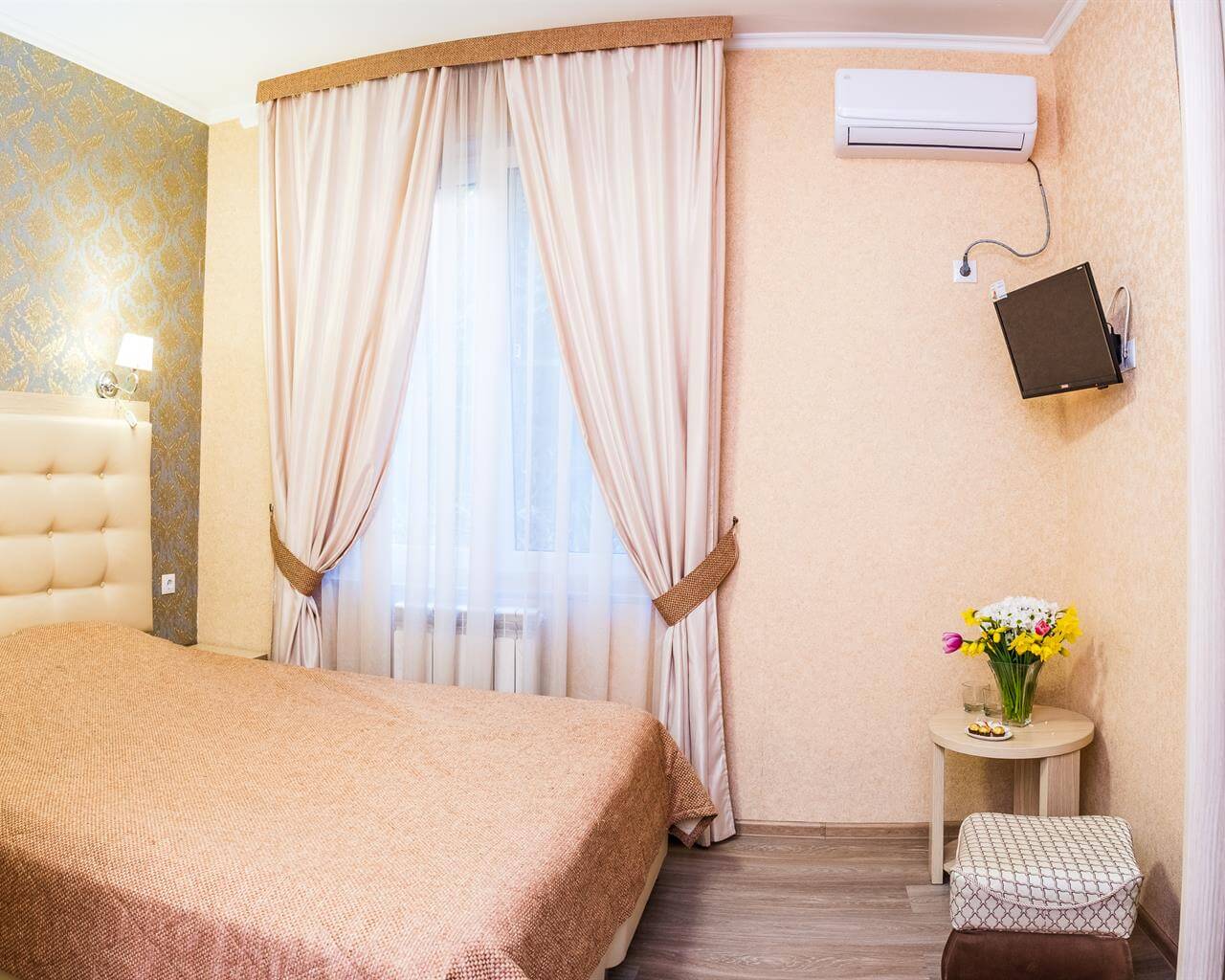 Однокомнатный номер с одной двуспальной кроватью или двумя односпальными. Дополнительное спальное место — еврораскладушка. В числе удобств кабельное телевидение, кондиционер, мини-холодильник. Ванная комната оборудована душем, туалетными принадлежностями, феном.