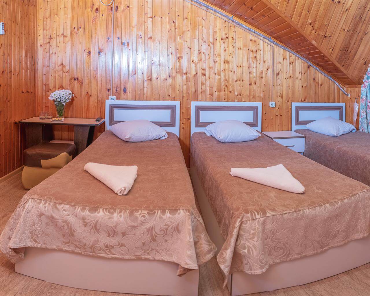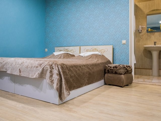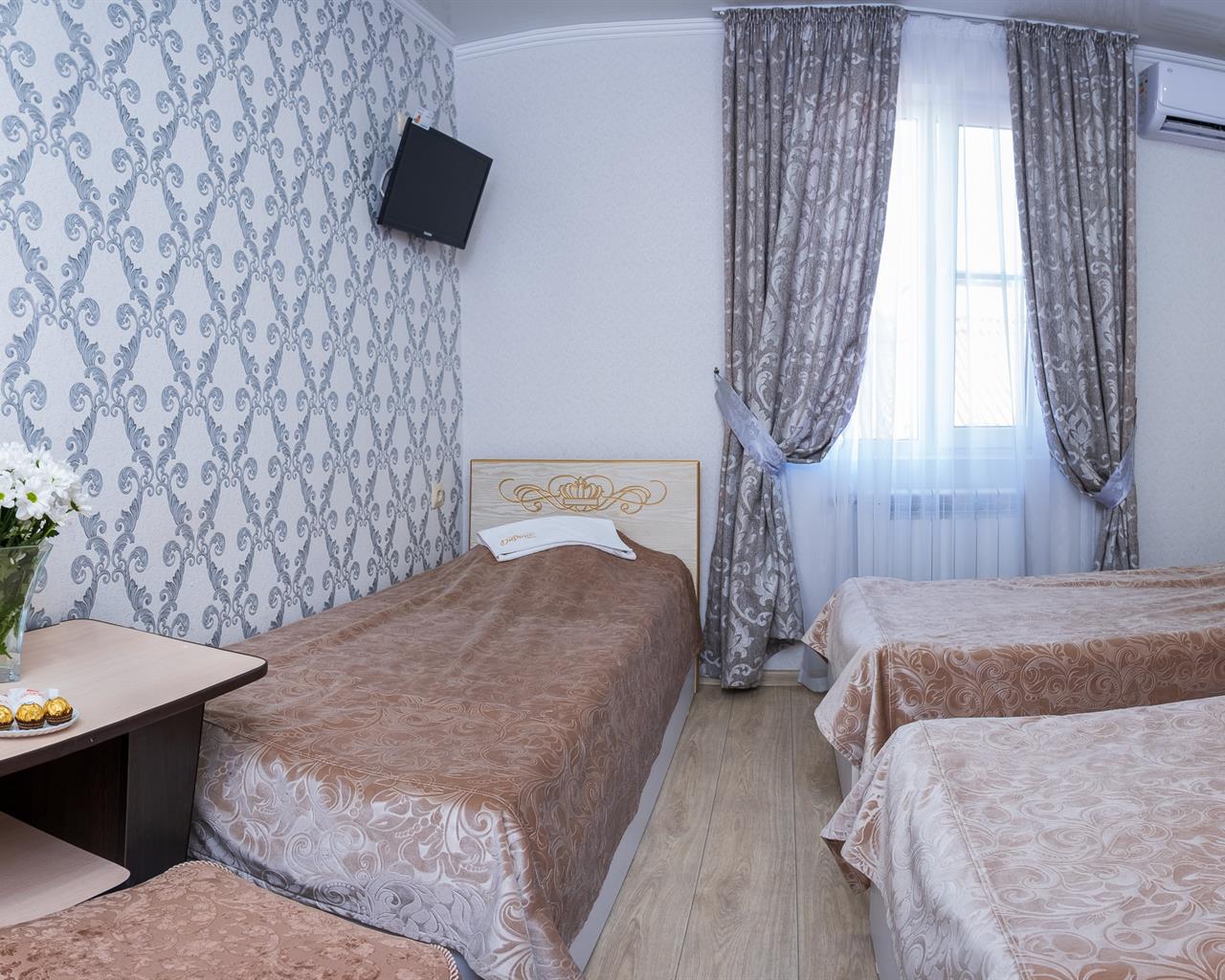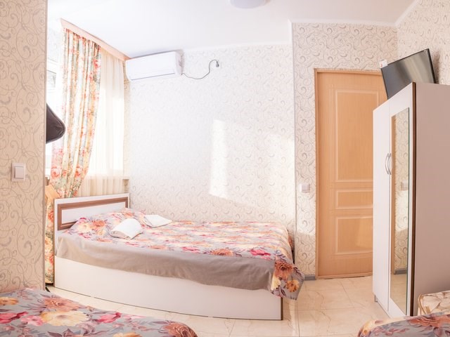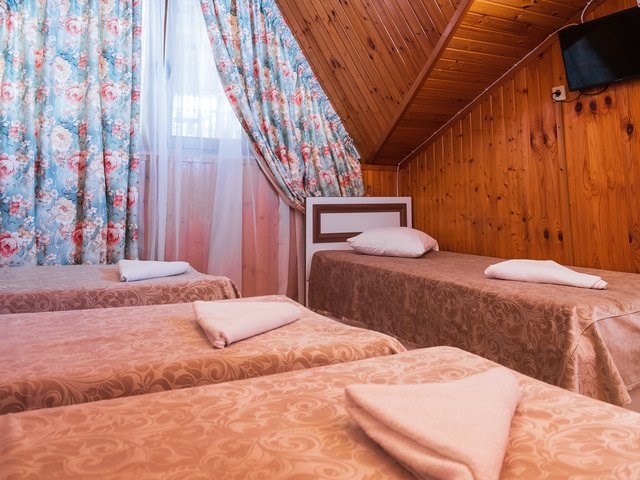 Однокомнатный номер с тремя односпальными кроватями. В числе удобств кабельное телевидение, кондиционер, мини-холодильник. Ванная комната оборудована душем, туалетными принадлежностями, феном.