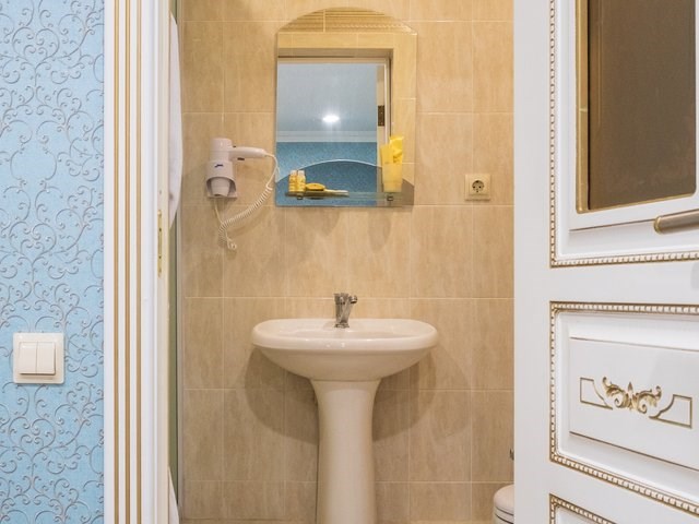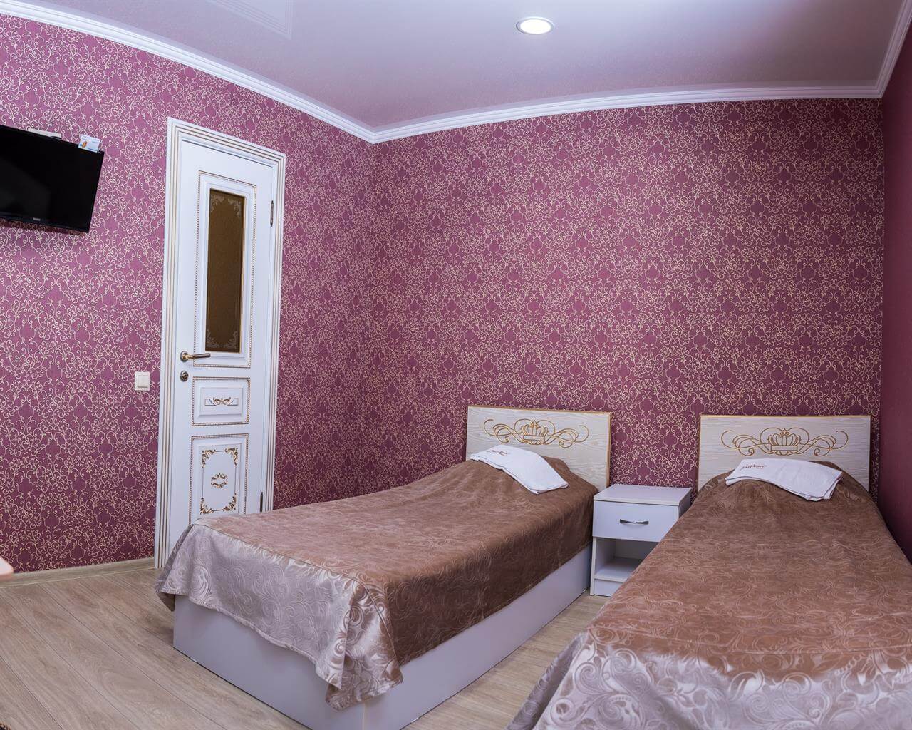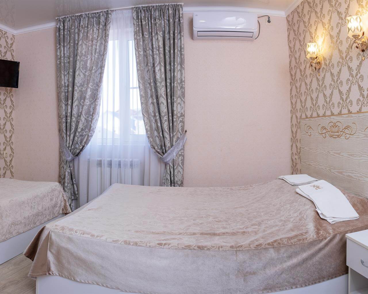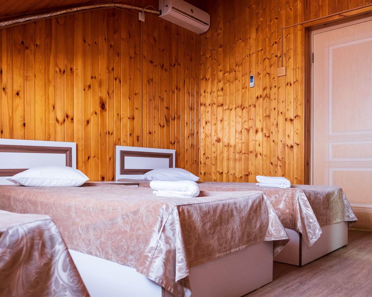 Однокомнатный номер с тремя односпальными кроватями. В числе удобств кабельное телевидение, кондиционер, мини-холодильник. Ванная комната оборудована душем, туалетными принадлежностями, феном.