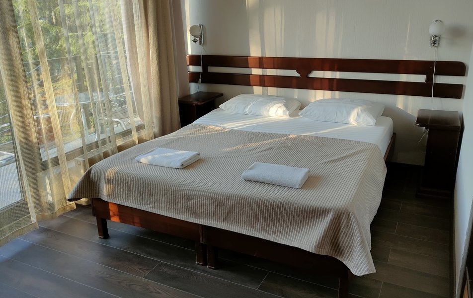 Стандартный 2-местный (TWIN) Количество комнат: 1-комнатный Тип номера: Стандартный Вид из номера: на двор: и парк Кол-во основных мест: 2 Площадь (кв. м): 20 Балкон: с мебелью Мебель: зеркало, кровати односпальные, прикроватные тумбочки, стол, стул, шкаф Оборудование: кондиционер, телевизор, холодильник Санузел: с душем, тапочки, туалетные принадлежности, фен Сервис: Wi-Fi бесплатно, смена полотенец, смена постельного белья, уборка номера