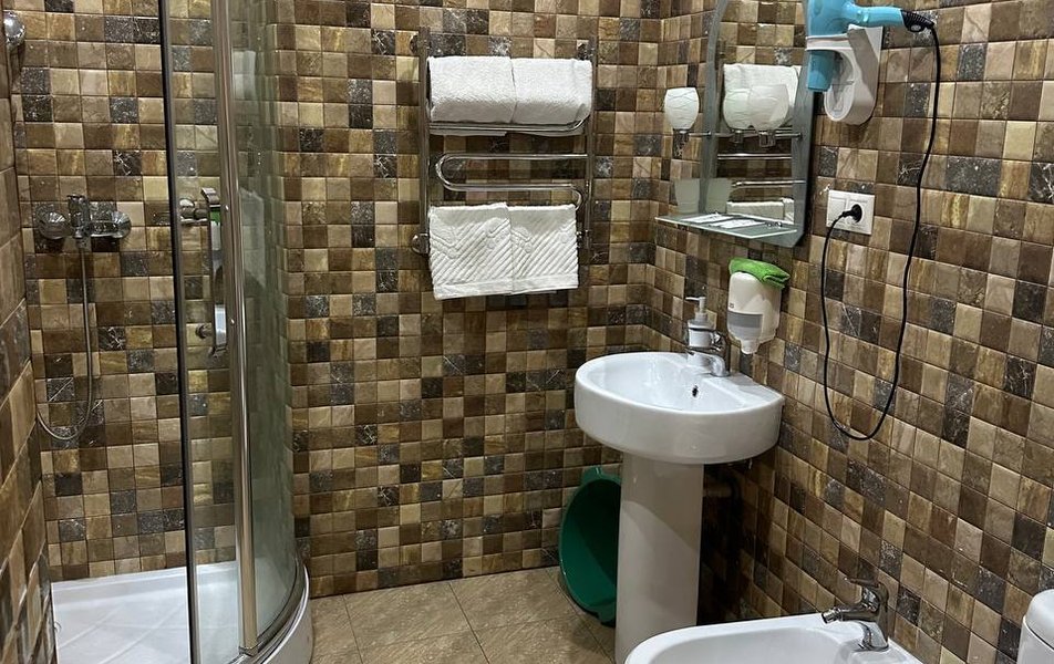 Люкс 2-местный Количество комнат: 1-комнатный Тип номера: Люкс Вид из номера: на двор: на парк Кол-во основных мест: 2 Площадь (кв. м): 30 Балкон: с мебелью Мебель: кровать двуспальная, прикроватные тумбочки, стол, стулья, шкаф Оборудование: кондиционер, телевизор, холодильник Санузел: с душевой кабиной, тапочки, туалетные принадлежности, фен Сервис: Wi-Fi бесплатно, смена полотенец, смена постельного белья, уборка номера