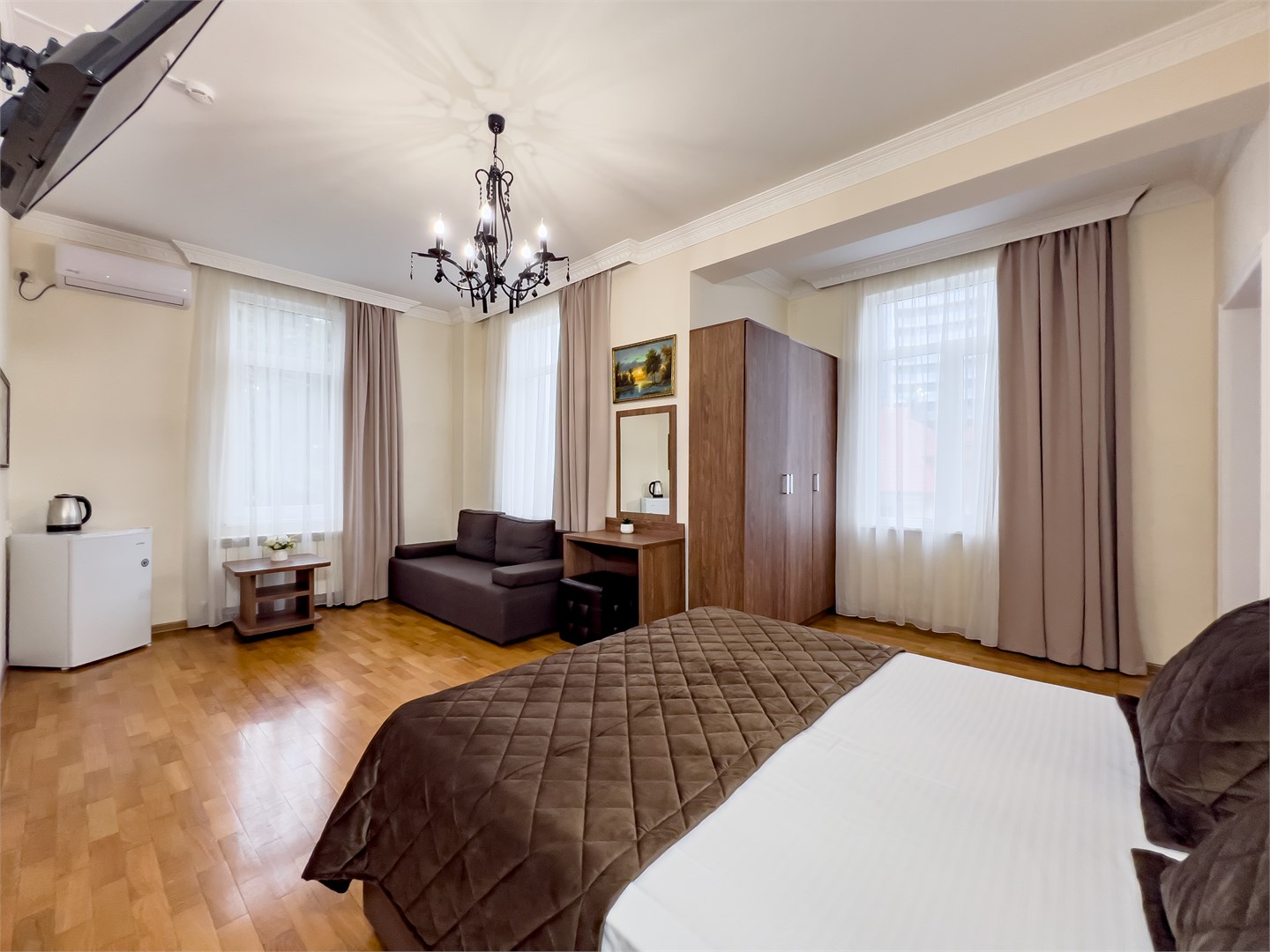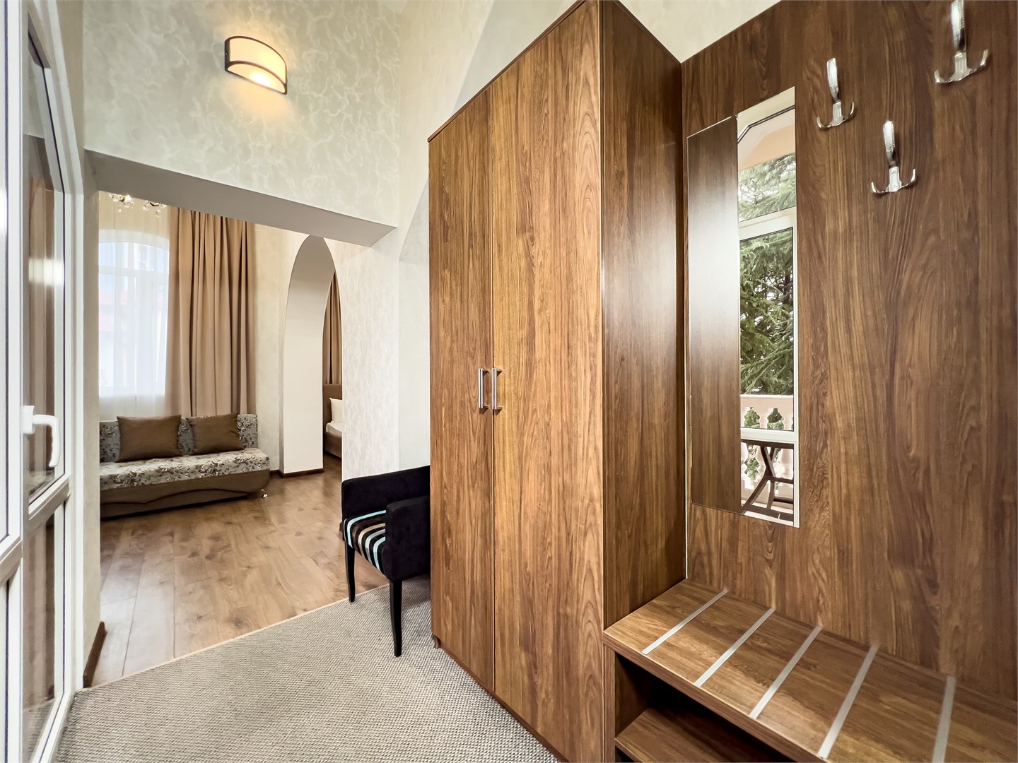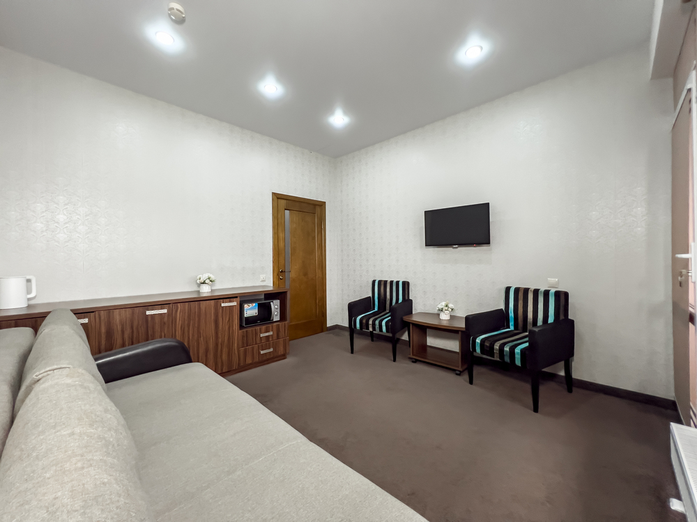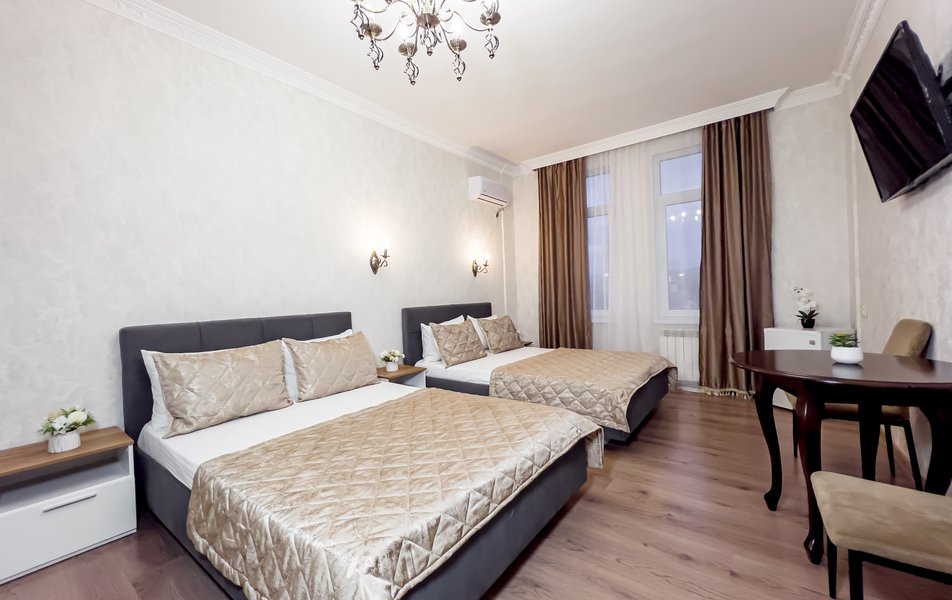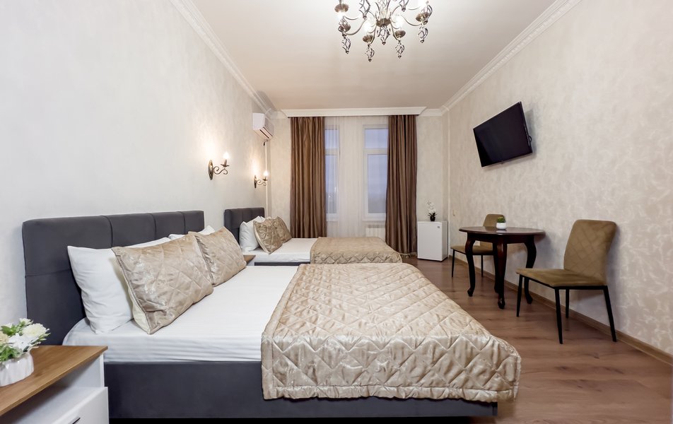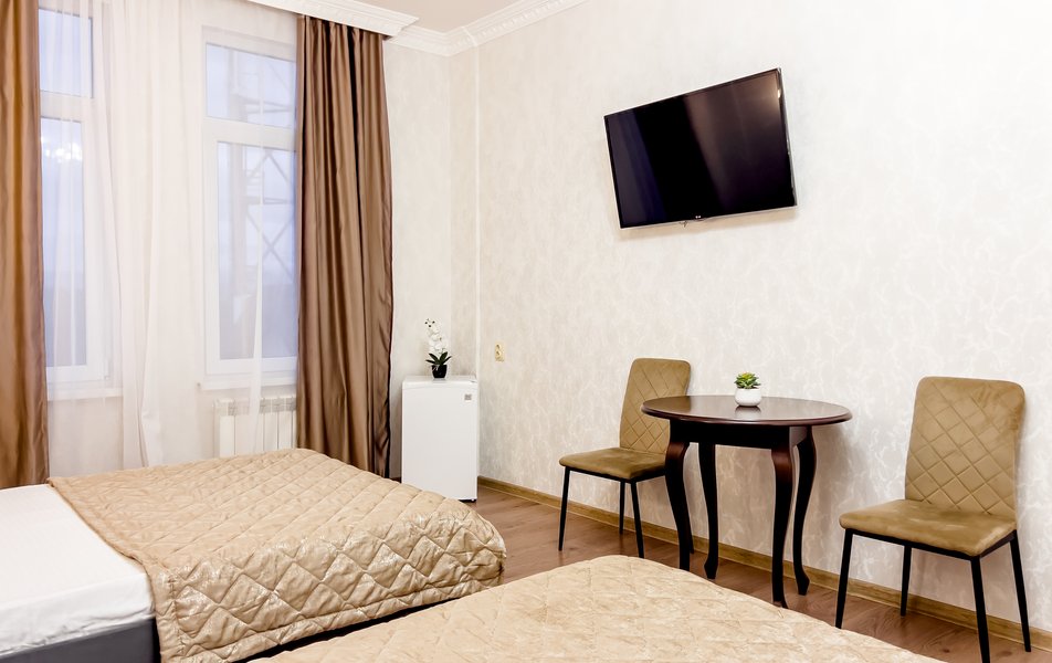 Хорошая трехзвездочная гостиница, для временного проживания отлично подойдет! Расположена в удобном районе, на пляж хоть каждый день ходи, занимает поход минуты 3 до моря, различные тц рядом, лесопарки и зоопарк! Бюджетно обошлось и проживание на 10 дней, в комфортном номере, с современной мебелью, все уютно и красиво выглядело. Мне здесь понравилось, буду рекомендовать знакомым, если поедут в Сочи!