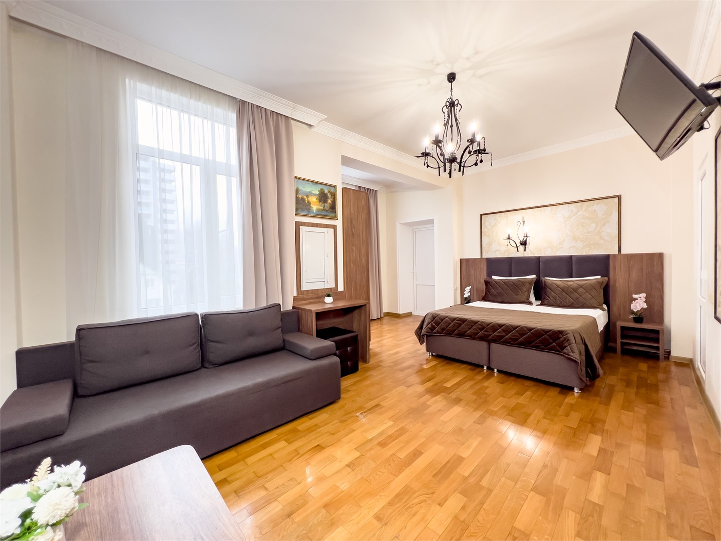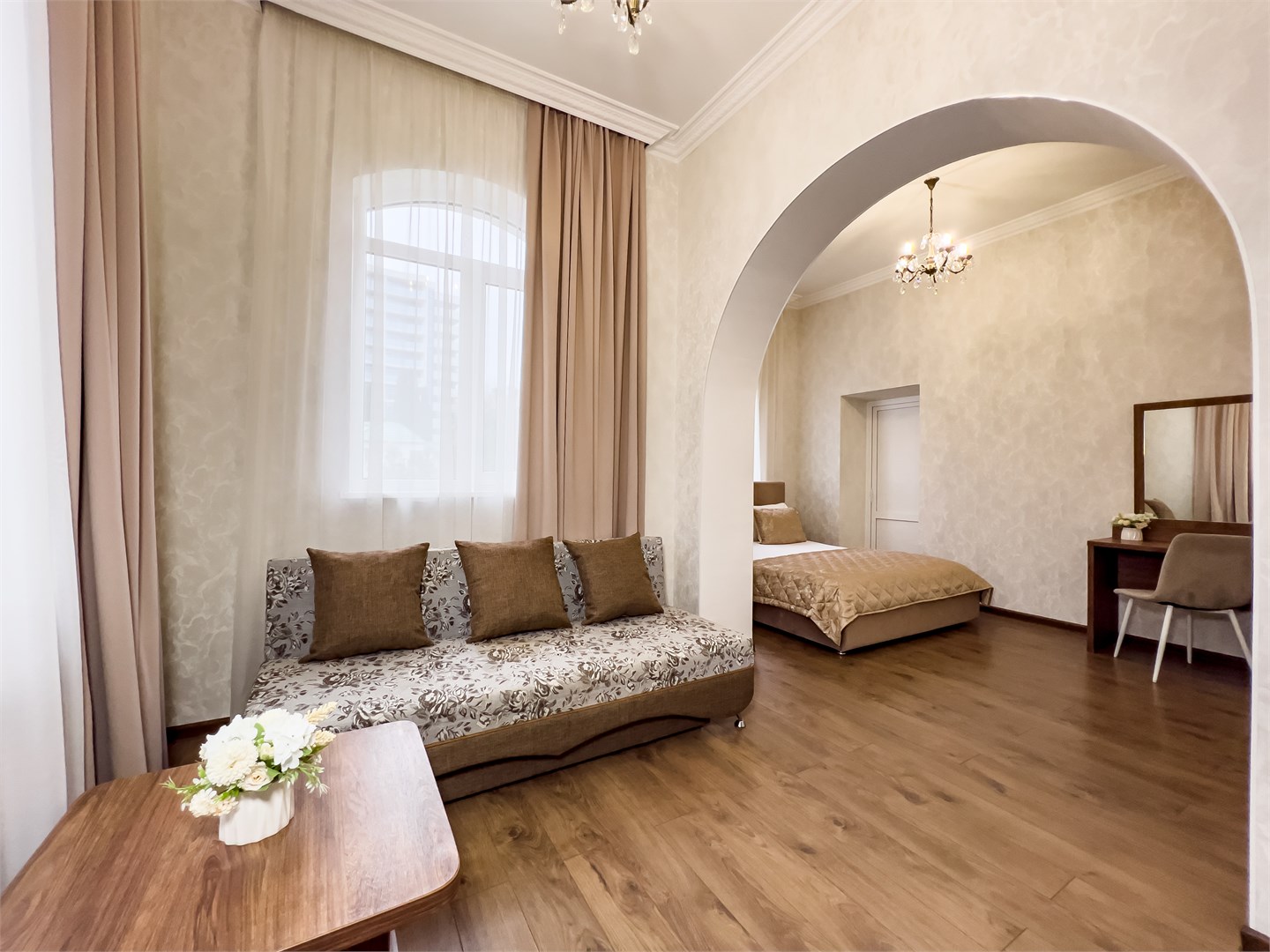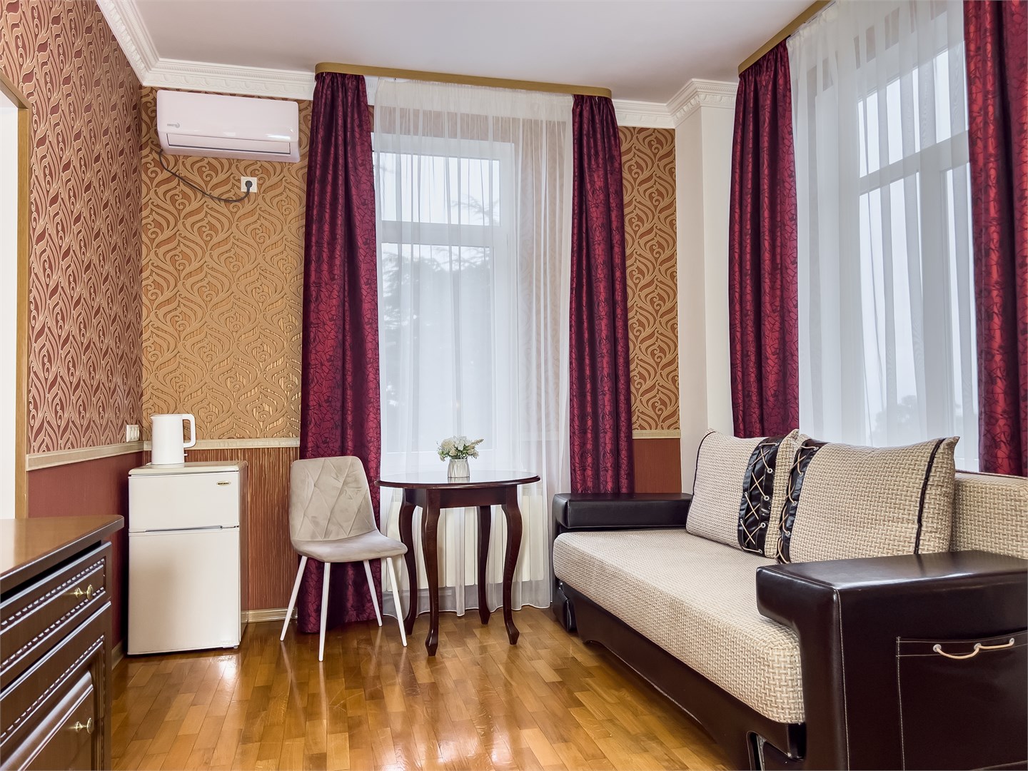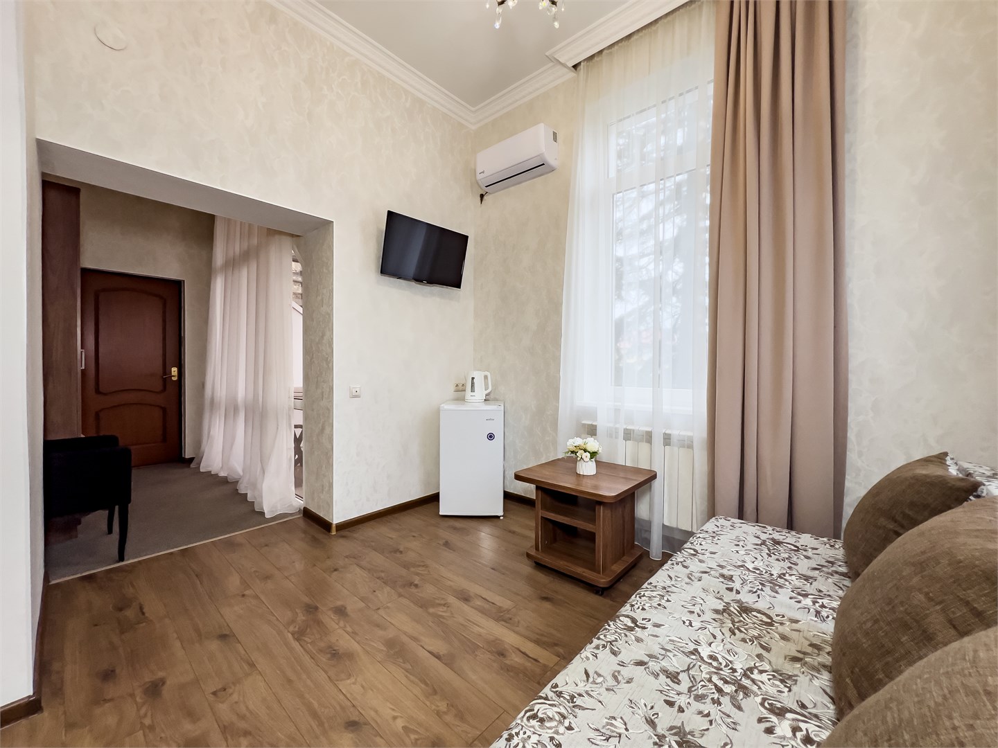 Хорошая трехзвездочная гостиница, для временного проживания отлично подойдет! Расположена в удобном районе, на пляж хоть каждый день ходи, занимает поход минуты 3 до моря, различные тц рядом, лесопарки и зоопарк! Бюджетно обошлось и проживание на 10 дней, в комфортном номере, с современной мебелью, все уютно и красиво выглядело. Мне здесь понравилось, буду рекомендовать знакомым, если поедут в Сочи!
