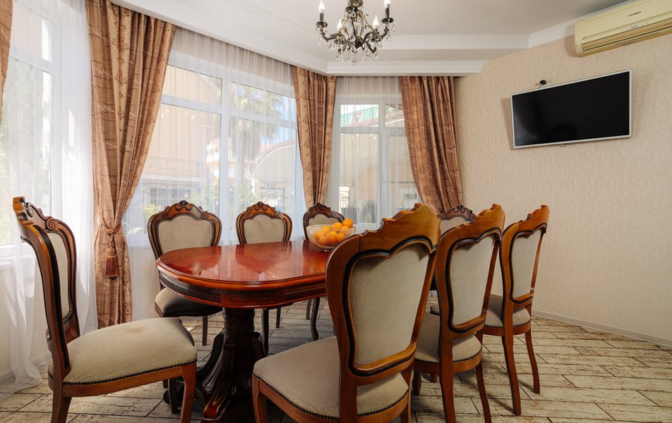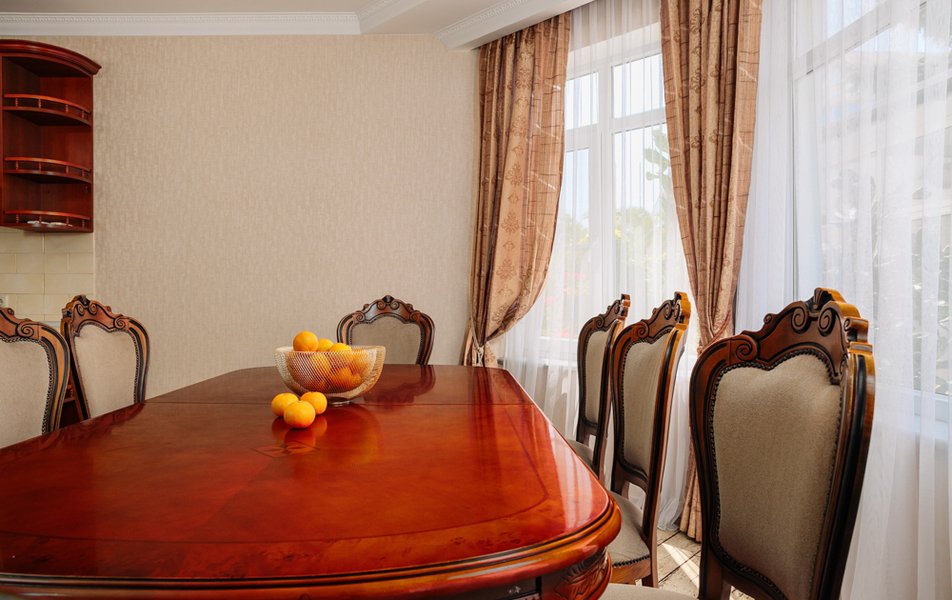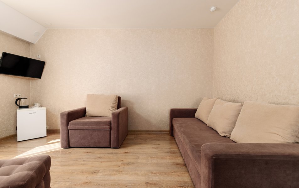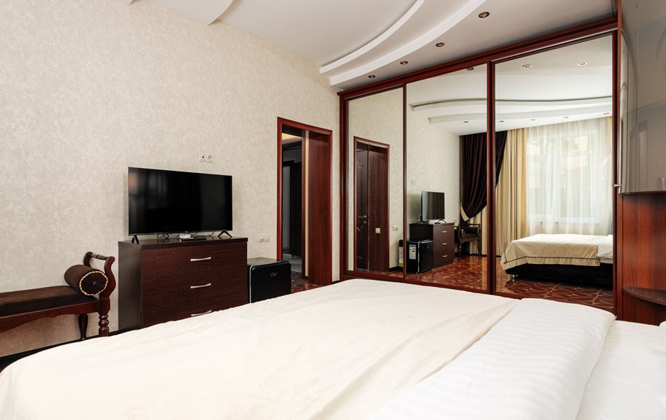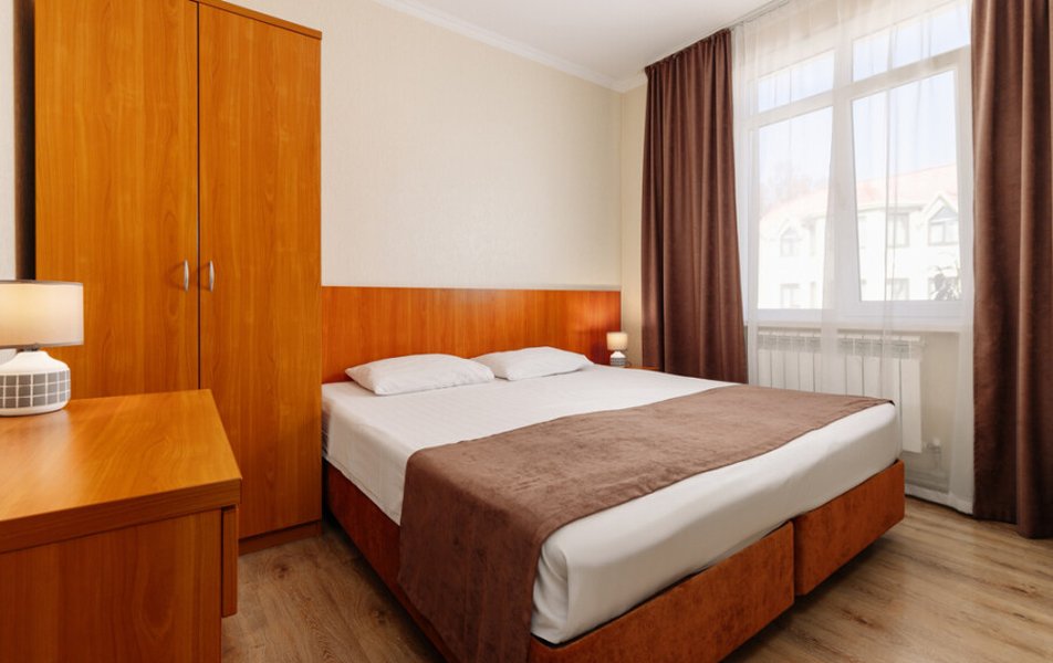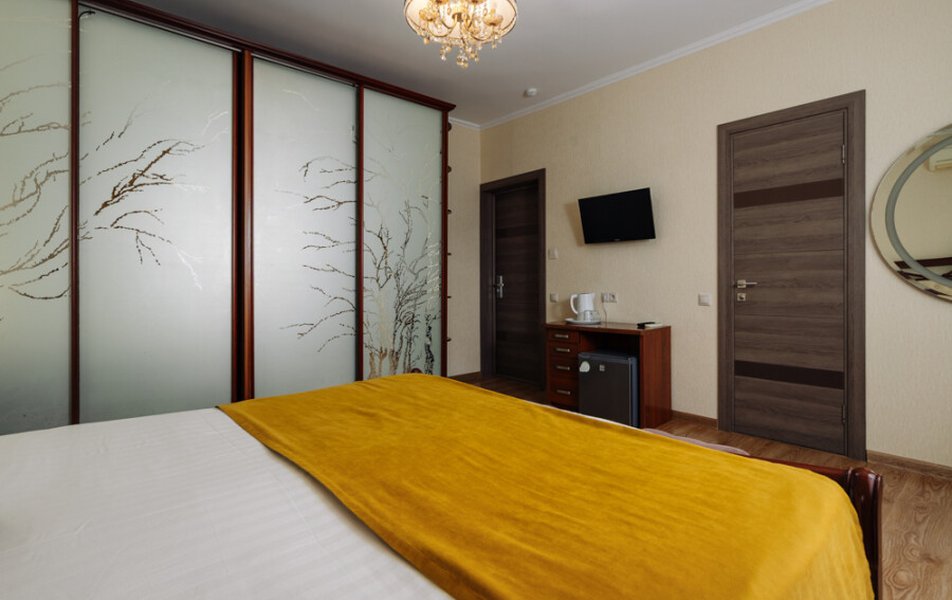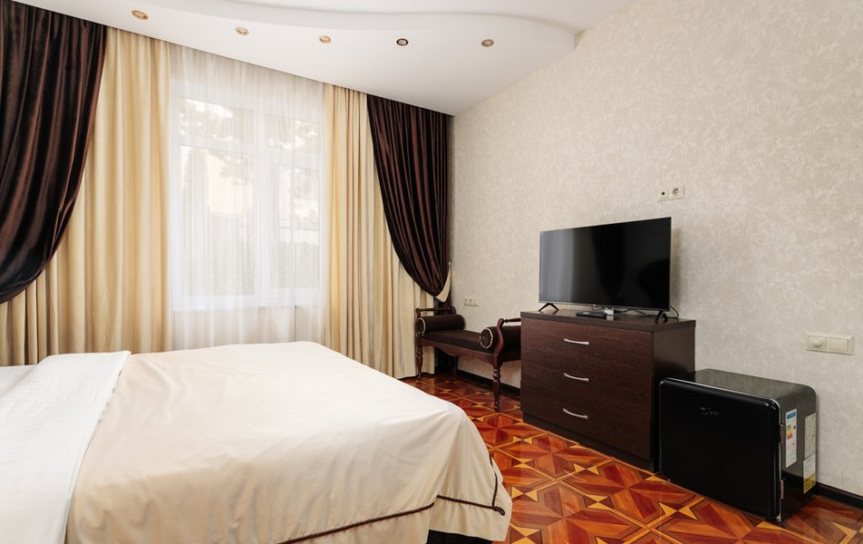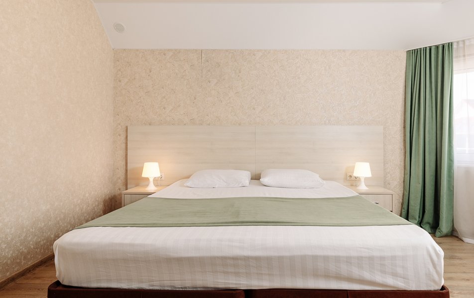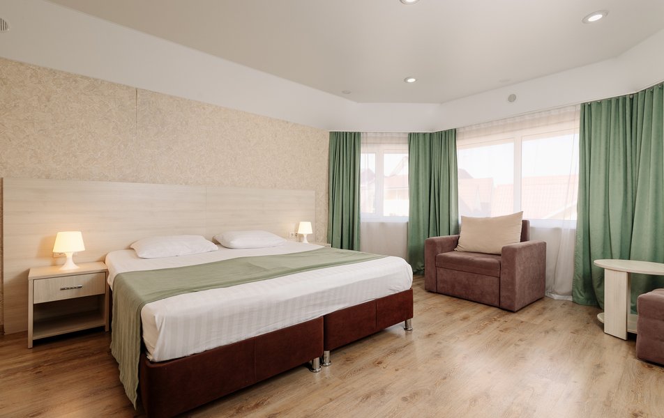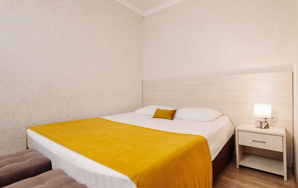 Плюсы: -Номер чистый, симпатичный, (брали трёхместный, который остался. Но жили вдвоем. На цене это не сказалось. Видимо, потому что не сезон, май 2021 выдался холодным). Окна выходят на дорогу и соседние отели. Между ними видно горы. У других номеров окна во двор. - Постели чистые. Полотенца каждому для лица, ног, тела. - Утром после 10 часов приходят забрать мусор. В санузле есть таз для стирки, тряпочка. - В номере есть плоский телевизор (не смарт, но есть HDMI и USB), фен, чайник, мини-холодильник, стол, 3 чашки (без ложек), кондиционер, сушилка, 1 двухспальная и 1 односпальная кровати, кресло, 2 тумбы со светильниками у кроватей, шкаф вешалка зеркало, 2 табуретки на балконе. Везде есть розетки, освещение - раздельно (не забудьте вставить ключ-карту в отсек у двери, иначе свет не включится). На фото отеля есть этот номер. Гладильная доска и утюг есть на этаже. В общем, минимальный набор для комфортного проживания. Не хватает микроволновки, но это уже придирки. - Шторы плотные, закрывают окно полностью. В санузле отдельная форточка. - Отзывчивый, доброжелательный персонал Минусы: -Завтрак для мужчины мал (1 каша, 2 яичница/омлет/сосиски/сырники/блины, 3 чай/кофе). За небольшую доплату можно договориться совместить, например, сосиски омлет -Сантехника немного уставшая (но, по просьбе, сразу пришли и заменили прокладку в соединении душа и смесителя) -Шумоизоляции нет вообще. Слышно сморкающегося соседа, шум воды, пролетающие самолёты (которые часто взлетают и садятся прям над головой) - Возможно, это наши придирки, но не хватает сейфа. -Из принадлежностей в санузле всего лишь мыло и шампунь. Геля для душа нет. Остальное: -В кафе поужинать вкусно (!), много, но дороговато, засчет больших порций (мы не справились, пришлось забрать с собой. Есть такая услуга). Кафе крытое. -Трансфер из аэропорта платный, 500 руб. Скорее всего, Вас забудут об этом предупредить -В шаговой доступности магазины, мост через реку в сторону старого Адлера, еда, дендрарий. Но придется немного покружить. Некоторые пути неявные, многие ведут в тупик. Если выйти к Имеретинскому гостиничному комплексу, можно сесть на автобусы до олимпийских объектов, Сочи-парка, до Красной поляны (есть вариант доехать на Ласточке). -В номере работают датчики задымления (не курить!). Курить можно на балконе, есть пепельница.