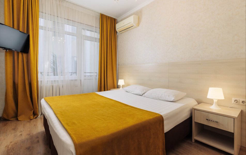Заселились на новогодних праздниках на 1 ночь и то не понравилось. Это не отель, а гостевой дом. Для информации. 1. Номера не подходят для зимнего проживания, номера не отапливаются!! Можно поставить кондиционер потеплее, но все равно было холодно. Могли бы поставить дешевенький обогреватель от розетки. 2. Включенный кондиционер так шумит, как холодильная установка. 3. Еще одним сюрпризом будет, когда услышите гул самолета, так как над домом проходит посадочная полоса. Гул такой нормальный!! 4. Нет парковки. Вечером еле припарковались через 3 дома. В описании наличие парковки было! 5. В номере под холодильник и тв одна розетка, то есть или то, или то. 6. Кровать двуспальная, одеяла раздельные, наверно, чтобы не замерли. 7. Сантехника чистая, но вот ковер в комнате был какой-то неприятный. Вроде бы чисто, но трогать ничего не хотелось. Хотя я не брезгливый человек. Из плюсов: только заселение с животными. Низкая цена, но и качество соответсвующее. Не вернусь туда никогда.