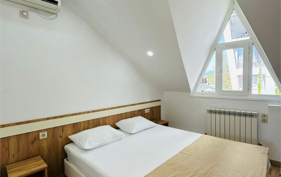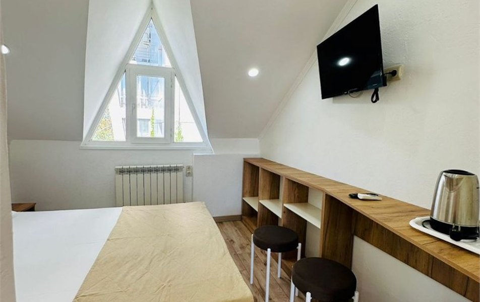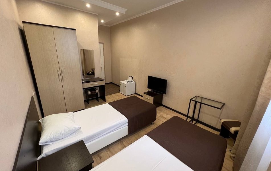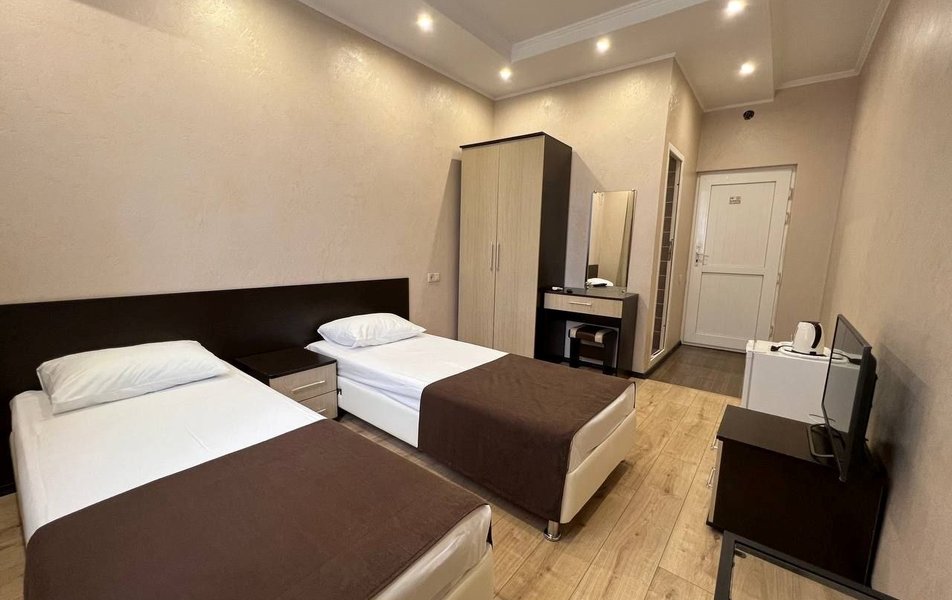 Отдыхали в этом отеле в июне 2021 г., выбрали по отзывам и были неприятно удивлены. Этой гостинице можно поставить плюсик только за месторасположение, море рядом в 100 метрах, парки, скверы, магазины, кафе, всё рядом. Красота вокруг, но только не внутри. Гостиница шестиэтажная, лифта нет. Будте готовы сами тащить свои чемоданы по лестнице, вам никто не поможет.( Нас пенсионеров, одна из которых инвалид поселили на 5 этаж, просьбы пониже никто не услышал, еле поднялись, со слезами). Номер: чистый, нормальная мебель, НО для удобства проживания ничего нет, всё эконом вариант. Санузел крохотный, посуды нет, чайник один на этаж, две сушилки для белья, на пять номеров. Которые стоят в общем коридоре, где полотенце за двое суток не высыхает, а вот нижнее бельё, придется либо на общее обозрение вешать, либо как-то сушить прямо в номере. Постельное не меняют, за 9 дней ни разу. Полотенце меняли через 5 дней. Уборку могут сделать кое как, а могут и вообще пропустить, если будешь молчать и ждать покорно. Мусор выносят исправно. И отдельная тема персонал. Не встретили, не представились, ни здравствуйте, ни до свидания. Отношение, как к пустому месте, полное пренебрежение. Ни кому не советую это место! Не стоит портить свой отдых, рядом много других гостиниц. Лично мы и наши соседи, по номерам больше туда ни ногой!