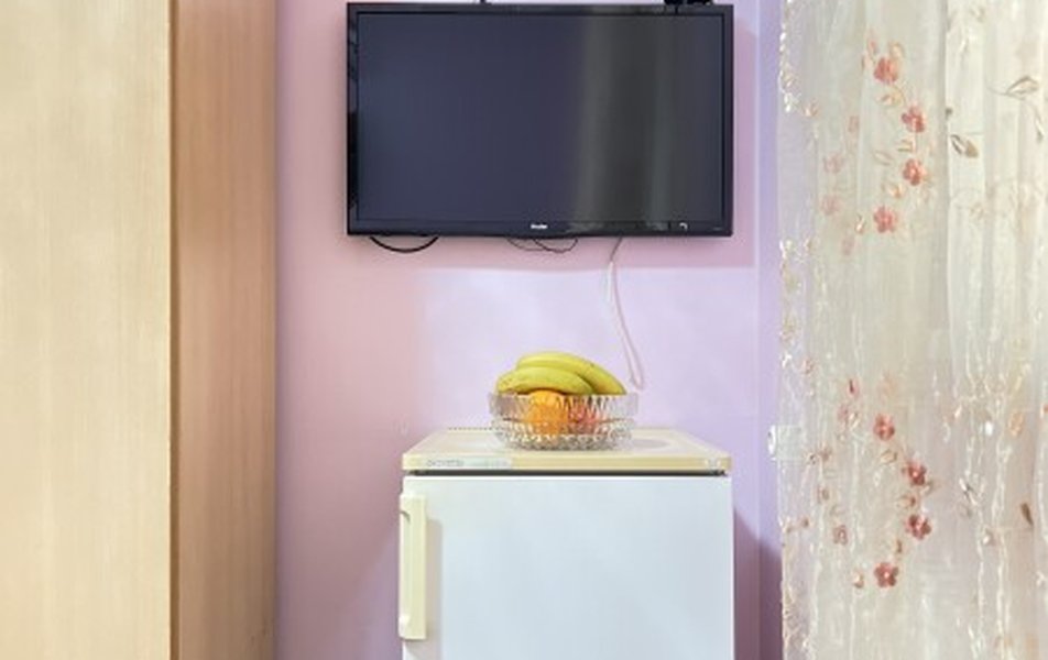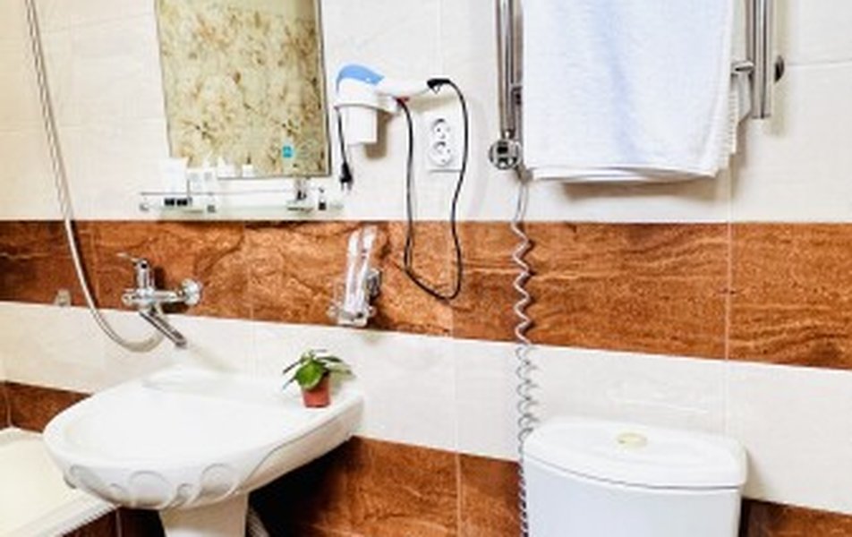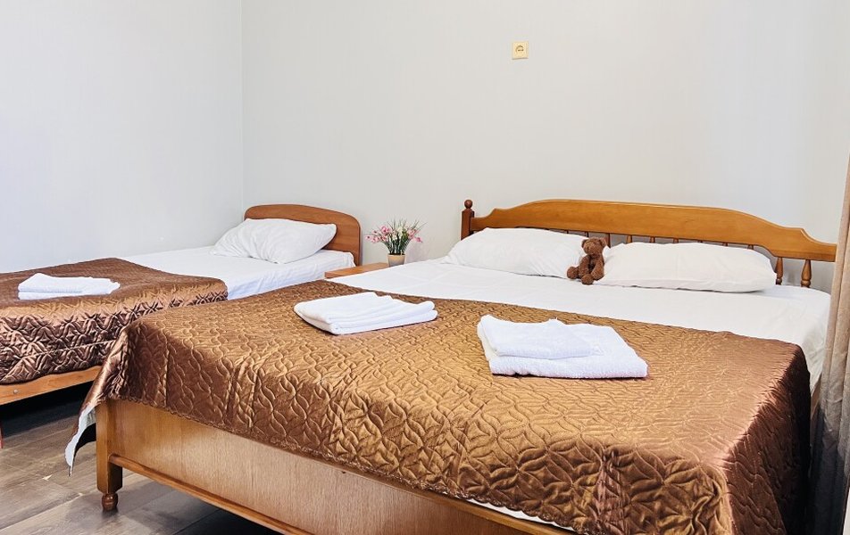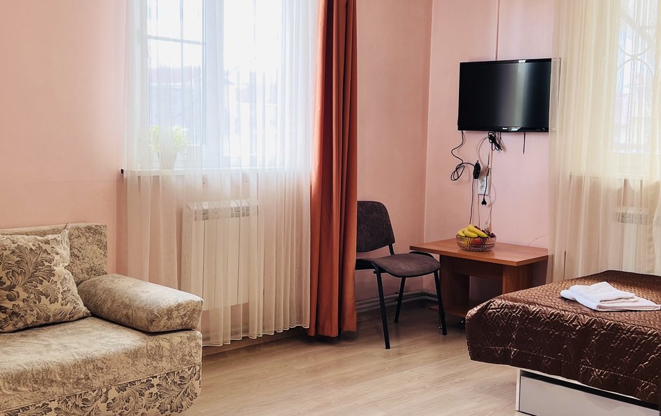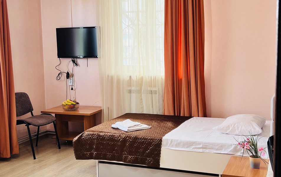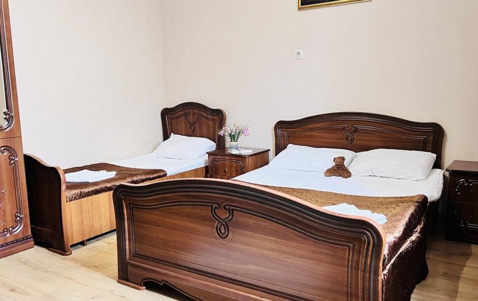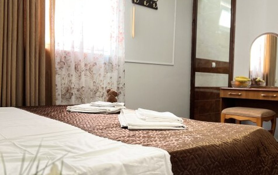 Комфорт 3-местный Количество комнат: 1-комнатный Тип номера: Комфорт Вид из номера: на город: на двор Кол-во номеров: 3 Кол-во основных мест: 3 Площадь (кв. м): 18 Мебель: кровать двуспальная, кровать односпальная, шкаф Оборудование: мини-холодильник, сплит-система, телевизор Санузел: с ванной, фен Сервис: Wi-Fi бесплатно, уборка номера