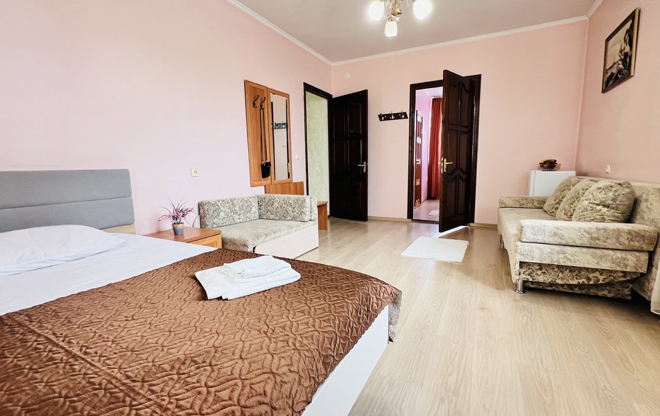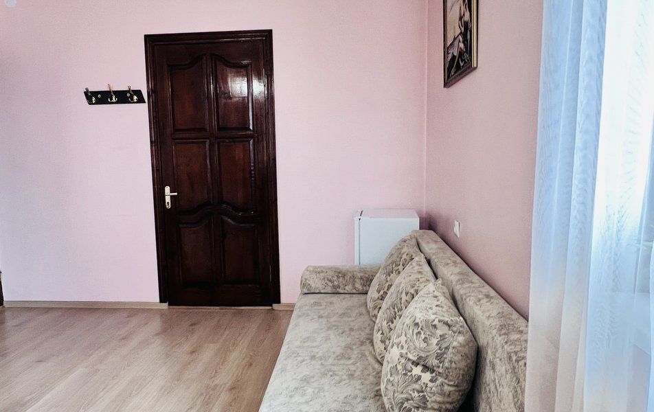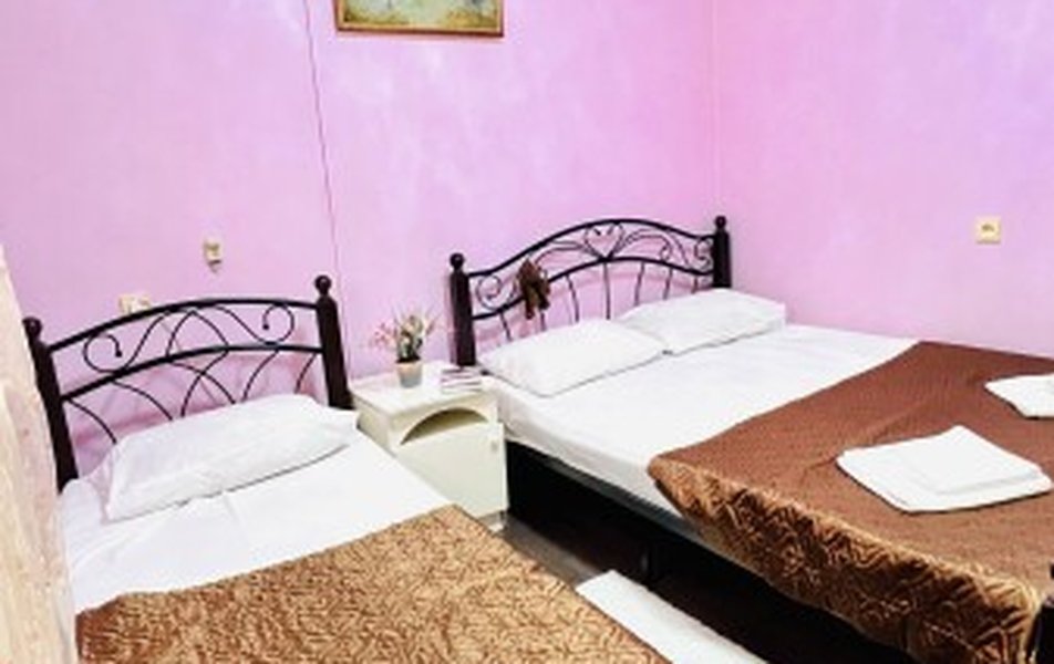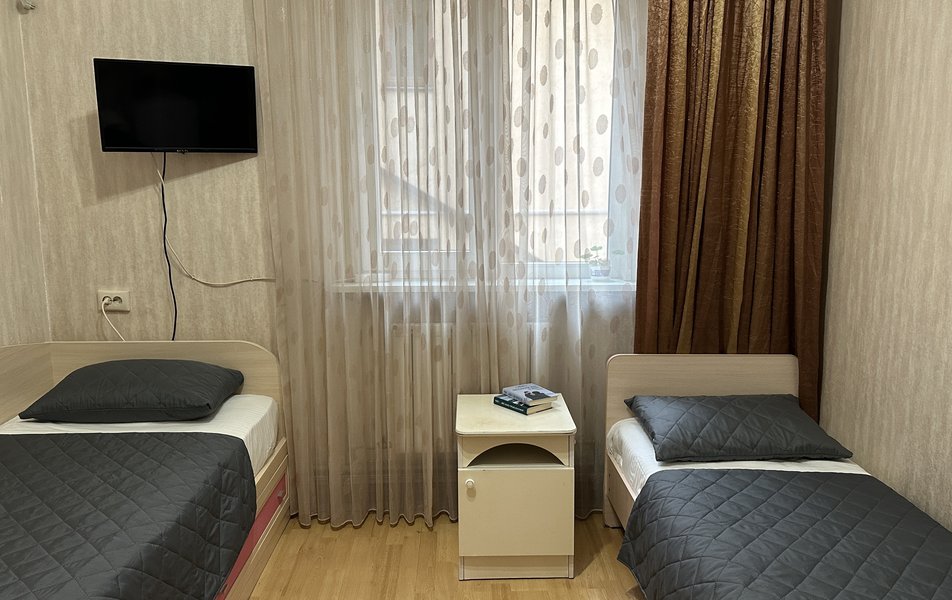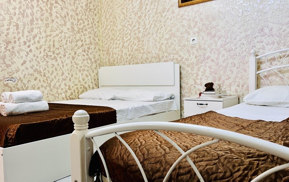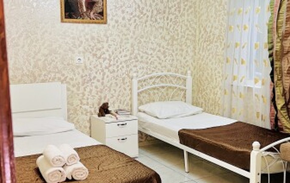 Семейный 5-местный 2-комнатный Количество комнат: 2-комнатный Тип номера: Семейный Вид из номера: на город: на двор Кол-во номеров: 2 Кол-во основных мест: 5 Площадь (кв. м): 30 Этаж: 2,3 Мебель: диван раскладной, кровать двуспальная, кровать односпальная, прикроватная тумбочка, шкаф Оборудование: мини-холодильник, сплит-система, телевизор Санузел: с ванной, фен Сервис: Wi-Fi бесплатно, уборка номера