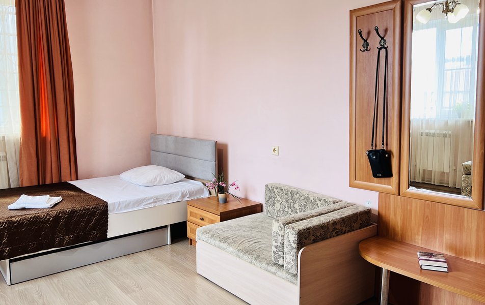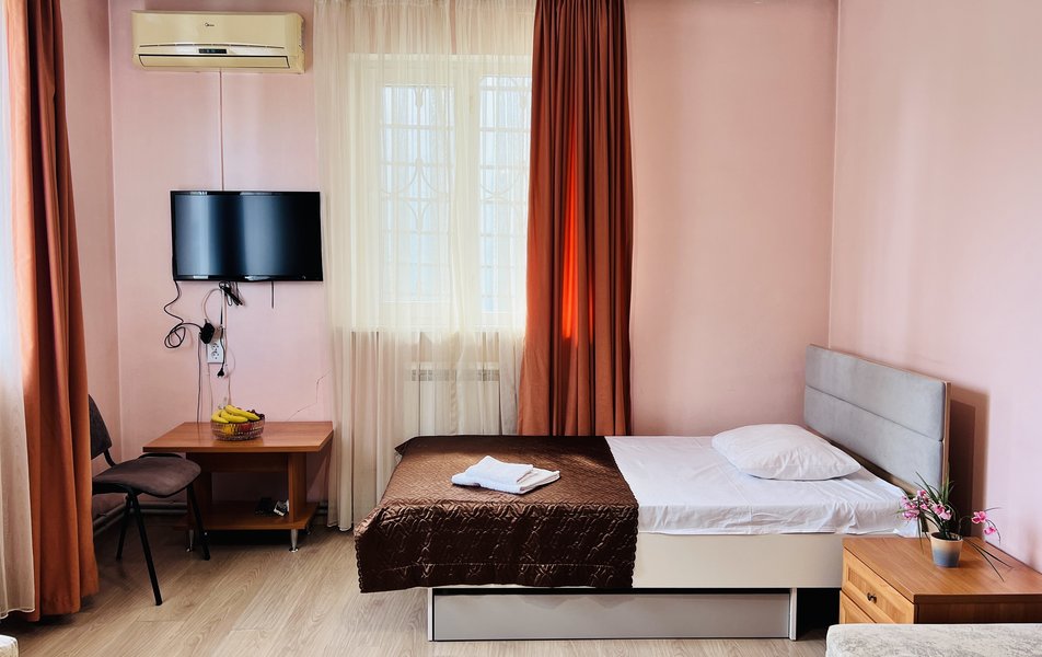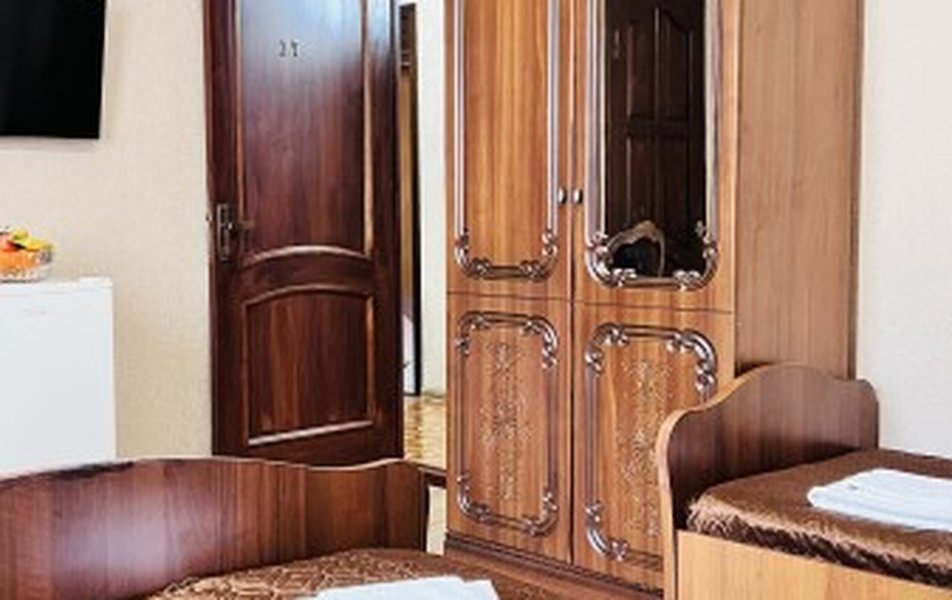 Стандартный 2-местный Количество комнат: 1-комнатный Тип номера: Стандартный Вид из номера: на двор Кол-во номеров: 6 Кол-во основных мест: 2 Площадь (кв. м): 12 Мебель: кровати односпальные /одна двуспальная кровать, прикроватные тумбочки, шкаф Оборудование: мини-холодильник, сплит-система, телевизор Санузел: с душем, фен Сервис: Wi-Fi бесплатно, уборка номера
