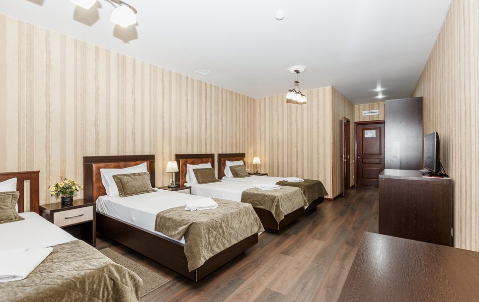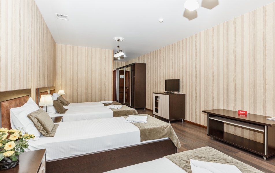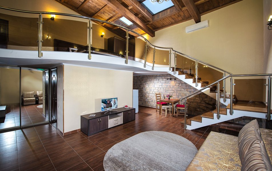 Мы провели новогодние каникулы в этом отеле и не пожалели! в отеле прекрасный спорт зал с тренажерами, утром - великолепные, сытные завтраки, после которых кушать не хотелось до ужина. Мы увлекаемся горными лыжами, поэтому, после завтрака сразу в машину и на "Роза- стадион"-45мин.езды...Мы снимали 2-х уровневый люкс, халаты, тапочки, мини-кухня -все для вас! Белье менялось ежедневно, уборка ч/з день. Респект хозяину отеля и его команде! в отеле есть великолепная баня - просто супер! Следующие новогодние каникулы будем планировать только здесь!