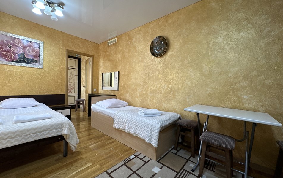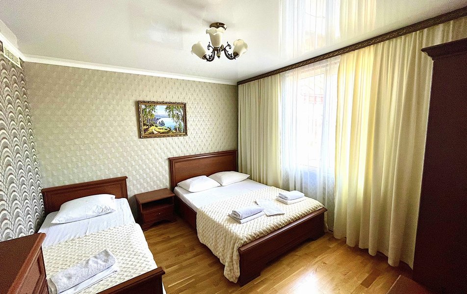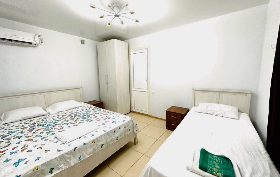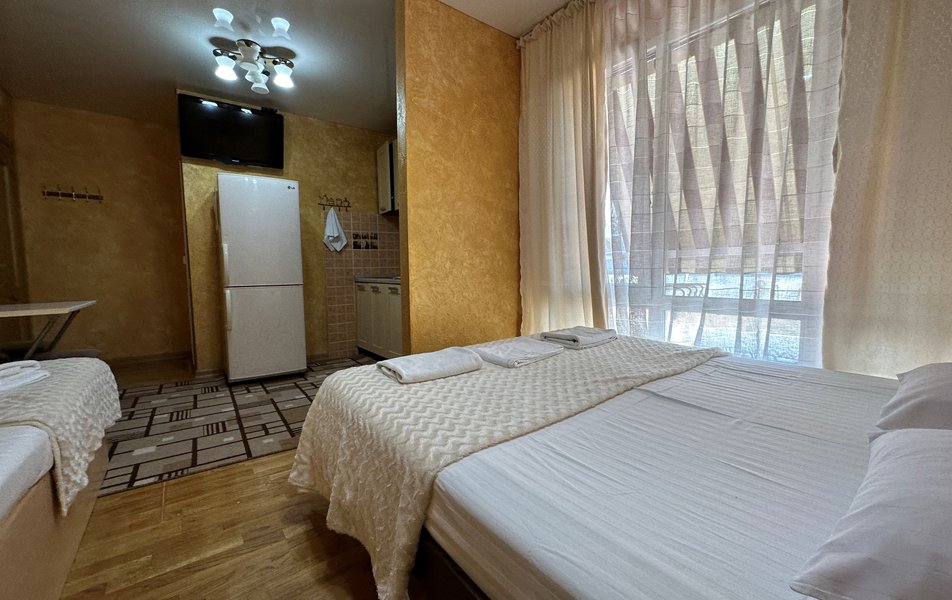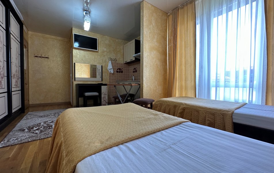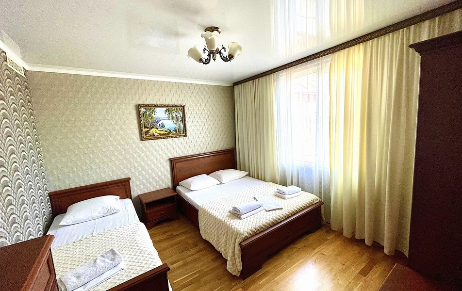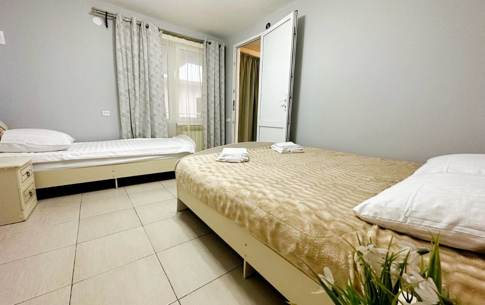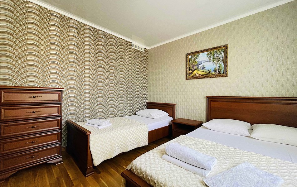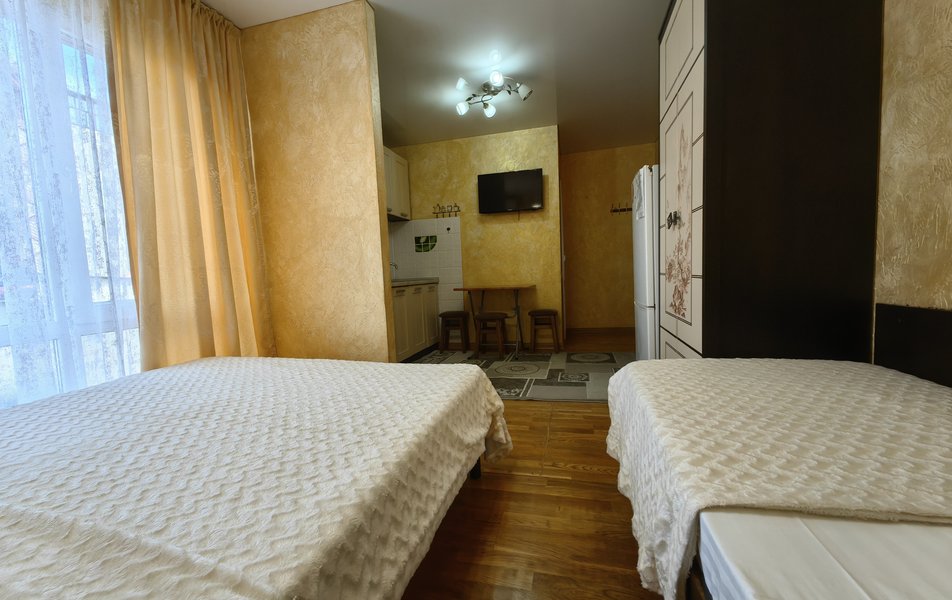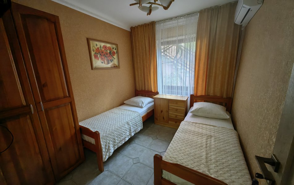 · Были в начале октября 2019 вдвоем с женой. Плюсы: Отношение хозяев отличное. Обеспечили доставку из аэропорта и обратно за умеренную плату. Пользовались водой из под крана после кипячения. Все живы и здоровы. · Многое не понравилось. 1. Выбирал место проживания по логистическим соображениям. Выбрал именно этот адрес (Киевская 20) из-за соотношения цены и пешеходной доступности вокзала Адлер - 20 минут ходьбы. Однако, когда уже прошёл срок бесплатной отмены брони, позвонила хозяйка и сообщила, что жить мы будем не на Киевской 20, а на ул. Чкалова - за 5 автобусных остановок от вокзала. Пешком уже около 4 км - не находишься. Поскольку уже второй раз я в Адлере проживал не в том месте, которое бронировал, очень рекомендую всем путешественникам настоятельно интересоваться у хозяев жилья точным адресом местожительства. Видимо, в Адлере так принято: селить не туда, где было забронировано. 2. Номер "делюкс" оказался с изъяном. Из-за протекающей душевой кабины разбух низ двери в санузел и та открывалась и закрывалась с усилием, цепляя за плитку пола. Из-за протекающей кабины в санузле после каждого приёма душа образовывалась лужа. В связи с этим горничная держала в санузле тряпку, дабы устранять проблему с лужей. В связи с повреждением душевой кабины в номере была очень высокая влажность. В октябре, при температуре воздуха 20-23 днем, это не критично. Но тем, кто будет в этом номере проживать при температуре выше 30 градусов, я не завидую.