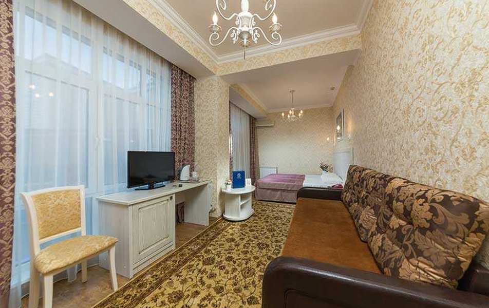 Интерьер соответствует фото. В номере чисто, что для меня как аллергика важно. Уборка каждый день. Персонал очень приветлив и вежлив. Попали в самые холода - мартовские праздники, но в номере очень тепло. Предоставлено дополнительные: одеяло, подушка и толстый плед. Каждый день приносили минеральную воду "Горячий ключ". Стабильный интернет. Отличный сервис! Качественное обслуживание! Моя благодарность!