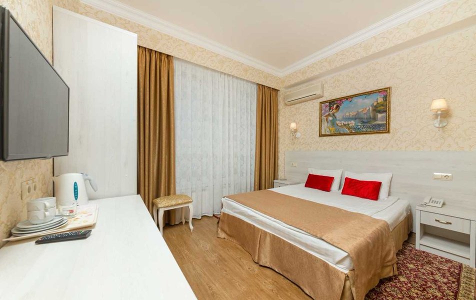 Прекрасный отель. Номер уютный, укомплектованный всем. Уборка ежедневная. Панорамные окна. Персонал очень приветливый. Находится в центре, в пяти минутах ходьбы от пляжа и аквапарка. Внутри есть кофейня, где можно позавтракать. В отеле есть лифт, если кому-то важно.
