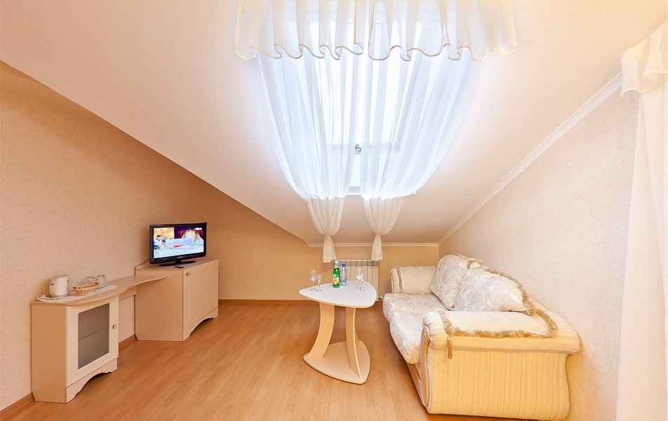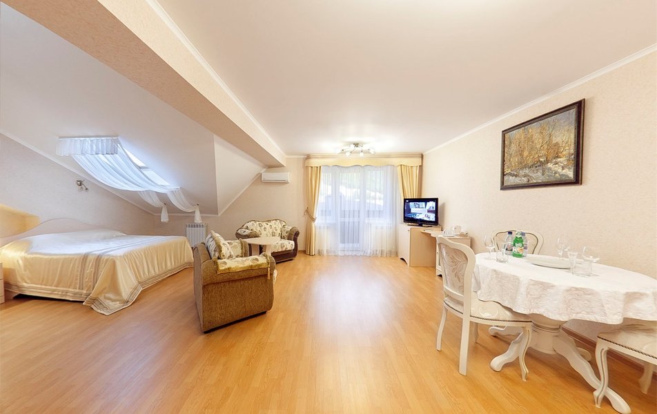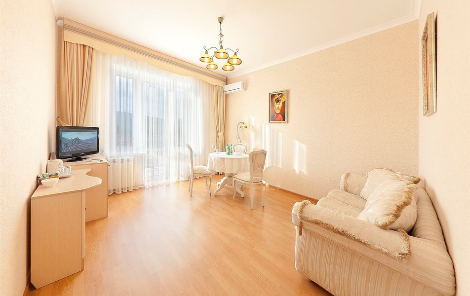 Люкс 3-местный 2-комнатный Количество комнат: 2-комнатный Тип номера: Люкс Дополнительное место: раскладной диван Кол-во доп. мест: 2 Кол-во номеров: 4 Кол-во основных мест: 3 Площадь (кв. м): 48 Балкон: с мебелью Мебель: вешалка, диван раскладной, зеркало, кровать двуспальная, прикроватные тумбочки, стол, столик журнальный, стулья, шкаф, шкаф для посуды Оборудование: гладильная доска, набор посуды, пляжные полотенца, сейф, сплит-система, телевизор ЖК, утюг, холодильник, чайный набор посуды, электрочайник Санузел: с душевой кабиной, тапочки, туалетные принадлежности, фен, халат Сервис: Wi-Fi бесплатно, смена полотенец: 1 раз в 3 дня, смена постельного белья: 1 раз в 3 дня, уборка номера: ежедневно