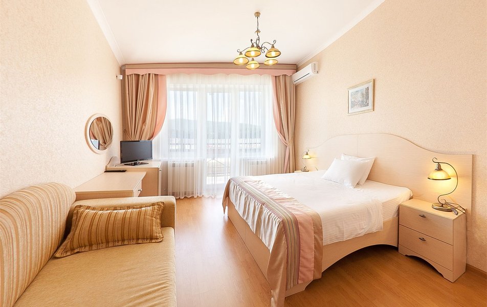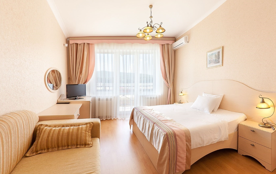 Стандартный 3-местный (с балконом) Количество комнат: 1-комнатный Тип номера: Стандартный Дополнительное место: еврораскладушка Кол-во номеров: 24 Кол-во основных мест: 3 Площадь (кв. м): 24 Балкон: с мебелью Мебель: зеркало, кровать двуспальная, прикроватные тумбочки, стол, стул, шкаф Оборудование: пляжные полотенца, сейф, сплит-система, телевизор ЖК, холодильник Санузел: с душем (поддон), туалетные принадлежности Сервис: Wi-Fi бесплатно, смена полотенец: 1 раз в 3 дня, смена постельного белья: 1 раз в 3 дня, уборка номера: ежедневно