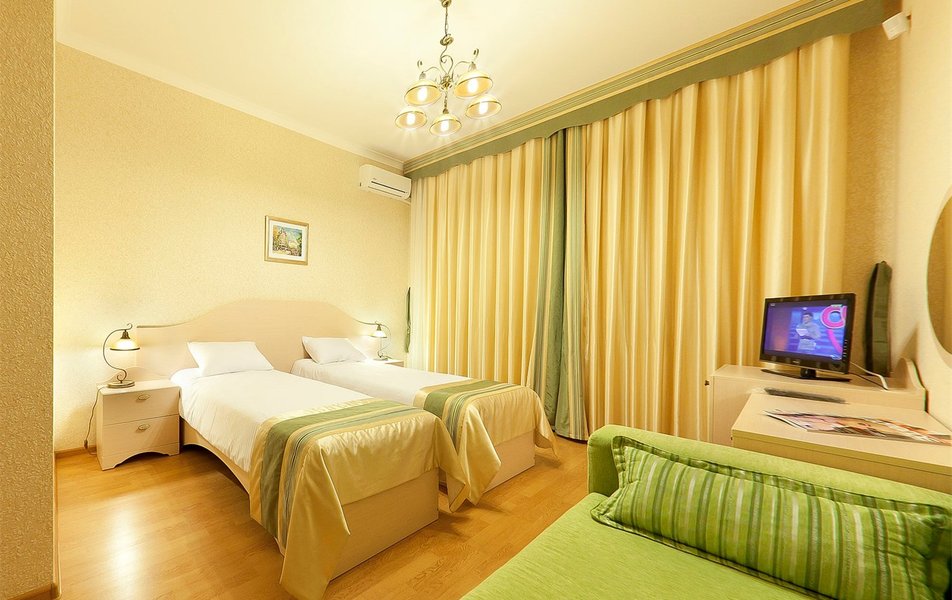 Стандартный 2-местный (без балкона) Количество комнат: 1-комнатный Тип номера: Стандартный Дополнительное место: еврораскладушка Кол-во доп. мест: 1 Кол-во основных мест: 3 Мебель: зеркало, кровати односпальные /одна двуспальная кровать, прикроватные тумбочки, стол, стул, шкаф Оборудование: пляжные полотенца, сейф, сплит-система, телевизор ЖК, холодильник Санузел: с душем (поддон), туалетные принадлежности Сервис: Wi-Fi бесплатно, смена полотенец: 1 раз в 3 дня, смена постельного белья: 1 раз в 3 дня, уборка номера: ежедневно