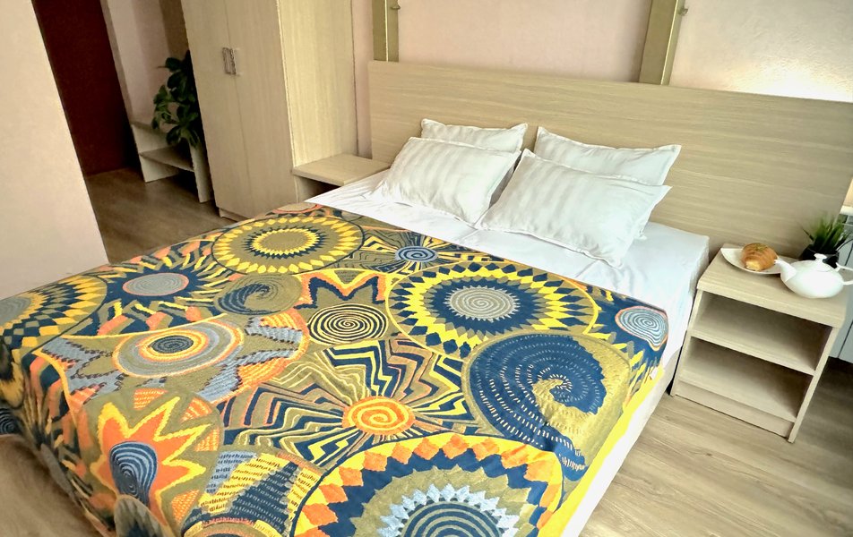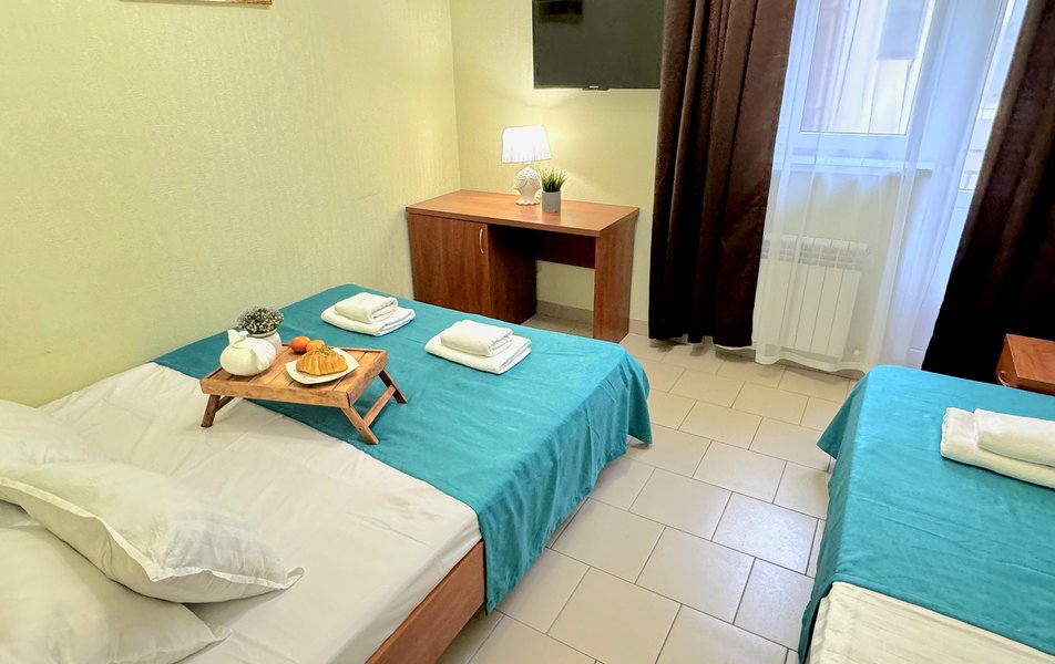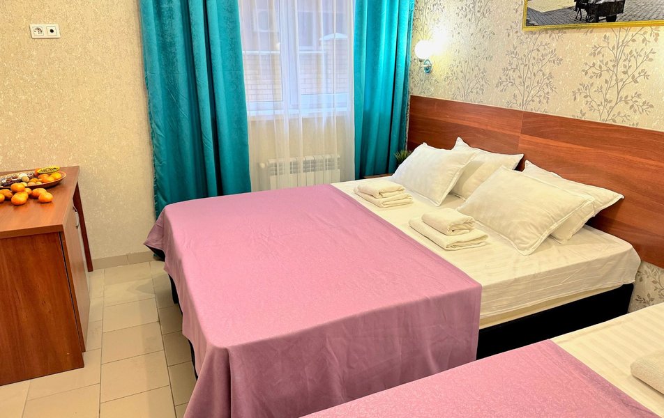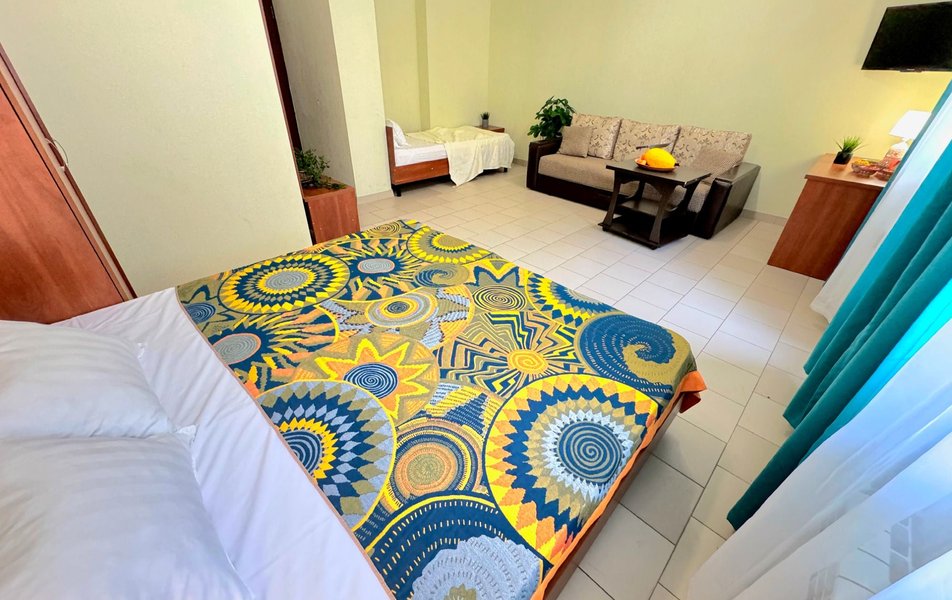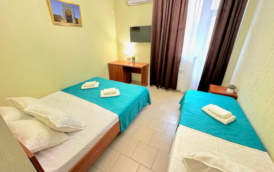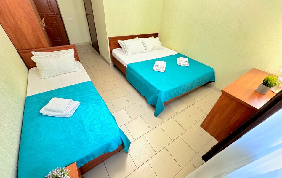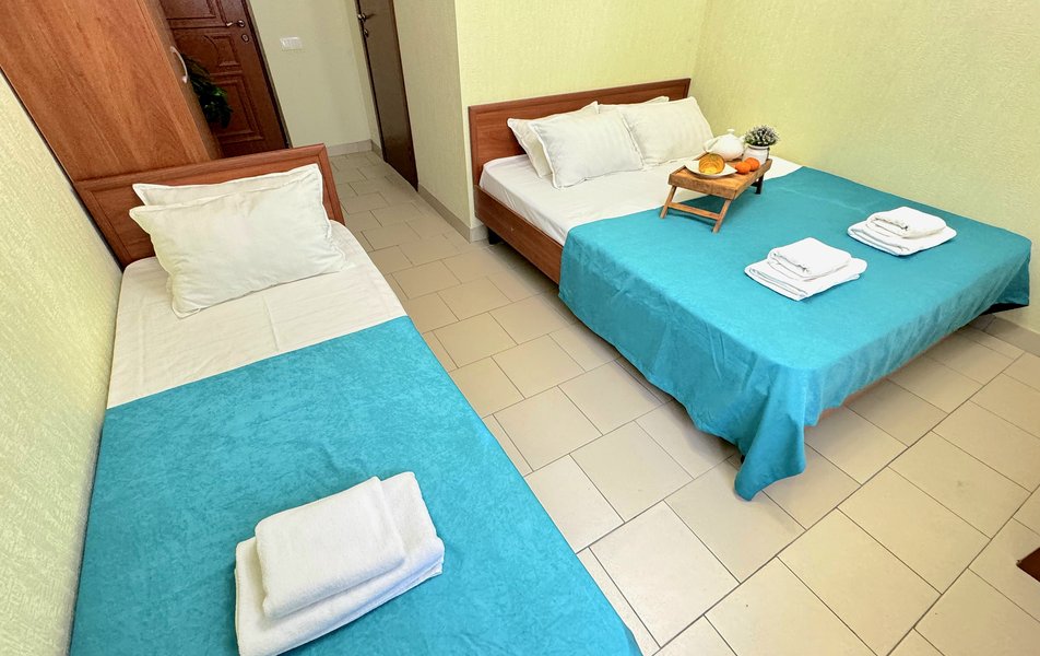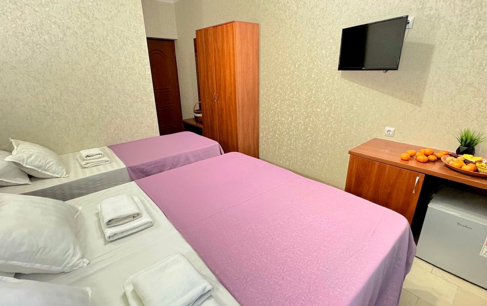 Номера маленькие- пожили в трехместном и двухместном номере. Не убирали номер ни разу, мусор не выносят. Слышимость ужасная, с утра будят звуки из общего коридора, народу живет куча- как в общаге. Территория отеля маленькая, нет зоны отдыха- только несколько шезлонгов у бассейна. В бассейне вода мутная- находится прямо у решётчатого забора- все прохожие(которых множество) смотрят на тебя, проходя мимо. Отсутсвует кухня, мангальная зона, есть зал со столами и микроволновкой, что бы придти со своей едой. Парковки нет. Есть подальше в другом отеле, платная 250р/сутки
