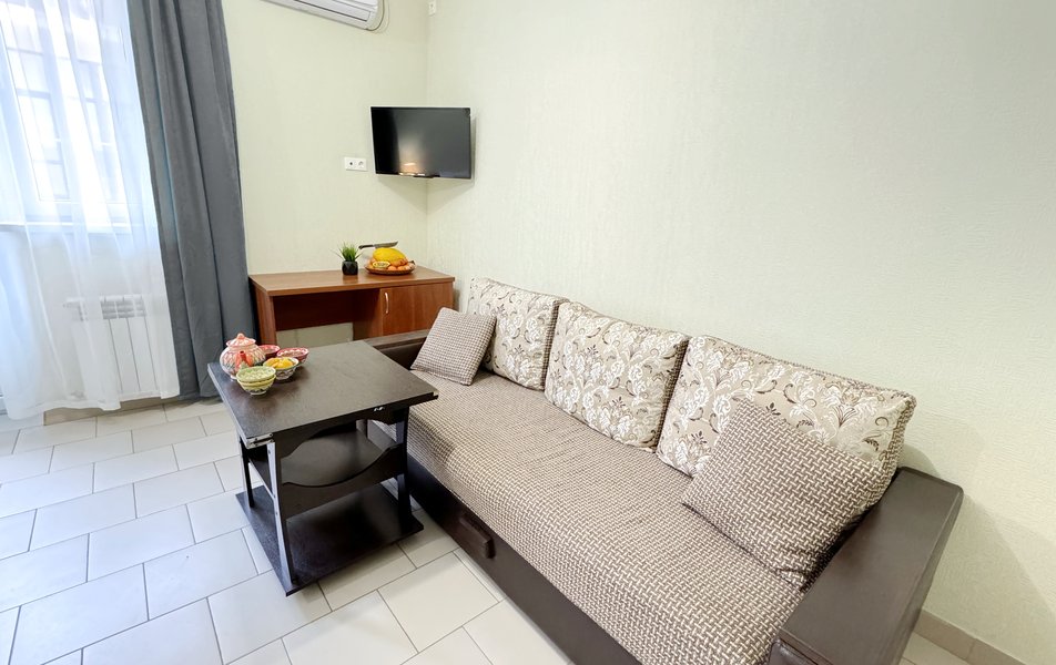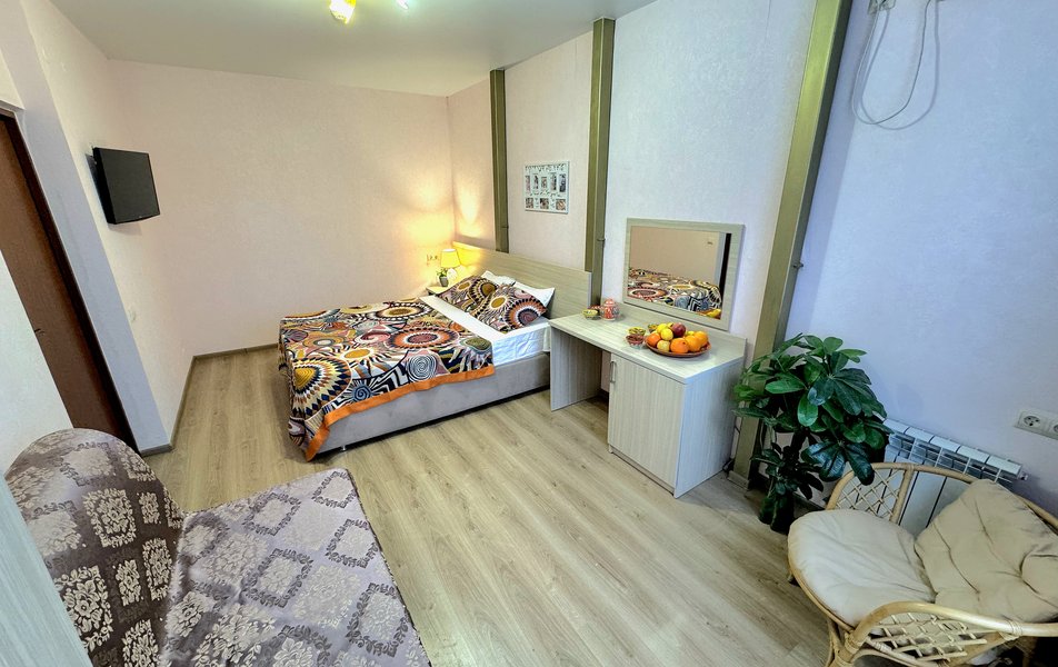 Были с подругой в этом отеле. С 27.07 по 1.08 Если по общим впечатлениям, то всё понравилось. Девочки и мальчики в столовой огромные молодцы, всё быстро убирали, всегда помогали и были очень доброжелательные. В столовой выбор не большой, но вкусно готовят, всегда было, что поесть и попить. Девушка на ресепшене, которая молоденькая и светленькая очень доброжелательная и всегда помогала. А теперь о том, что не понравилось: Женщина на ресепшене не знаю как зовут, совсем не знает, что такое клиентоориентированность, которая подпортила нам все впечатление об этом отеле под конец отдыха. Наш поезд был вечером, выселились в 11:00 (к этому претензий нет- это стандарт) дальше попросили оставить вещи при этом не просили нести ответ вечность за вещи, просто, чтобы они постояли там хотя бы до 19.00-20.00 чтобы не носить вещи с собой. На, что женщина с недовольным видом ответила, что можно оставить только до 18.00, остальное за отдельные плату за сутки. Много раз были в разных отелях и гостевых домах города Анапы и других Городов и первый раз требовали деньги за, то, чтобы чемодан просто постоял в коридоре. А это на секундочку 4.000 рублей. Не понятно, как связан чемодан и приезд других гостей, ведь мы не просили предоставить нам питание в этот день или оставить нам номер. А просто просили оставить вещи. В итоге, дама с недовольным и хамским выражением лица в 18.00 встретила нас и попросила уйти. Мы ушли. В 2 ждать с тяжеленными чемоданами наш поезд. Никакой доброжелательности от этой дамы не было, даже на протяжении всего отдыха, когда она попадалась всегда недовольная и отвечала сквозь зубы, если ненавидишь людей, не нужно работать в сфере связанной с этим. Хотя, все остальные сотрудники очень любезные и внимательные. Испортила все впечатление.