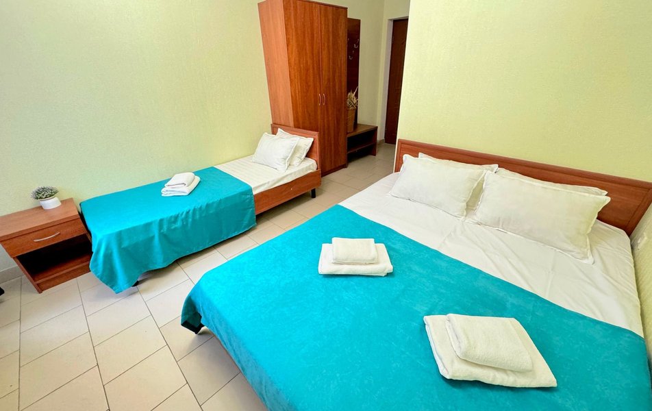 Были в отеле в начале июня 2024, в 4х местном номере (3взрослых 2 детей). Всё очень понравилось. Номер чистый, полотенца нам меняли каждые 3 дня, а так же если нужны были полотенца на пляж, то тоже выдавали. Бассейн чистый, теплый. Народу было не так много или не заметно. Кормили хорошо, вкусно, домашняя еда и детям и взрослым можно было выбрать, что покушать. До моря идти 3 минуты, пляж чистый, море не глубокое (огромный плюс для детей). К сожалению уже цвело, не совсем было приятно купаться в этом, но если был шторм вечером, то утром море было уже чистое и можно было спокойно купаться, к тому же сильно выручал бассейн. Единственное, что не очень понравилась это анимация для детей, хотелось бы чтобы "аниматоры" были "поживее" и более активными, а то порой думали, что не они детей, а дети их развлекают. Ну и хотелось бы, хотя бы после обеда, чтобы играла фоновая музыка. В общем кто с каким настроем едет в этот отель, тот и с таким впечатлением останется о нём. А так всё отлично, обязательно вернемся ещё раз.