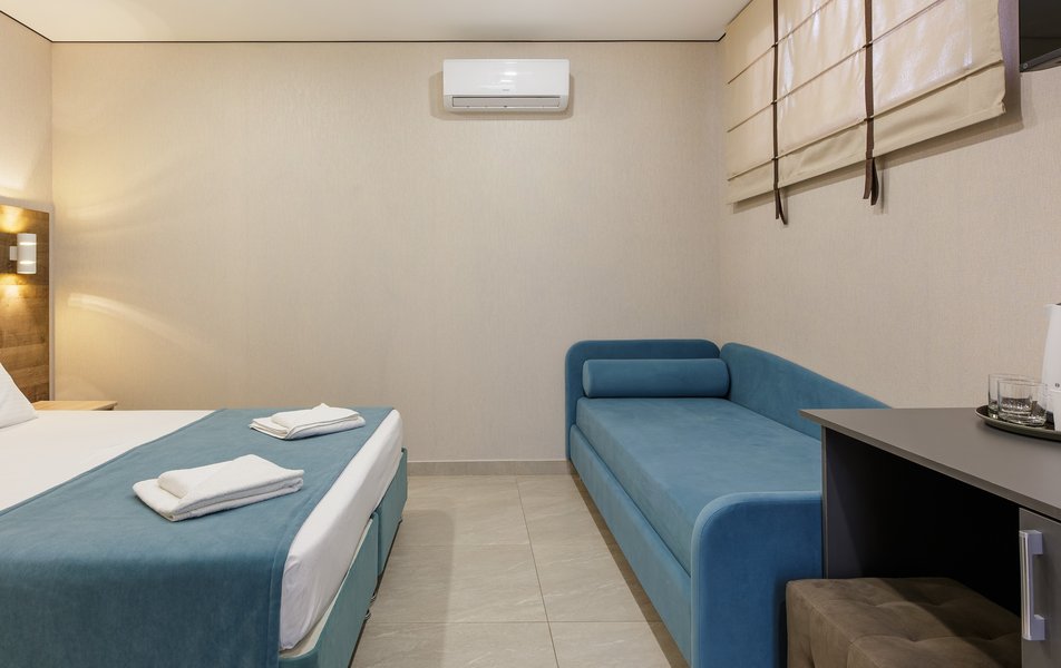 Стандартный 2-местный Количество комнат: 1-комнатный Тип номера: Стандартный Кол-во доп. мест: 2 Кол-во основных мест: 2 Площадь (кв. м): 21 Мебель: вешалка, диван, зеркало, кровать двуспальная, прикроватные тумбочки, стол, стулья, шкаф Оборудование: мини-холодильник, сейф, сплит-система, телевизор Санузел: с душем, туалетные принадлежности, фен Сервис: Wi-Fi бесплатно, смена полотенец, смена постельного белья, уборка номера
