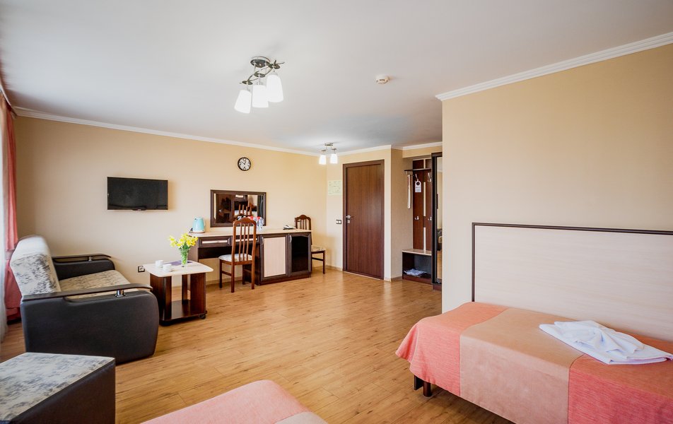 Санаторий ничего, но услуги службы размещегия отвратительные. В описании есть трансфер, встречаем, приезжайте. На самом деле при заказе отказ, платников не встречаем, заранее не заказали, не встречаем, 012 из Москвы, когда встречаем когда нет. Хтя в описании и при прямом звонке, премиум 012 всегда встречаем. ЛОЖ.ЛОЖ.. Так что кто поедет делайте выводы. Жилье- так себе, садишся на унитаз, подпираеш раковину, при подъёме вожно снести раковину. Балконы без разделения, можно проходить в соседгий номер. В столовой если придёш попозже еда, что останется, но голодным не уйдёш.