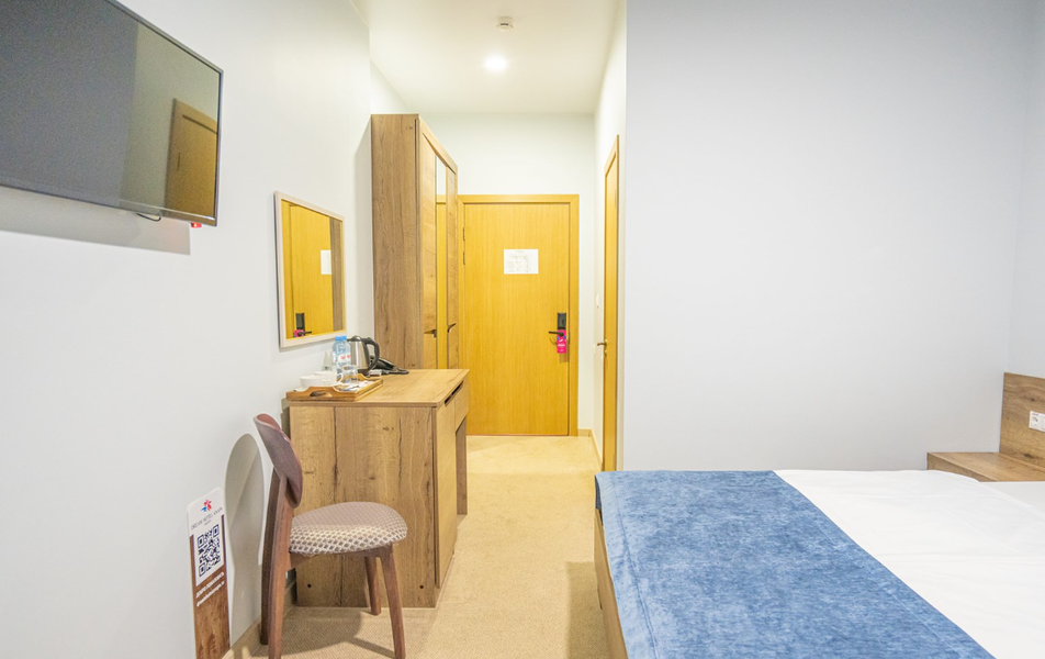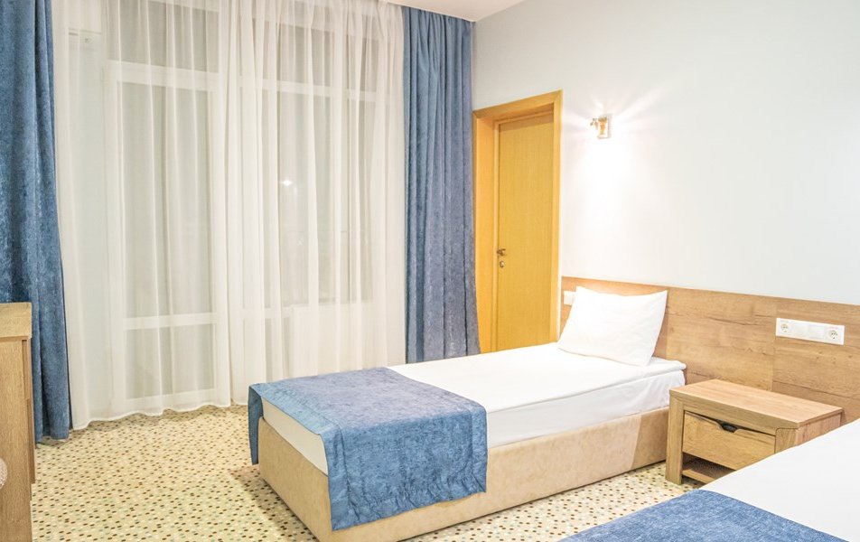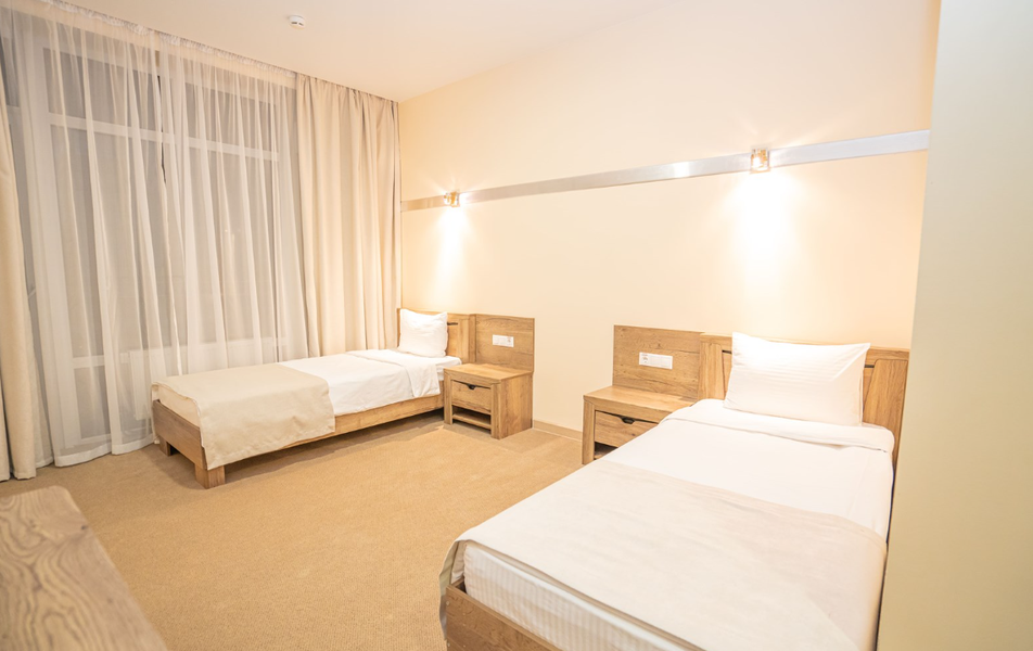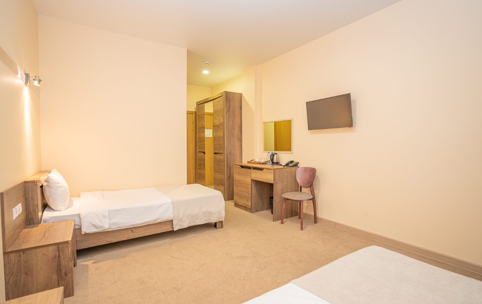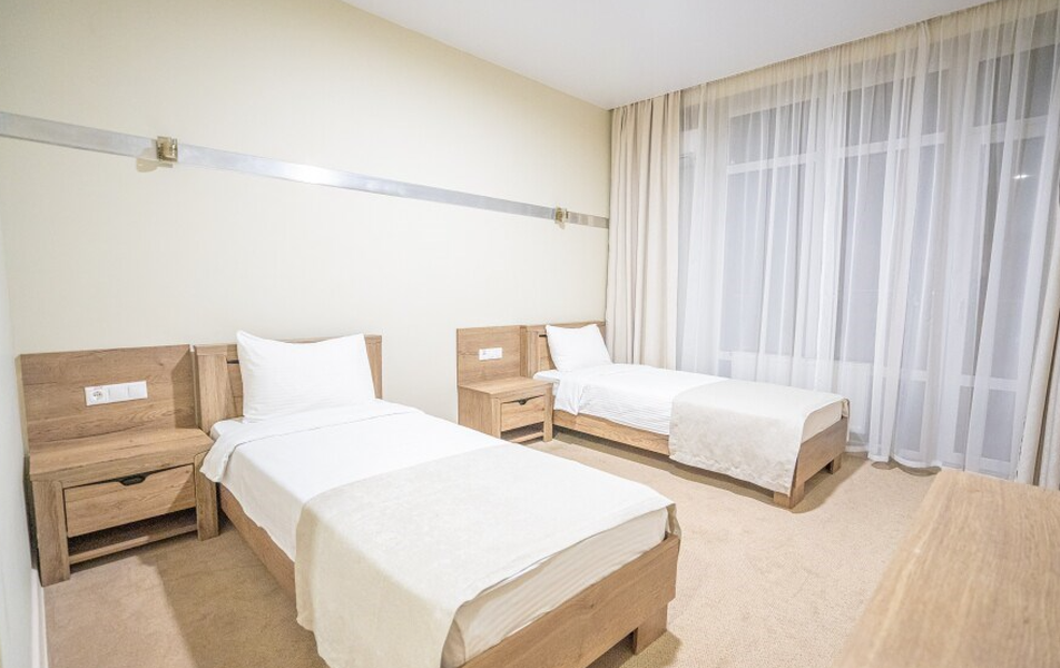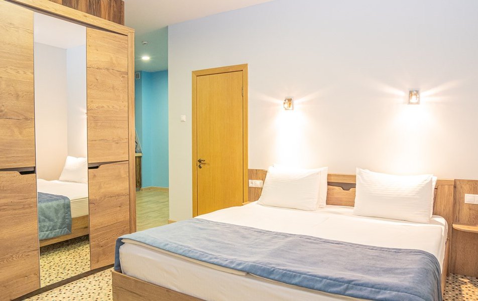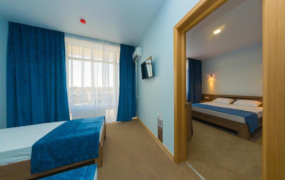 Коннект 4-местный Количество комнат: 1-комнатный Кол-во основных мест: 4 Мебель: вешалка, зеркало, кровати односпальные, кровать двуспальная, прикроватные тумбочки, стол, стулья, шкаф Оборудование: мини-холодильник, сплит-система, телевизор, электрочайник Санузел: с душем, туалетные принадлежности Сервис: смена полотенец, смена постельного белья, уборка номера