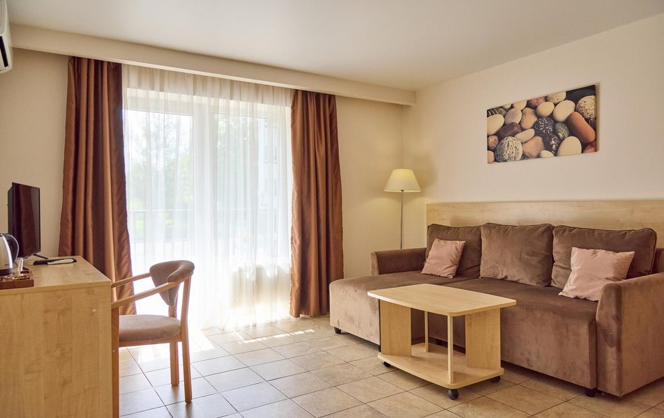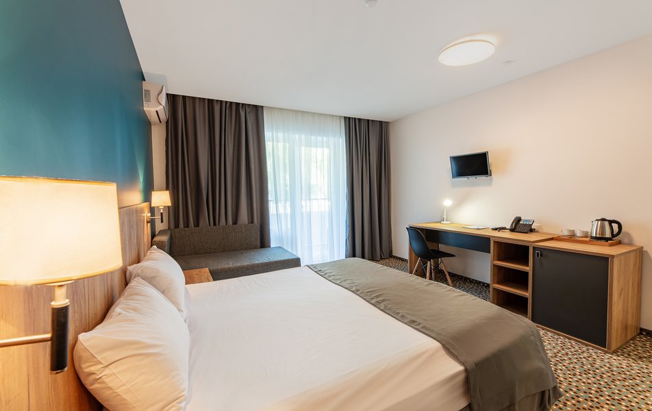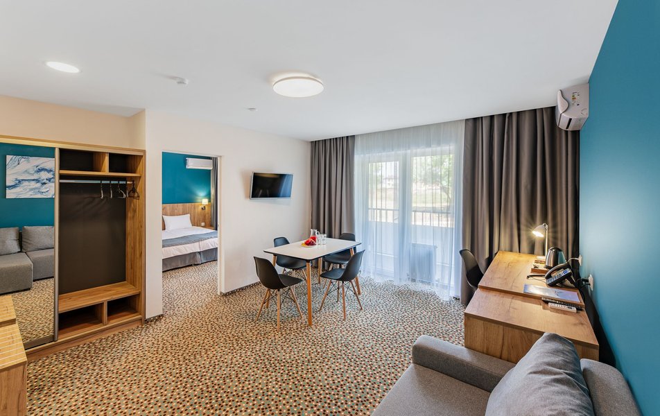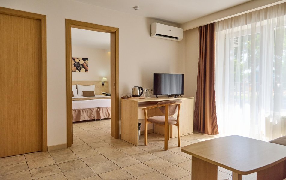 Были в июне 2024 года, расположились в номере категории Джуниор сюиты в 3 корпусе. Номер после капитальной реновации находится в отлично состоянии. Находится в нем очень приятно : мягкий ковролин, кондиционер, свежее постельное белье, холодильник и большой шкаф. Большой балкон, где с легкостью помещаются сушка для белья, а также все надувные круги для пляжа, новая мебель на балконе очень эстетичная и удобная. Территория очень зеленая, чистый бассейн как взрослый, так и детский. Были с ребенком 3 лет, поэтому отдельной оценки заслуживает комфортная детская площадка и детская комната. А так же работа аниматора и программа детских мероприятий. Максимально приветливый персонал, как административный, так и горничные и техники. Видно, что люди улыбаются не ради правил, а по душе. До моря очень близко, пляж замечательный: белый песок, лежаки и тенты. Рекомендуем на все 100 процентов. Это был первый опыт посещения русского юга за много лет, нисколько не разочарованы. Спасибо руководству и администрации отеля, что так внимательно относятся к своим гостям!