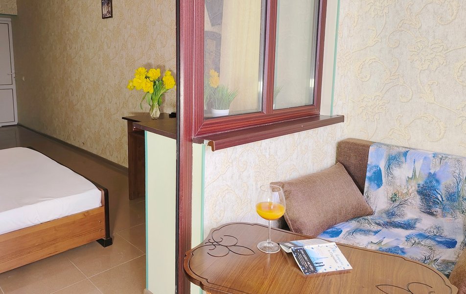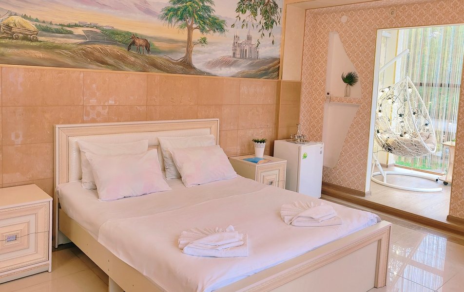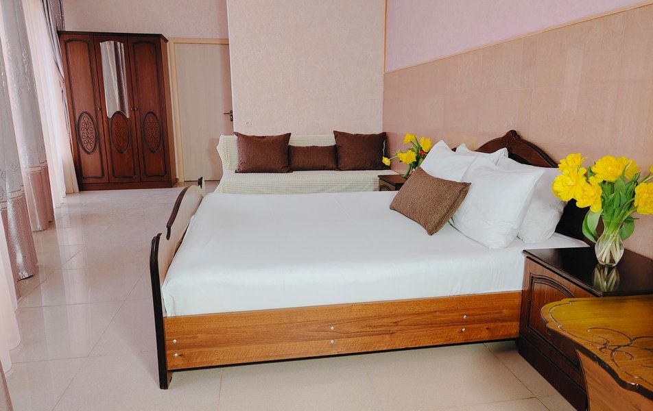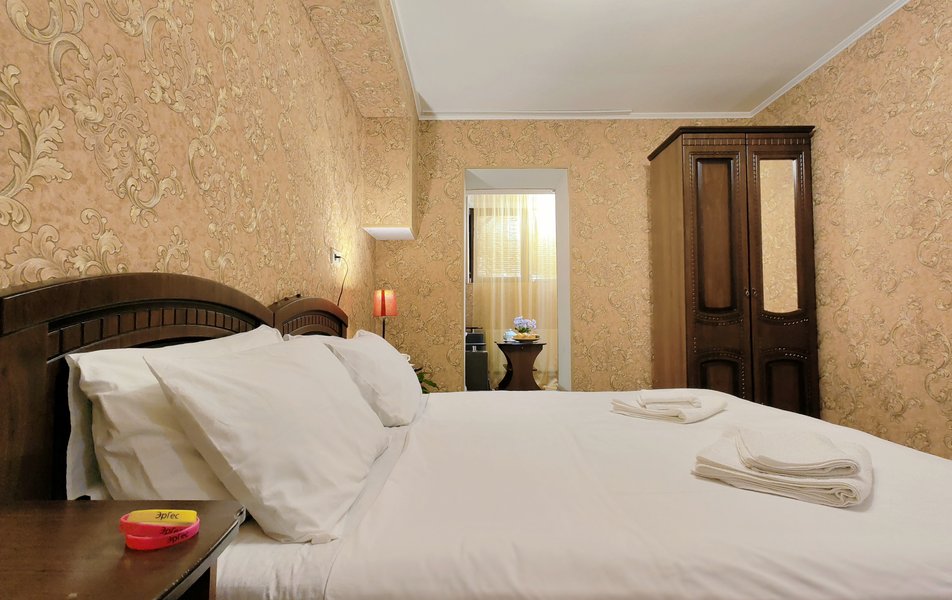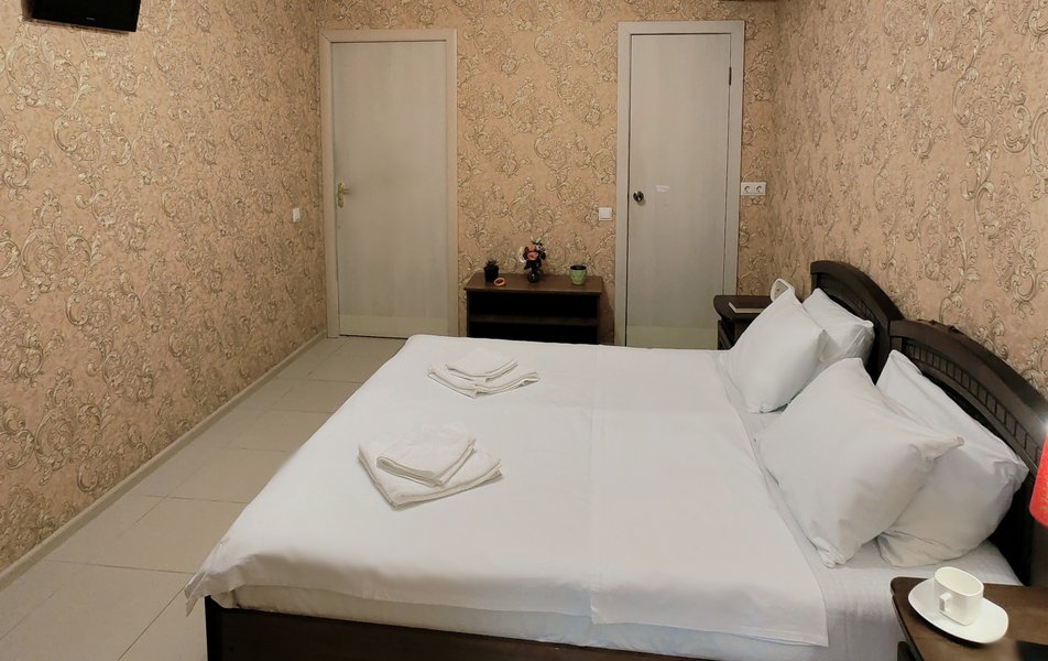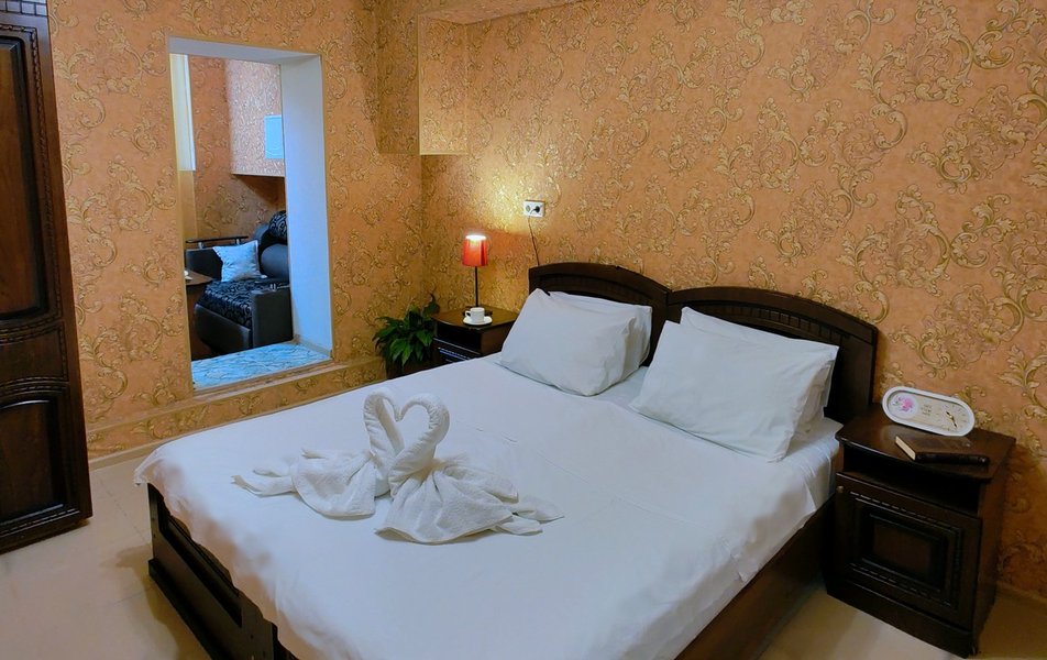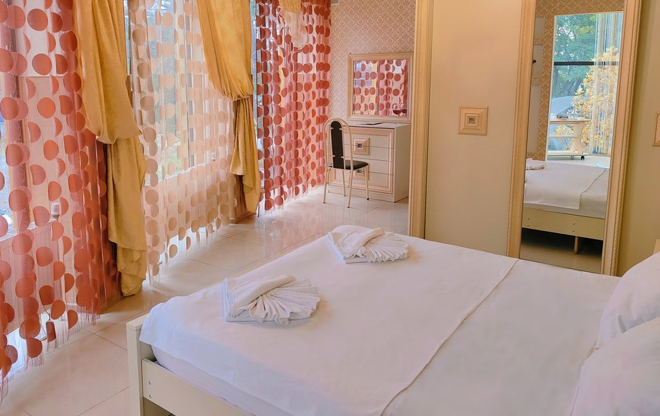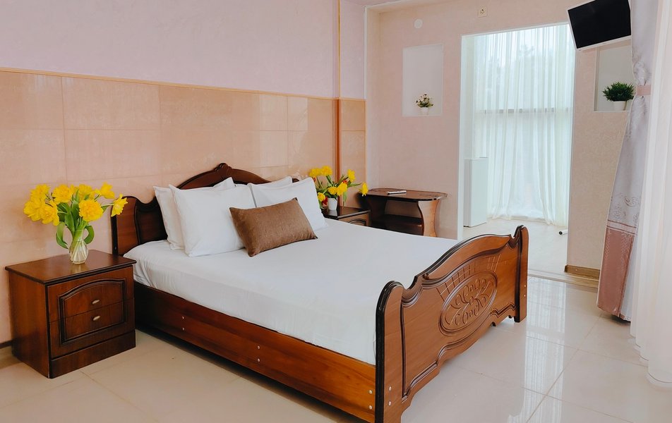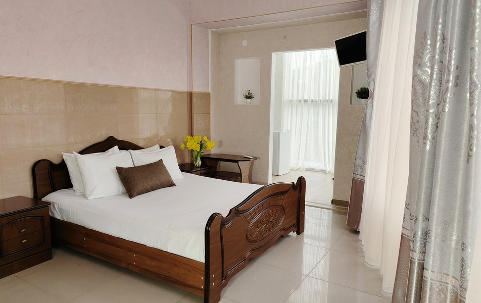Выбирала отель, учитывая наличие 3 звёзд и системы все включено, выбрала самый дорогой номер и хочу предостеречь всех, кто вдруг почитает купленные отзывы с оценкой 5 или вдруг решит, что именно ему повезет. Так вот: не повезет! Атмосфера армянской советской селухи - начиная от персонала заканчивая обстановкой. ОЧЕНЬ ГРЯЗНО! Грязь во дворе, грязь на прибитых на столах клеенках, грязно в номере. В номере невозможно находится из-за тухлого запаха запах канализации. Обои драные, стекла заляпанные лет как 10, мебель затертая советская. Кровать это отдельная песня. Матрасы несколько слоев слипшиеся, белье затертое самое дешёвое. Еда: майонезные салаты. Взяли куриную лапшу: вода и картошка. Сосиски бумажные, овощи нарезаны как скоту. Мы больше не ели ВСЕ включено. Ходили в кафе в городе. Все было настолько грязно, что в бассейн даже не было желания идти купаться. И на весь маленький двор стоит машина хозяина) В общем и целом: очень печальное место. Так же минусом оказалось близость парка аттракционов - все крики и шум были в номере. И до моря не 50 метров, а минут 15 быстрым шагом. НЕ РЕКОМЕНДУЮ!