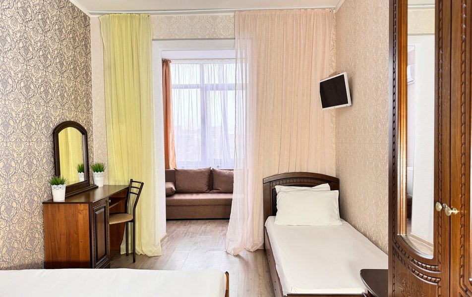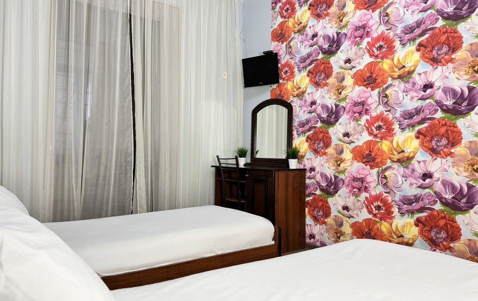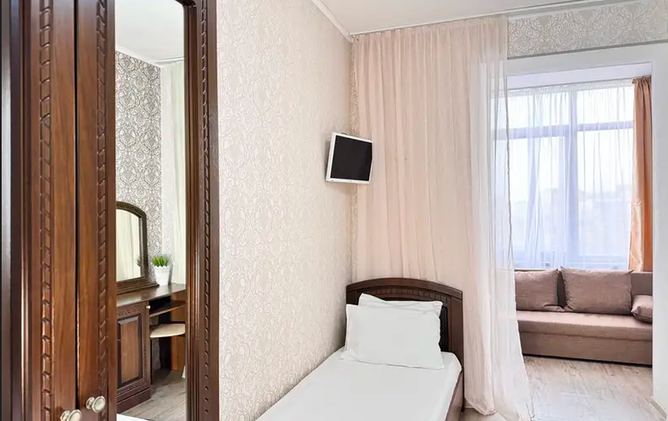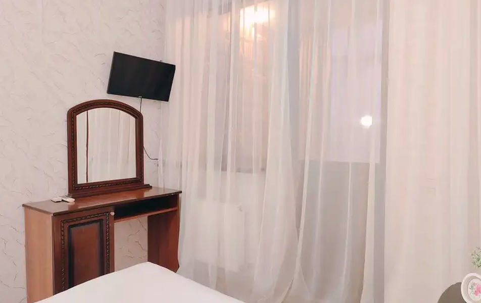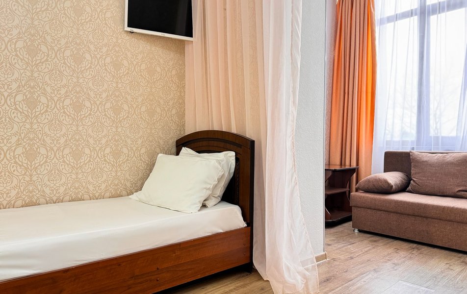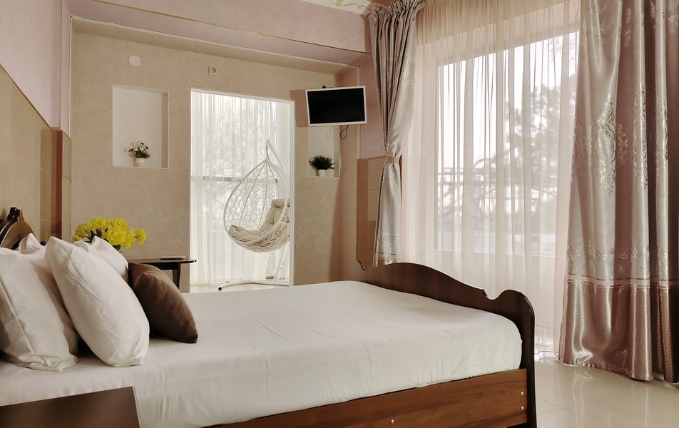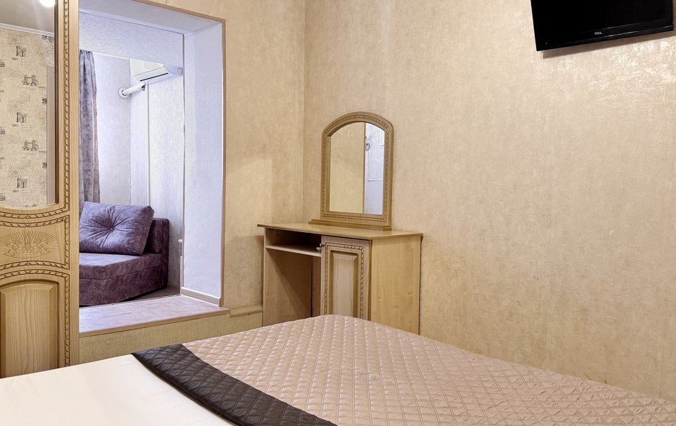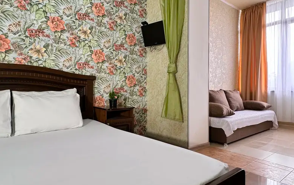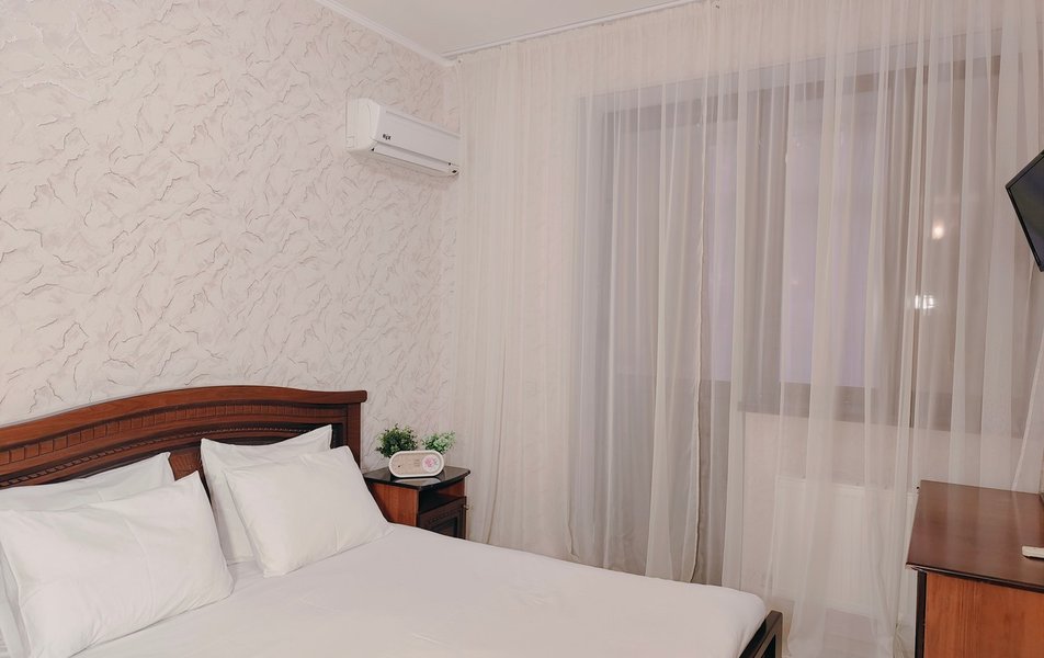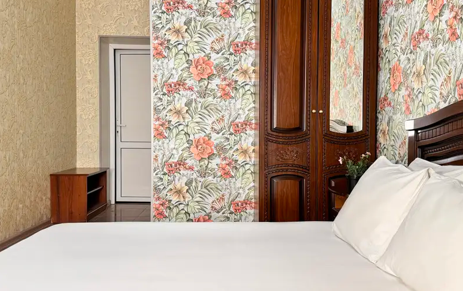 Выбирала отель, учитывая наличие 3 звёзд и системы все включено, выбрала самый дорогой номер и хочу предостеречь всех, кто вдруг почитает купленные отзывы с оценкой 5 или вдруг решит, что именно ему повезет. Так вот: не повезет! Атмосфера армянской советской селухи - начиная от персонала заканчивая обстановкой. ОЧЕНЬ ГРЯЗНО! Грязь во дворе, грязь на прибитых на столах клеенках, грязно в номере. В номере невозможно находится из-за тухлого запаха запах канализации. Обои драные, стекла заляпанные лет как 10, мебель затертая советская. Кровать это отдельная песня. Матрасы несколько слоев слипшиеся, белье затертое самое дешёвое. Еда: майонезные салаты. Взяли куриную лапшу: вода и картошка. Сосиски бумажные, овощи нарезаны как скоту. Мы больше не ели ВСЕ включено. Ходили в кафе в городе. Все было настолько грязно, что в бассейн даже не было желания идти купаться. И на весь маленький двор стоит машина хозяина) В общем и целом: очень печальное место. Так же минусом оказалось близость парка аттракционов - все крики и шум были в номере. И до моря не 50 метров, а минут 15 быстрым шагом. НЕ РЕКОМЕНДУЮ!