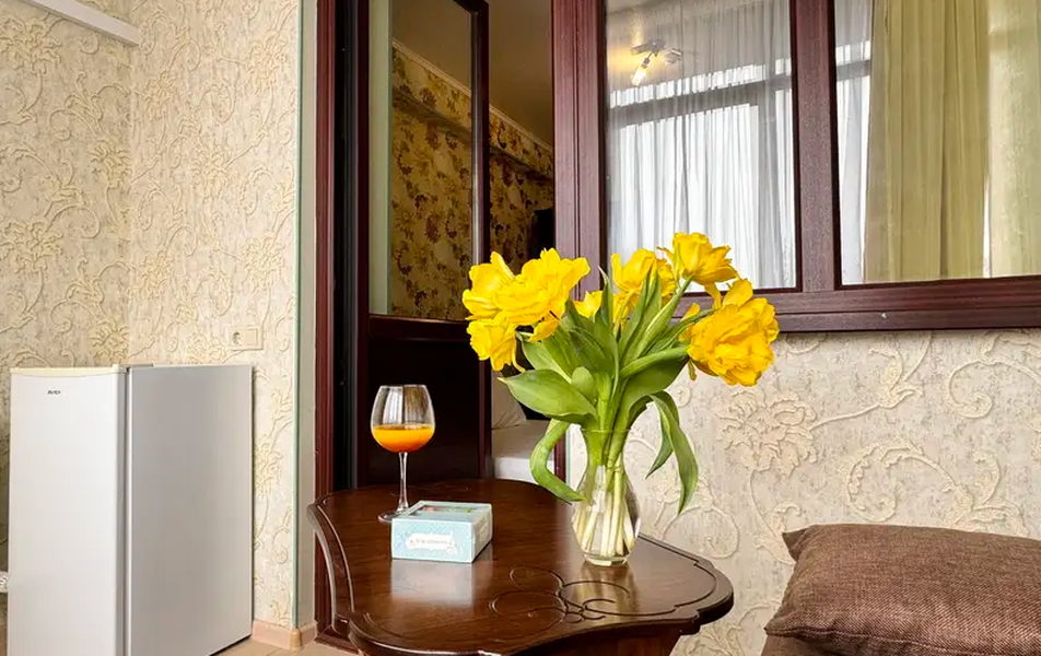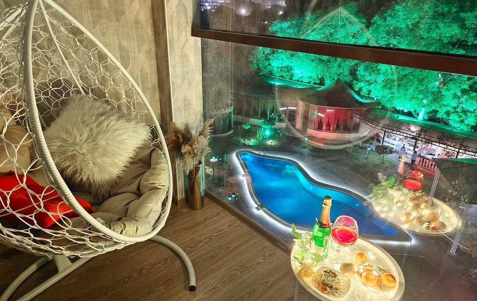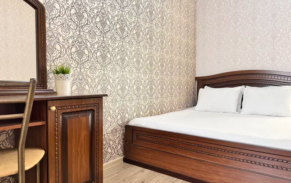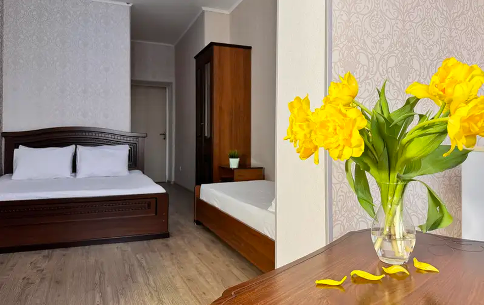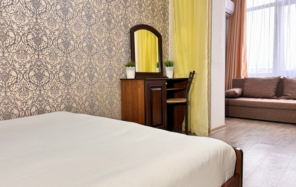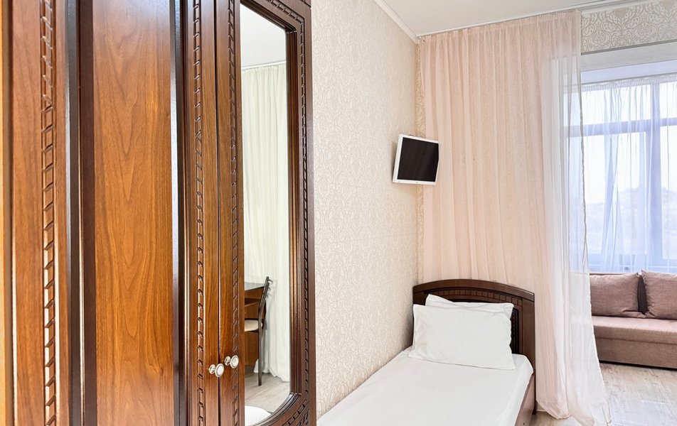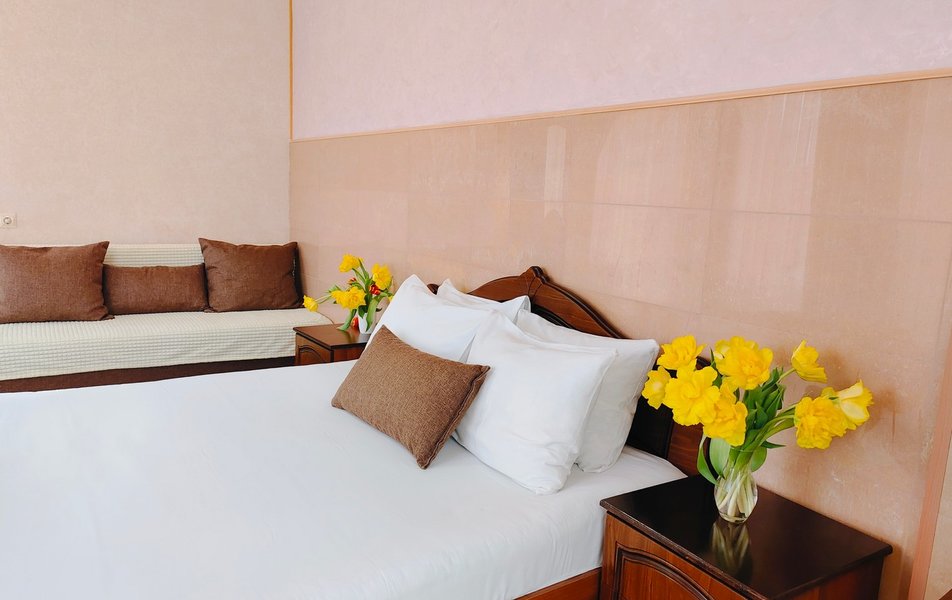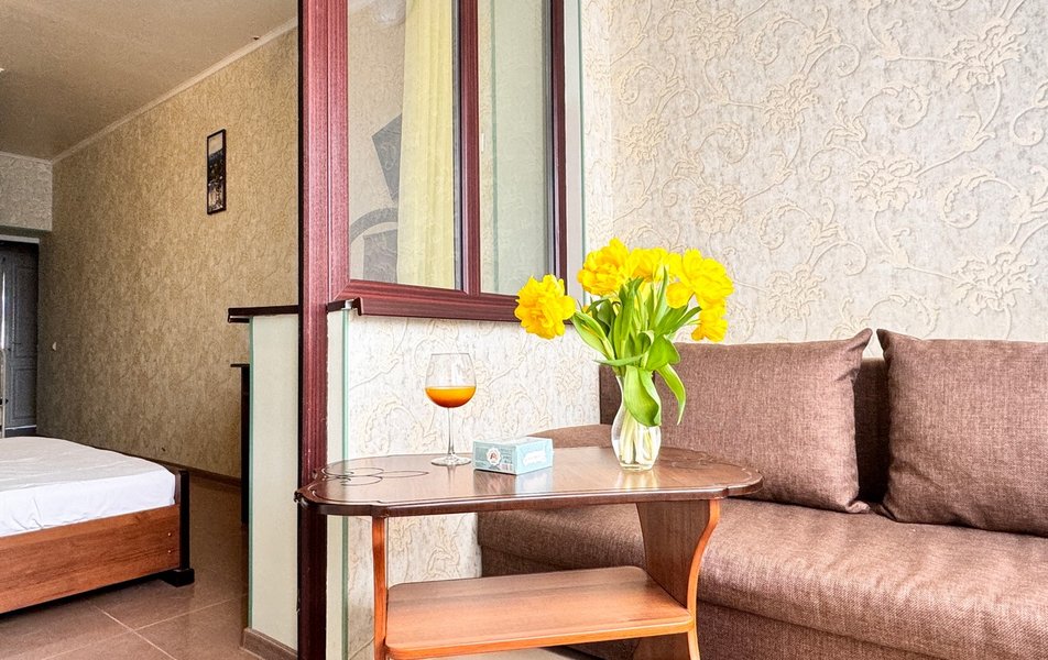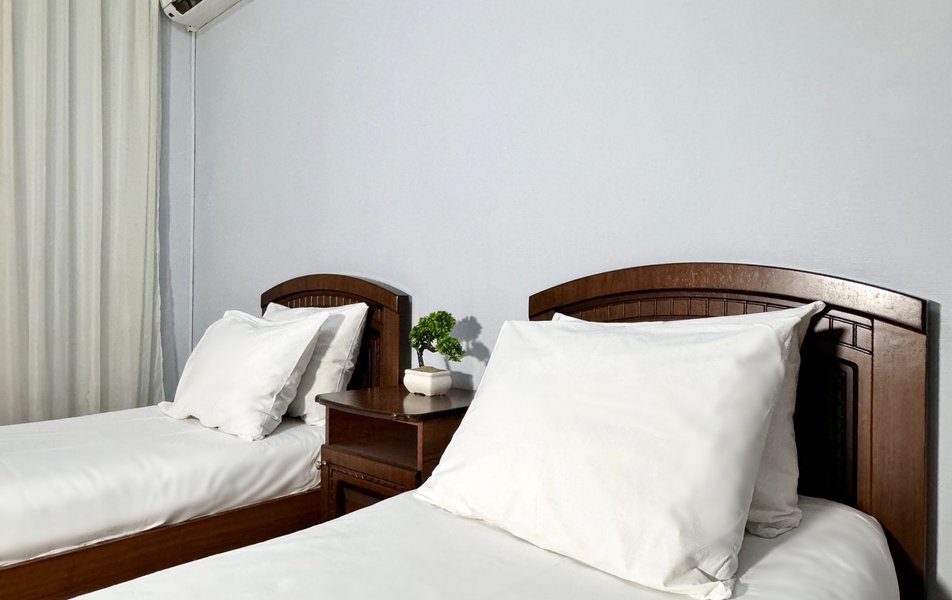 Выбирала отель, учитывая наличие 3 звёзд и системы все включено, выбрала самый дорогой номер и хочу предостеречь всех, кто вдруг почитает купленные отзывы с оценкой 5 или вдруг решит, что именно ему повезет. Так вот: не повезет! Атмосфера армянской советской селухи - начиная от персонала заканчивая обстановкой. ОЧЕНЬ ГРЯЗНО! Грязь во дворе, грязь на прибитых на столах клеенках, грязно в номере. В номере невозможно находится из-за тухлого запаха запах канализации. Обои драные, стекла заляпанные лет как 10, мебель затертая советская. Кровать это отдельная песня. Матрасы несколько слоев слипшиеся, белье затертое самое дешёвое. Еда: майонезные салаты. Взяли куриную лапшу: вода и картошка. Сосиски бумажные, овощи нарезаны как скоту. Мы больше не ели ВСЕ включено. Ходили в кафе в городе. Все было настолько грязно, что в бассейн даже не было желания идти купаться. И на весь маленький двор стоит машина хозяина) В общем и целом: очень печальное место. Так же минусом оказалось близость парка аттракционов - все крики и шум были в номере. И до моря не 50 метров, а минут 15 быстрым шагом. НЕ РЕКОМЕНДУЮ!