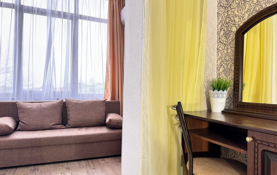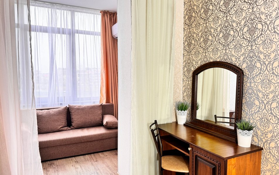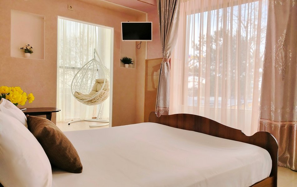 Отель сам по себе не плохой , плюсов много , в прочем как и минусов . Погнали : до ближнего пляжа мин 10-15 идти , но к сожалению море там на наш период проживания цвело , и купаться там было просто невозможно . До собственного пляжа идти очень далеко мин 35-45 , поэтому искали чистое море по побережью , и там останавливались . Атракционы но не большие и не так много , все рядом ,покруче находятся дальше км 2 , там и музыка живая и развлечение для детей и взрослых . Кафешек рядом с отелем конечно не очень много , но есть .Расположение отеля норм . Если говорить о самом отеле в целом , то много минусов : Администратор на ресепшене , не очень приятная женщина , которая не располагает к общению совершенно. Приехав с долгой дороги , она нас уставшими в доску, не заселила , а отправила сниматт деньги чтобы расплатиться наличкой , т.к. безнал у них не работал ( хотя на сайте все было хорошо ) .Складывается впечатление что мы ей должны и обязаны , такое чувство что ей уже на столько надоели гости этого отеля. Вообщим вообще не заинтересована в сервисе и создания удобства гостям. Вообщем с первых минут , уже остался неприятный осадок . Номера на двоечку . Окна не закрываются толком и не открываются , все шатаются то и гляди вылетят . двери так же они просвечиваются с низу , картон . Боишься их вообще трогать . Бумагу туалетную выдают по рулону в день (хотя нас семья 4 человека ) и то пока не попросишь , шампуни и гели для душа вообще пару штуккак было при заселении больше не приносили . душевая вообще не удобная. Совет :сделайте там хоть полочки куда можно положить средства для душа , а то вообще неудобно .Мало того что кабинки маленькие , так еще что то необходимое для мытья туда положить не возможно, даже любые средства для душа и гигиены да вообще ничего...и еще кабинки сильно протекают , и после душа все полы мокрые , их даже протереть нечем , потом вся эта сырость разносится по комнатам , а т.к уборщица убирает раз в 3 дня я так поняла , то это получается грязища. Кровати скрипучие до невозможности это именно в нашем номере 311,просто не возможно даже шетлохнуться . Питание однообразное (все одно и тоже ), холодное всегда , даже в самом начале , когда ток выставляют лотки . Парковка 400 рублей сутки , но парковкой это сложно назвать . Ребята работают в баре молодцы , Сереже отдельное спасибо , аниматор тоже молодец . Бассейн тоже хороший , лежаков много и бесплатно это тоже большой плюс .в целом отдохнули хорошо , в отеле не были , гуляли везде .