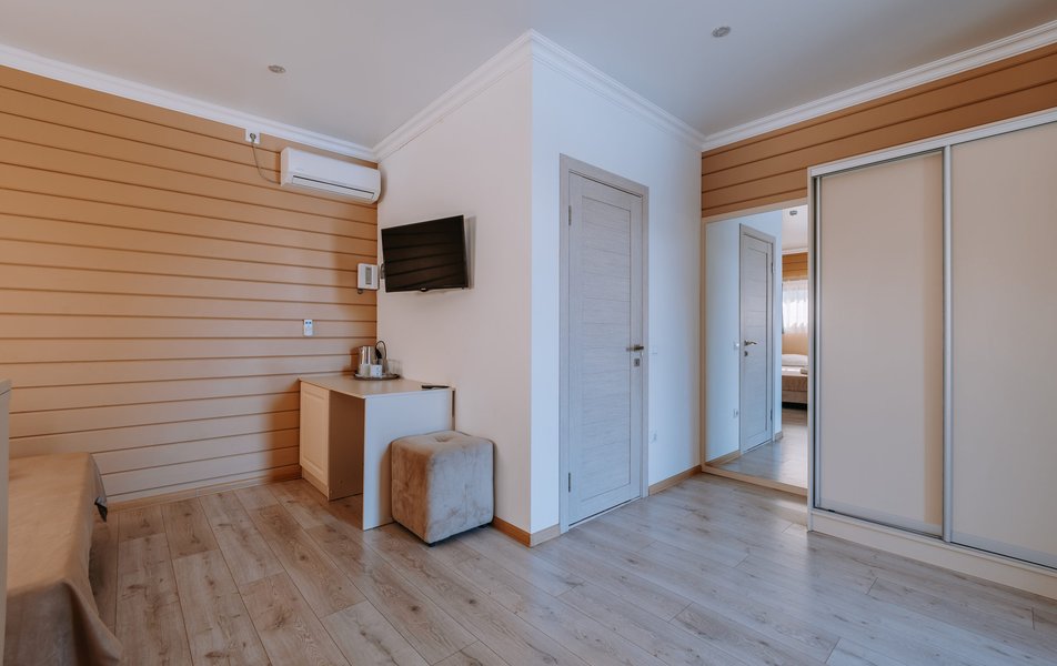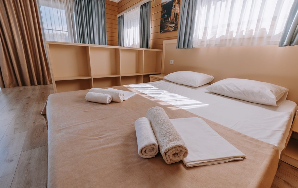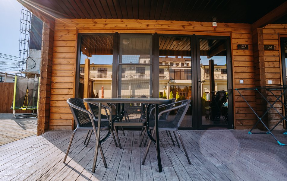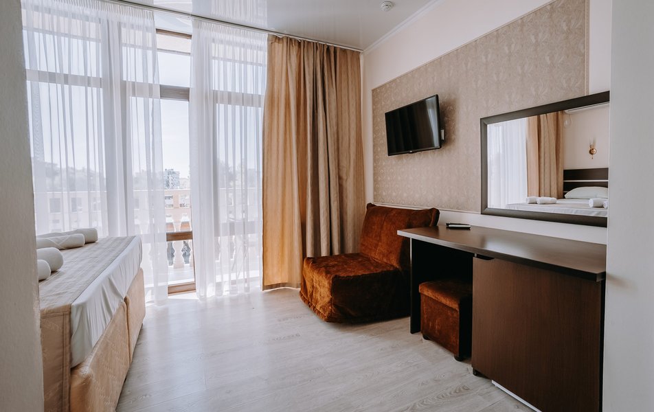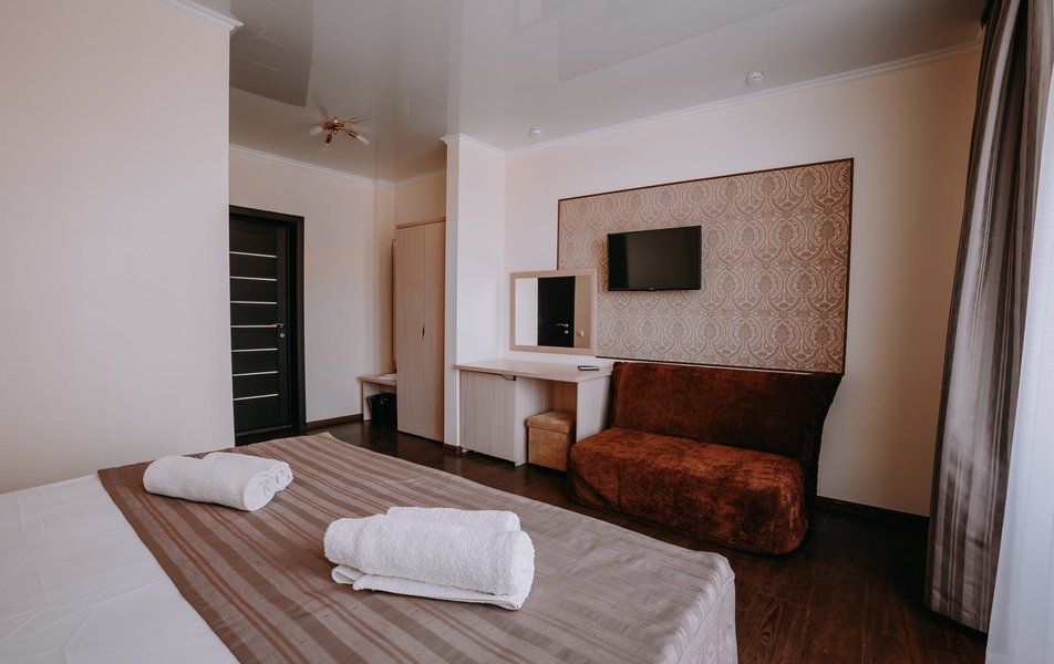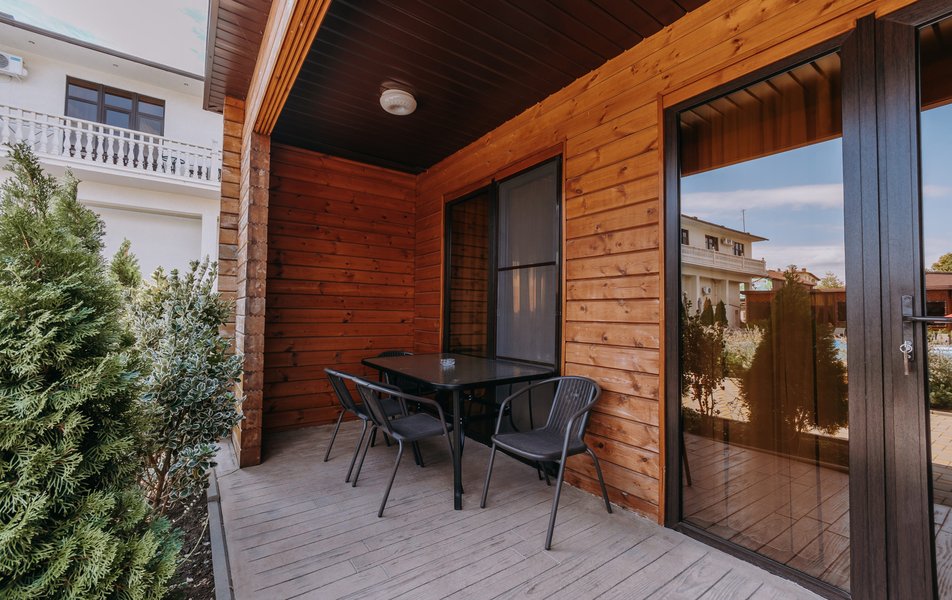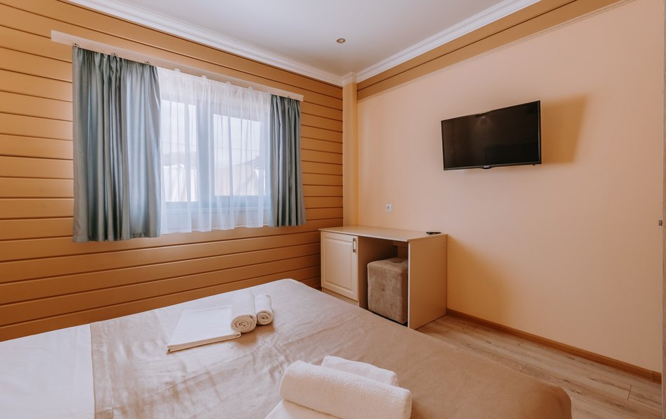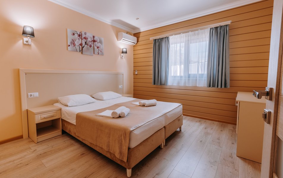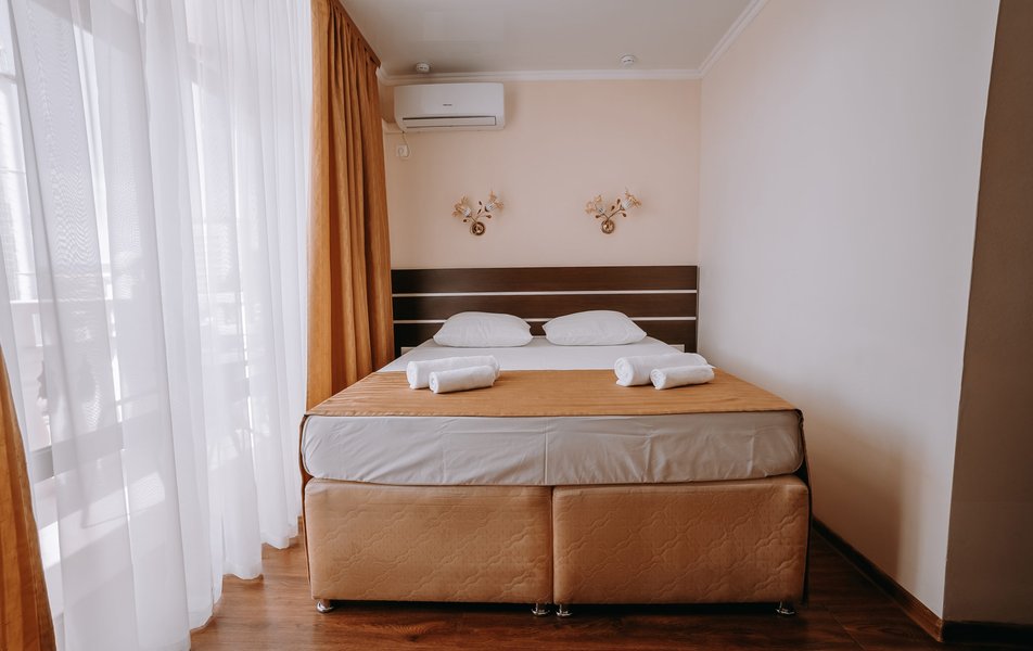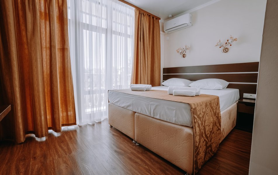 Мы так довольны этим отелем! Отдыхали в середине сентября 2022года в коттедже Люкс)) Ежедневная уборка, нам часто меняли белье(раз в 3 дня если я не ошибаюсь),и на территории отеля всегда чистота! Девчонки горничные-умнички! Девочки на ресепшн очень отзывчивые, внимательные, создают такую обстановку, что ты чувствуешь себя здесь нужным гостем! Питание просто на высоте! Мне как раз подходили каши на завтрак) и очень много всего было на завтрак-блины с разными начинками, сырники , сэндвичи, выпечка.....в общем много чего! Бассейн был теплый) просто погода подпортилась, был сильный холодный ветер, и соответвенно уже ни в море не покупаешься да и в бассейн не полезешь, но вода в басике всегда была теплой) Шум в нашем коттедже, честно говорю нас вообще не беспокоил!) Да и мы же понимали, что мы едем в отель находящийся прям в центре!))) До моря совсем недалеко-5 минут по прямой и мы были на пляже) Мы уже забронировали на сезон 2023 в июле) Спасибо всем за наш шикарный отдых!