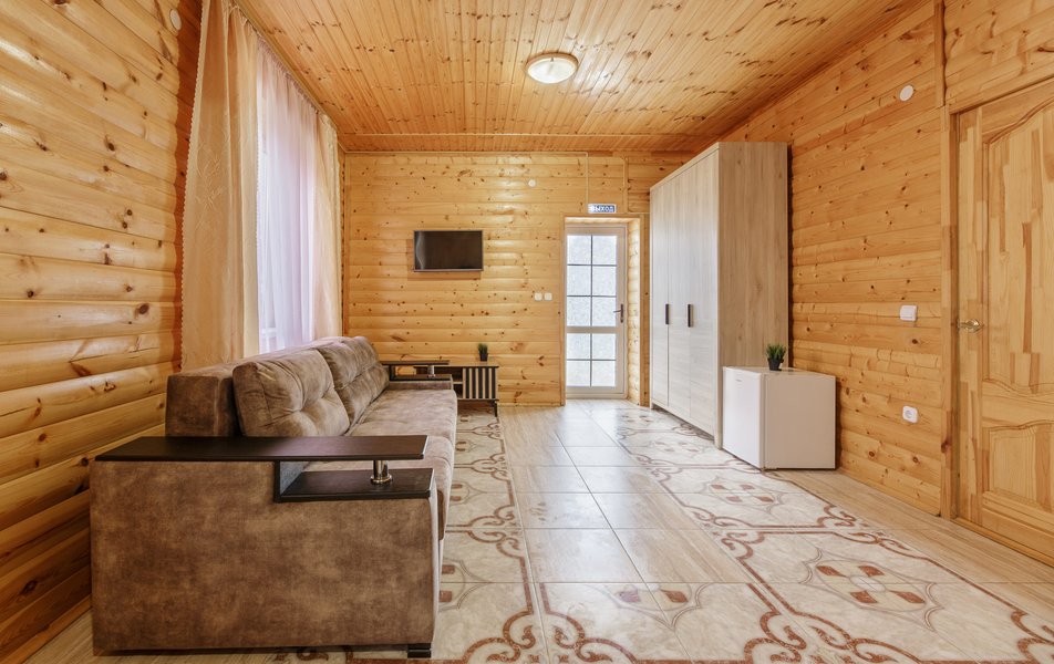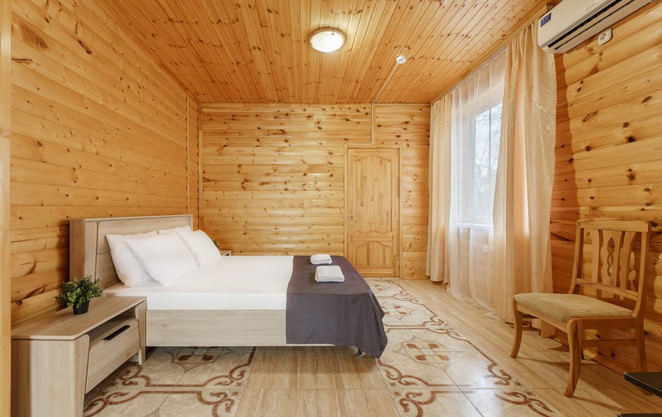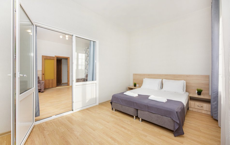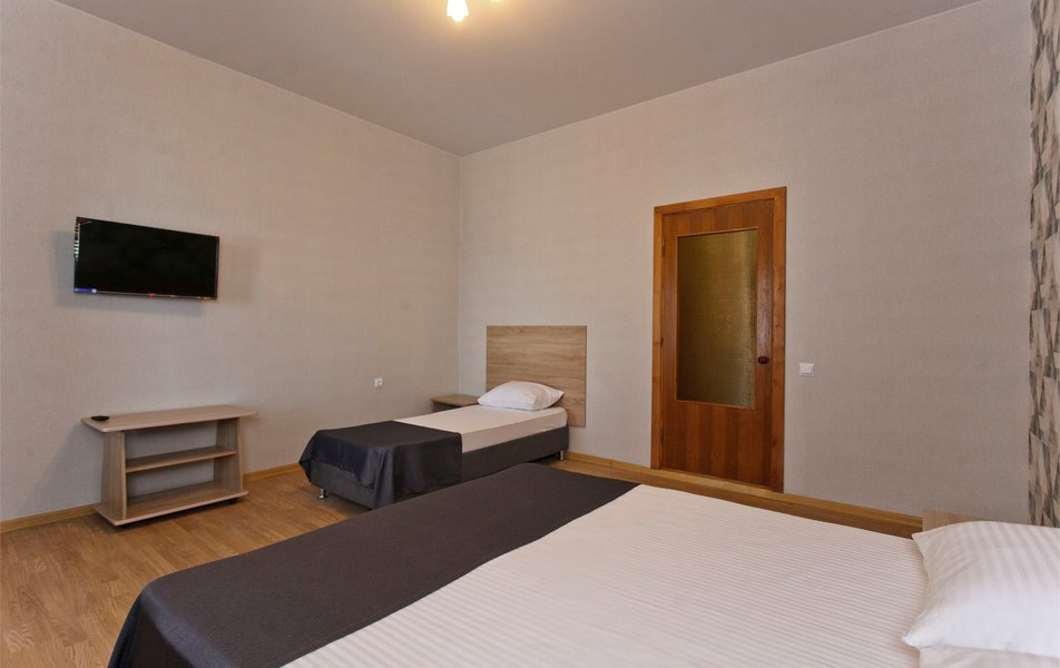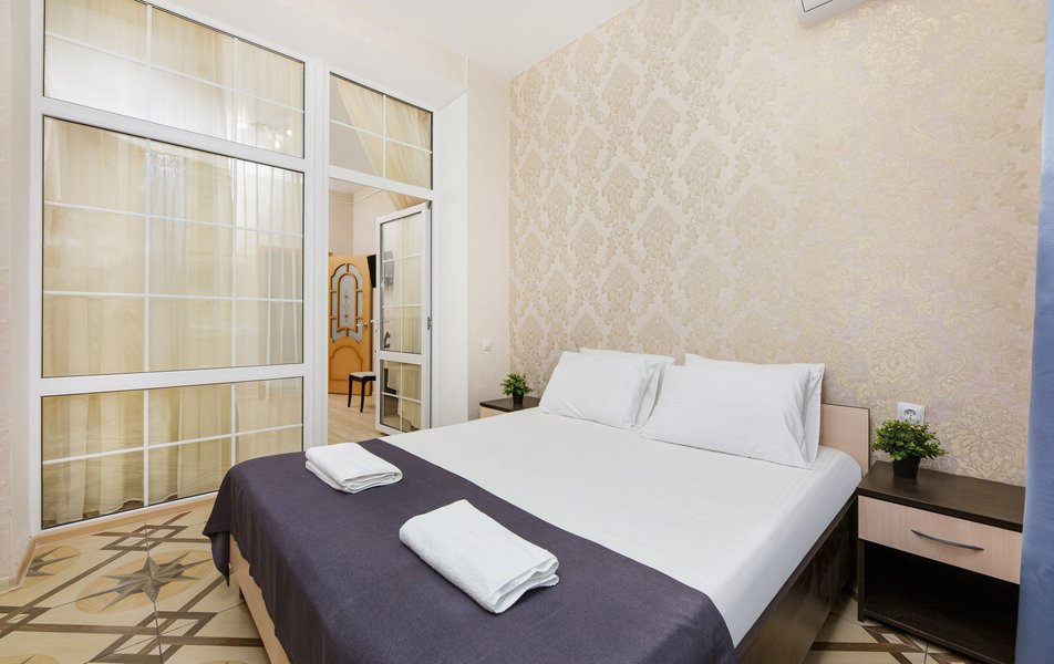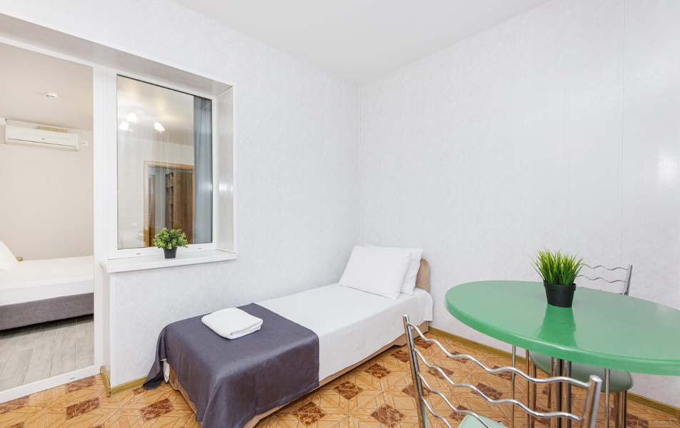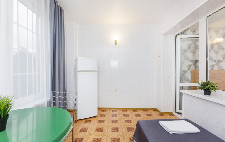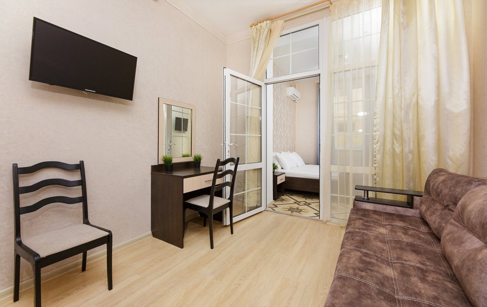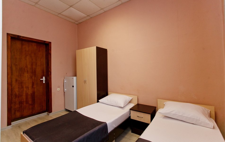 Отель выходит на Пионерский проспект, центральную улицу Джемете. Чтобы оказаться на море нужно перейти дорогу и пройти мимо торговых рядов. Дорога к морю занимает меньше 10 минут, если не задерживаться у торговых рядов. Был прекрасный одноместный номер с двуспальной кроватью, хорошо работающим кондиционером и телевизором. Балкон выходил на стену соседнего здания - это небольшой минус. Отдельно о питании. 3-разовое питание входило в путевку. Столовая находилась в цокольном этаже главного здания. За 9 дней питание было разнообразным, каждый день была новая каша, на столе стояло сгущенное молоко, джемы и другое. Все блюда были вкусные, близки к диетическим. Персонал откликался оперативно на все просьбы.