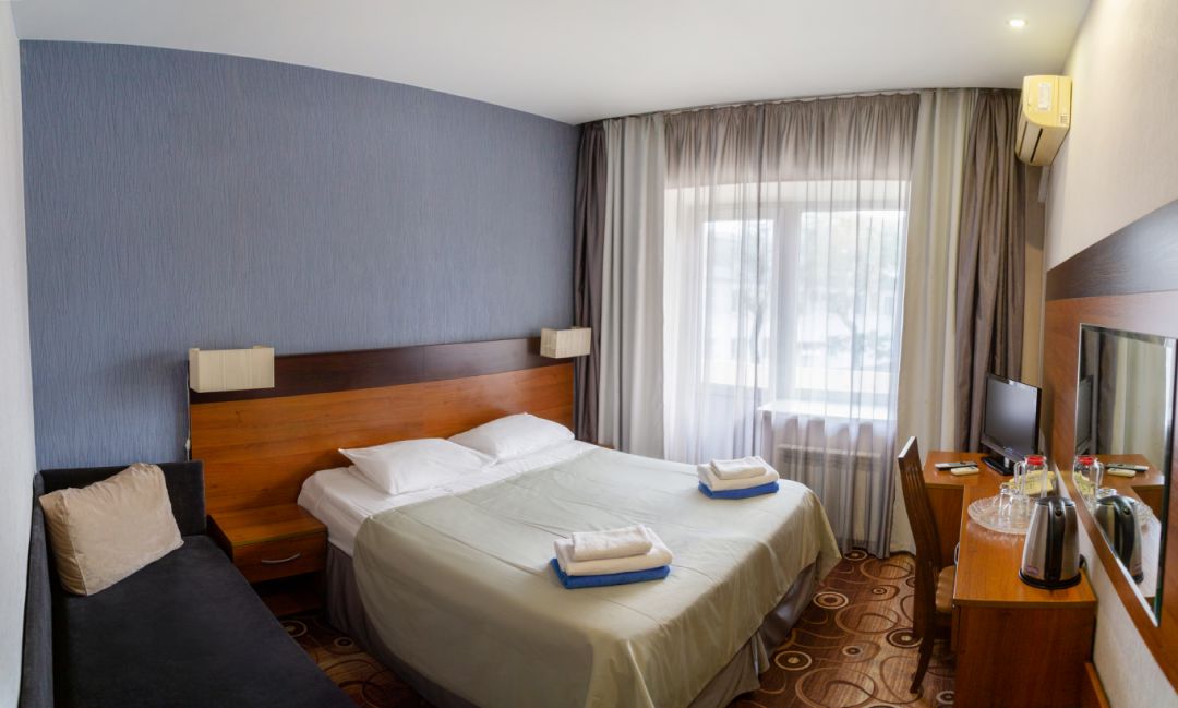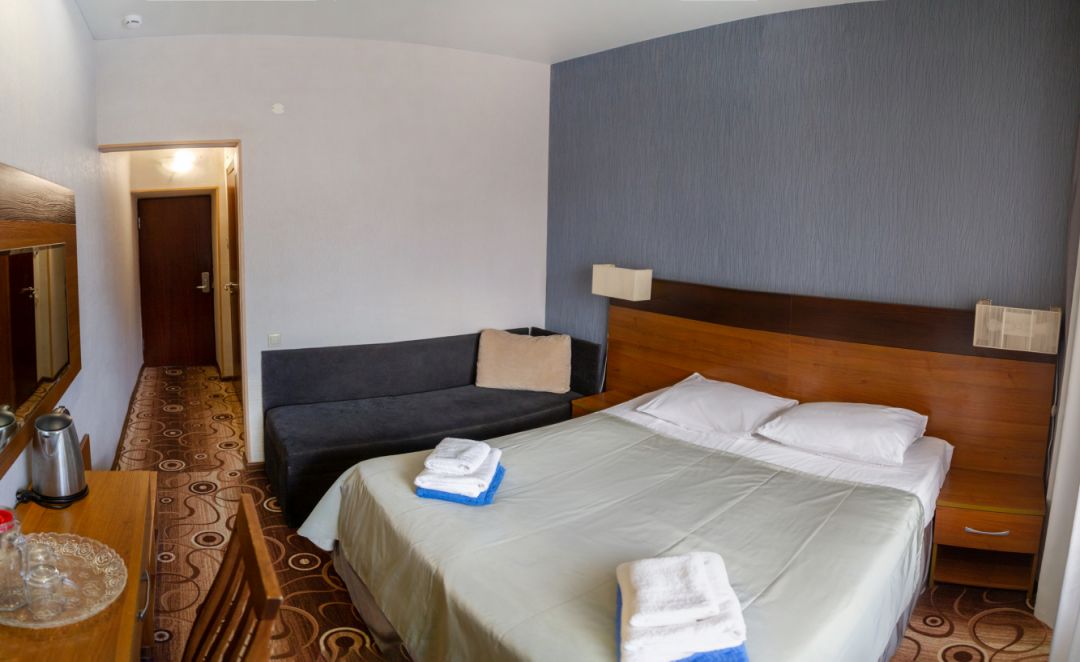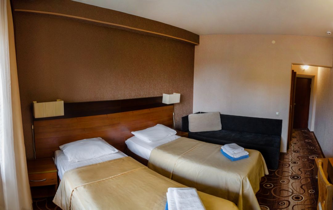 Самый отвратительный санаторий, в котором я была!!! Девушки на ресепшене, хамки еще те! Только что прямо не послали! Обслуживание на нуле! Отель старый, порванные покрывала, кран держится на честном слове, подушки все в комочках, спать не возможно! Не работающий чайник в номере! Отсутствие элементарно бутылки воды и освежителя воздуха в номерах! Туалетная бумага как наждачка. Нас было три человека в номере, но мыльные принадлежности были только на двоих почему то... Про питание вообще молчу! Еда как для свиней, одна капуста, котлеты из непонятного фарша, первое вообще есть невозможно! Господа, берегите свои деньги и отдых, не приезжайте в этот санаторий! Единственный плюс, это расположение, возле моря.