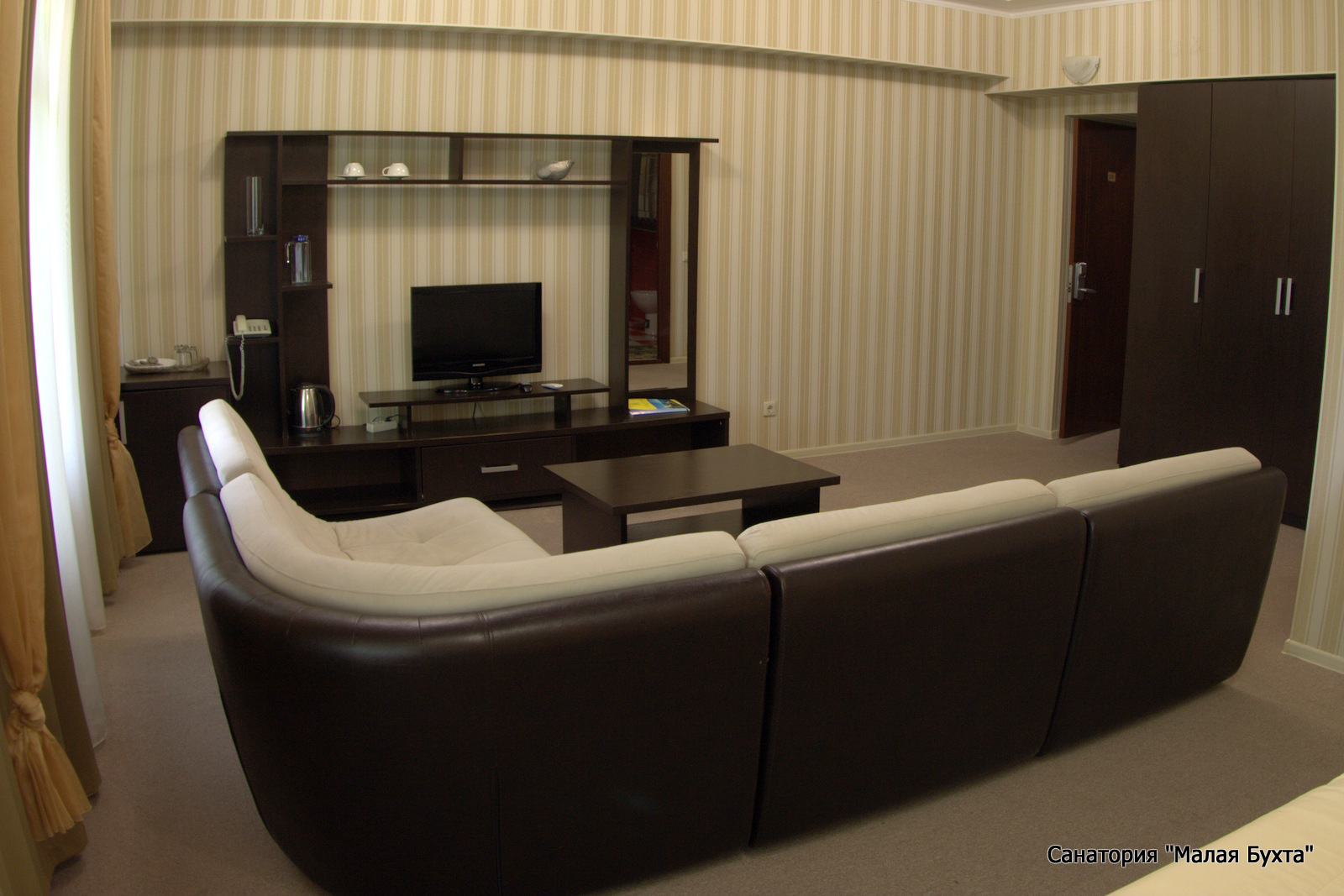 Ужасный санаторий! Всё старое и допотопное, времён СССР. В номере отклеиваются обои, шкаф поцарапанный заваливается набок, штора состоит из 4-х полос по 50 см. примерно, видимо денег не хватило на нормальные шторы. При заезде в ванной комнате грязные раковина и душевой поддон! Горничная на замечания нагрубила и так и не помыла! У подруги в фильтре поддона, а также на раковине чужие волосы! Я взяла с тележки моющие средства и сама себе всё помыла! В последующие дни горничная только без конца пылесосила, и размазывал по полу в ванной хлорку для запаха! Еда в столовой отвратительная, лежаки старые потрескавшиеся, над лежаками нет никакого укрытия! Лечение на троечку! Никому не советую!