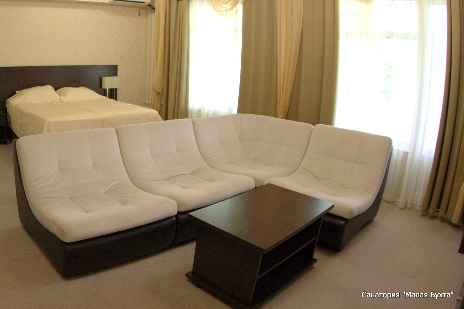 Про санаторно-курортное лечение люди говорят по-разному: кому-то оно в удовольствие, для кого-то просто необходимость.Вот и у меня возникли обстоятельства, когда пришлось поехать в санаторий. Была проделана большая работа перед выбором необходимого санатория. Санаториев было изучено немало, просмотрены официальные сайты каждого из них, а порой приходилось звонить и в службу бронирования, т.к. не всегда на сайтах имеется исчерпывающая информация о стоимости. И вот несколько оптимальных вариантов было найдено, и каждый мы начали изучать более детально. В Анапе я отдыхала неоднократно, климат там благоприятный для меня и моей семьи, поэтому ей и было отдано предпочтение, хотя ранее мне ни разу не приходилось там бывать в конце марта, а это не совсем курортный сезон. Первая «загвоздка» возникла из-за того, что прямой поезд от нас в Анапу в межсезонный период ходит только один, и то не каждый день (и даже не через день). И так неудачно совпало, что и прямой поезд, и другие поезда во всех вариантах с пересадками прибывали в Анапу ранним утром, а отправлялись уже ближе к вечеру, а в санатории «Малая бухта» согласно указанной на их официальном сайте информации заезд в 12.00, а выезд в 10.00. Конечно, это было большим неудобством, но, имея за плечами большой опыт отдыха и путешествий, я знаю, что во многих отелях можно за дополнительную плату оформить и ранний заезд, и поздний выезд при наличии свободных номеров. Я решила выяснить, если такая услуга в «Малой бухте», позвонив по указанному на их официальном сайте номеру. Конечно, я не знаю фамилию и должность того, с кем разговаривала по этому вопросу, помню только, что ответивший мне мужской голос после того, как я задала ему интересующий меня вопрос, меня куда-то переключил, и уже после этого приятный женский голос мне ответил, что такая услуга есть, что доплата за ранний заезд и поздний выезд у них почасовая и назвала расценки, что, конечно, это только при наличии свободных номеров, но свободные номера в этот период есть всегда – короче, убедила нас, что с этим проблем не будет. Если бы ответ был отрицательным, то мы бы стали «прорабатывать» вариант с каким-либо из других выбранных нами санаториев, но коль нет проблем, значит, едем в «Малую бухту»! Ну и для справок отмечу, что ещё я на официальном сайте санатория «Малая бухта» заказывала трансфер от вокзала до санатория. Как только я заполнила заявку на сайте, мне сразу перезвонили, всё уточнили и сказали, что по прибытии у вагона поезда нас будет ожидать водитель с табличкой «Малая бухта». С трансфером и правда всё прошло гладко: водитель даже позвонил, когда мы ещё только готовились на выход из вагона, сказал, как его «опознать» среди многочисленных встречающих, помог нам с чемоданами и быстро с комфортом довёз до санатория. А чуть попозже после прибытия был звонок от службы трансфера: поинтересовались, хорошо ли нас встретили и довезли. Трансфер стоит 1000 рублей. Позволю себе забежать немного вперёд, чтобы уже не возвращаться к теме трансфера: в процессе отдыха от местных я узнала, что такси в Анапе до вокзала стоит около 300 рублей, и, возвращаясь обратно, мы уже просто вызвали такси через «Яндекс». Довезли всего за 270 рублей. Так что касаемо трансфера решайте сами. Ну а сразу по прибытии в санаторий начались наши самые «приятные» впечатления. Мы подошли на 