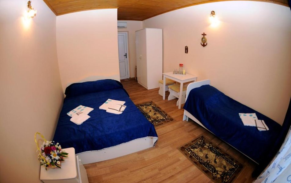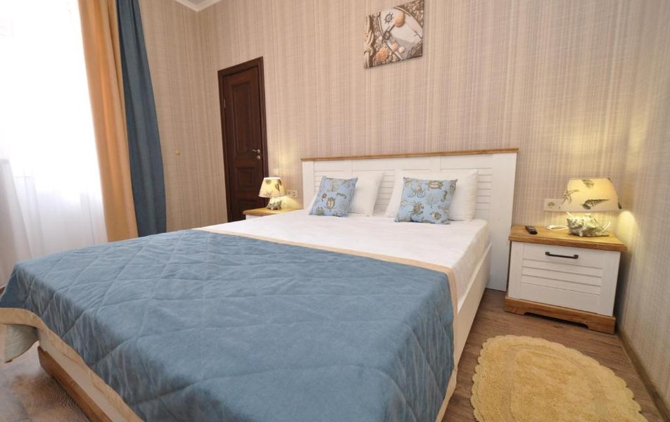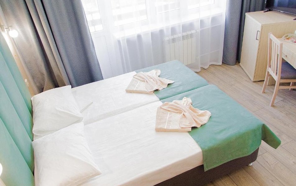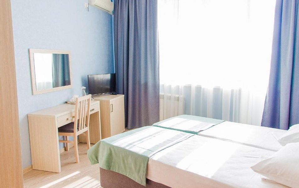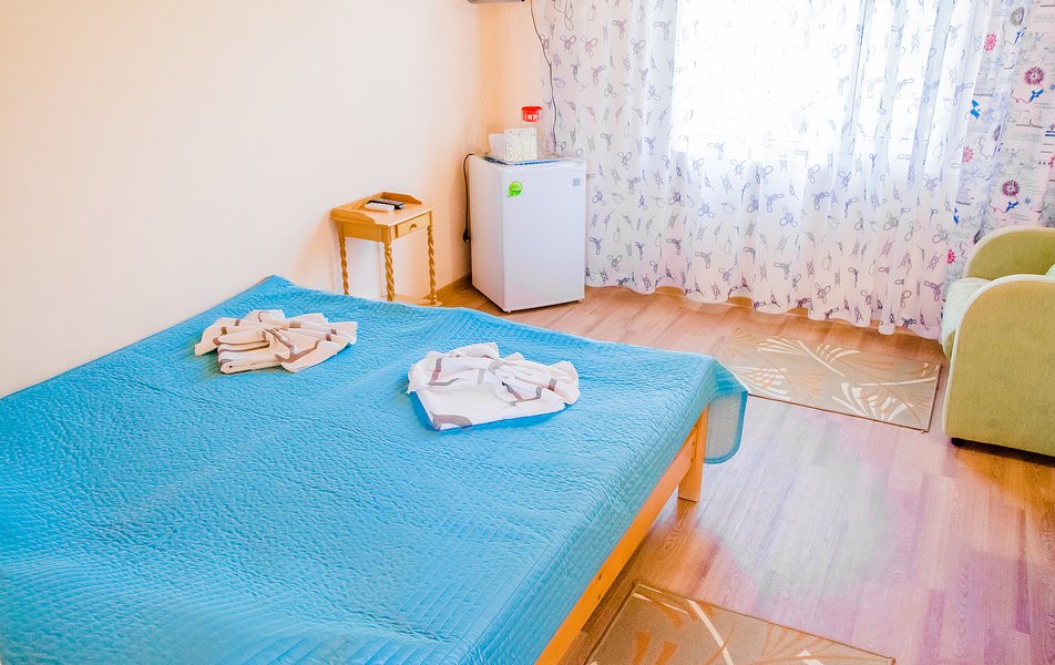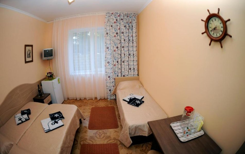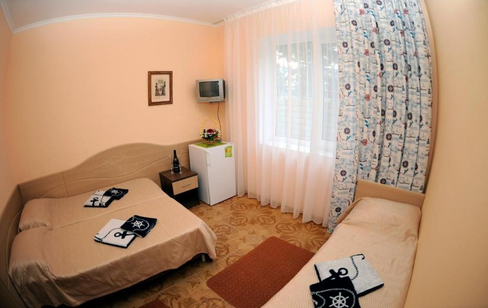 Одыхали с коллегой с 7 по 11 сентября. При въезде пришлось пробираться в Морские рифы через другой отель (они находятся на одной территории), потому что звонка у двери не было, а пользоваться мобильным в роуминге не хотелось. (висит табличка с номером телефона отеля у входа). Территория отеля действительно вся в зелени, есть беседки, столики, мини бар, из которого вечером доносится музыка и где можно посидеть,отдохнуть. Нас поселили в основном корпусе, на 2-м этаже. Сам корпус видно, что старый, кресла, диванчики и прочее-изношено, чувствуется тот самый запах старины) Но сами номера в хорошем состоянии, в них сделан милый косметический ремонт, есть кондиционер, хоть и маленький, но плоский телевизор с достаточным количеством каналов, так что перед сном есть что посмотреть! Wi-fi работает только в холле на 1-м этаже и еле еле на втором, в номере не работает. Заказывали завтраки,обеды и ужины здесь же за отдельную плату, еда домашняя, комплексные обеды: первое,второе, салат и компот. Мне все нравилось, где еще поешь обычную столовско-больничную еду) Единственное,что первые дни не было кофе, а без него утром тяжко. Заправляет этим пансионатом некая блондинистая дама, которая лицемерно улыбается тебе, всячески пытается сделать все, чтобы ты поверил, что она поможет, исправит и тд. Потом она отварачивается, уходит и забывает про тебя напрочь! Это чудо- хозяйка пансионата, который достался ей от родителей. По ее вине про нас трижды забывали, на нас не сделали обед в день приезда, забыли про нас и на следующий день (не подала она списки оплаченных обедов на кухню), и в день отъезда-пришлось рано завтракать, она тоже про нас забыла и кухне пришлось на скорую руку сооружать нам хоть какую-то еду! За что огромное спасибо девочкам кухни! Ваша хозяйка, она же администратор, она же бухгалтер-отвратительно себя ведет! Нужно уметь передавать информацию по смене, иначе сервис работать не будет! Забыла про еду, про трансфер на вокзал, про нож, который мы просили в дорогу...Зато, когда накосячила в первый день, так к нам подлизывалась, чтобы мы о плохом забыли, что даже туалетную бумагу нам поменяли с обычной "серой" на двухслойную) Мы долго смеялись! А за то, что про наш оплаченный обед забыли в день приезда, моей подруге (у нее был д.р. в этот день) в номер принесли шампанское, дыню и шоколад) Вывод-умеете, когда на вас наорут! Спасибо всему персоналу, кроме самой хозяйки за Вашу работу! Убирали каждый день, меняли полотенца тоже. Сам номер очень маленький, Елена летучая нашла бы кучу косяков по нормам и их не соблюдению, но в целом уютно и жить вполне можно) Маленький санузел, не развернешься, вода из душа стекает на пол, из-за этого вечная сырость в ванной комнате. Есть выход на балкончик, там стоит стол и 2 стула. Курить нельзя, но если соседи не жалуются (балкон длинный общий), то курите на здоровье!) Единственный минус данного балкона-не убирают паутину, а потому вечером мы сначала с диким страхом, а потом с привычкой и смехом бегали от местных огромных свисающих над столиком и дверью пауков. До пляжа реально идти 5 минут через песочные барханы. За нашим отелем строится что-то новое, из-за этого недостроя многие жалуются в отзывах на отсутствие приятного вида из номеров. Выход к морю не самый лучший, идти приходится вдоль забора, по узкой тропинке,а потом за отелем, где лежат стройма